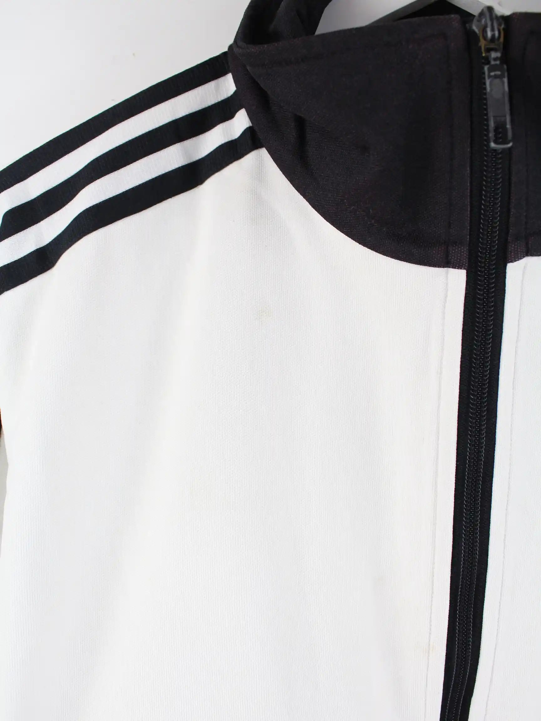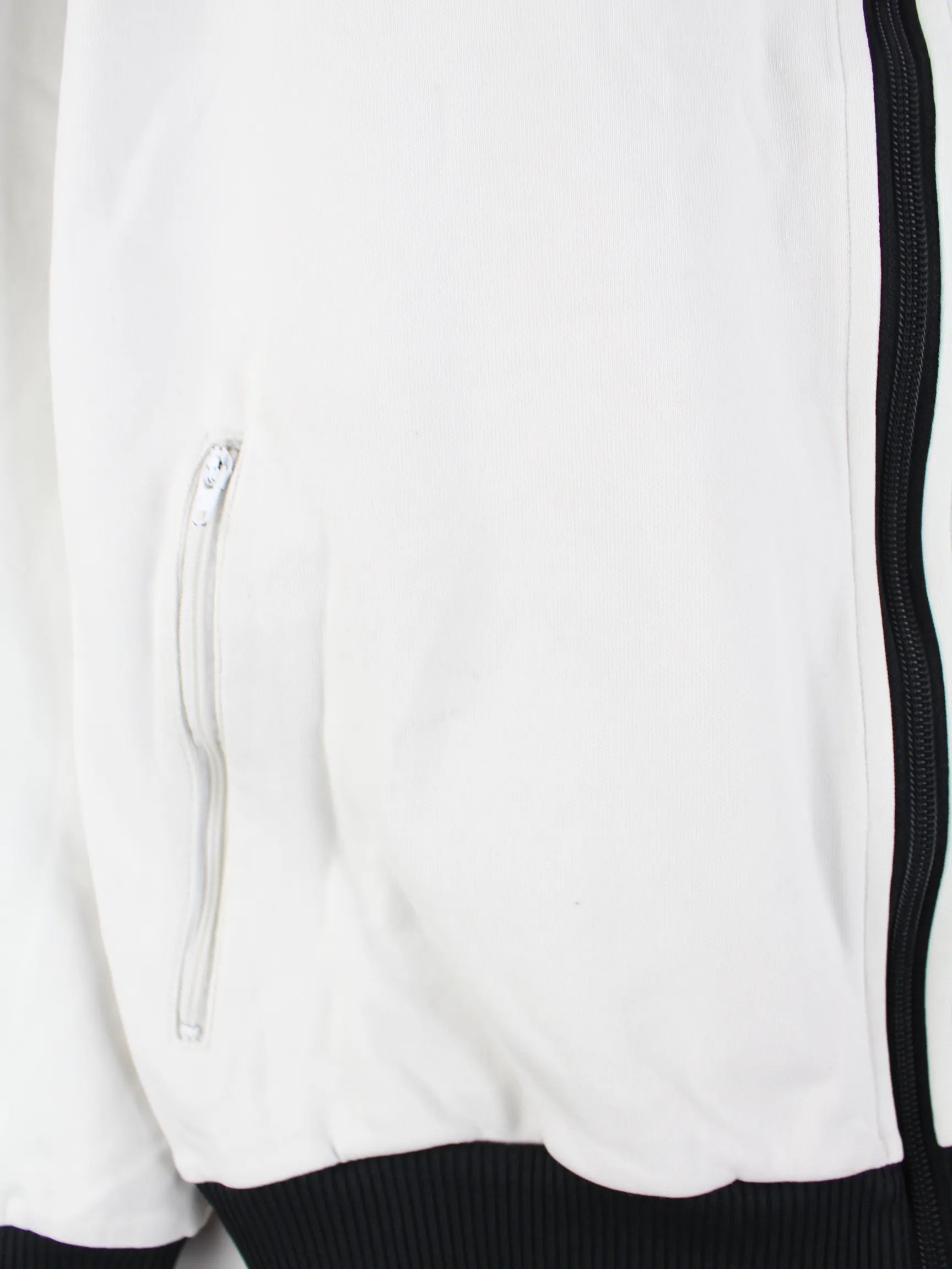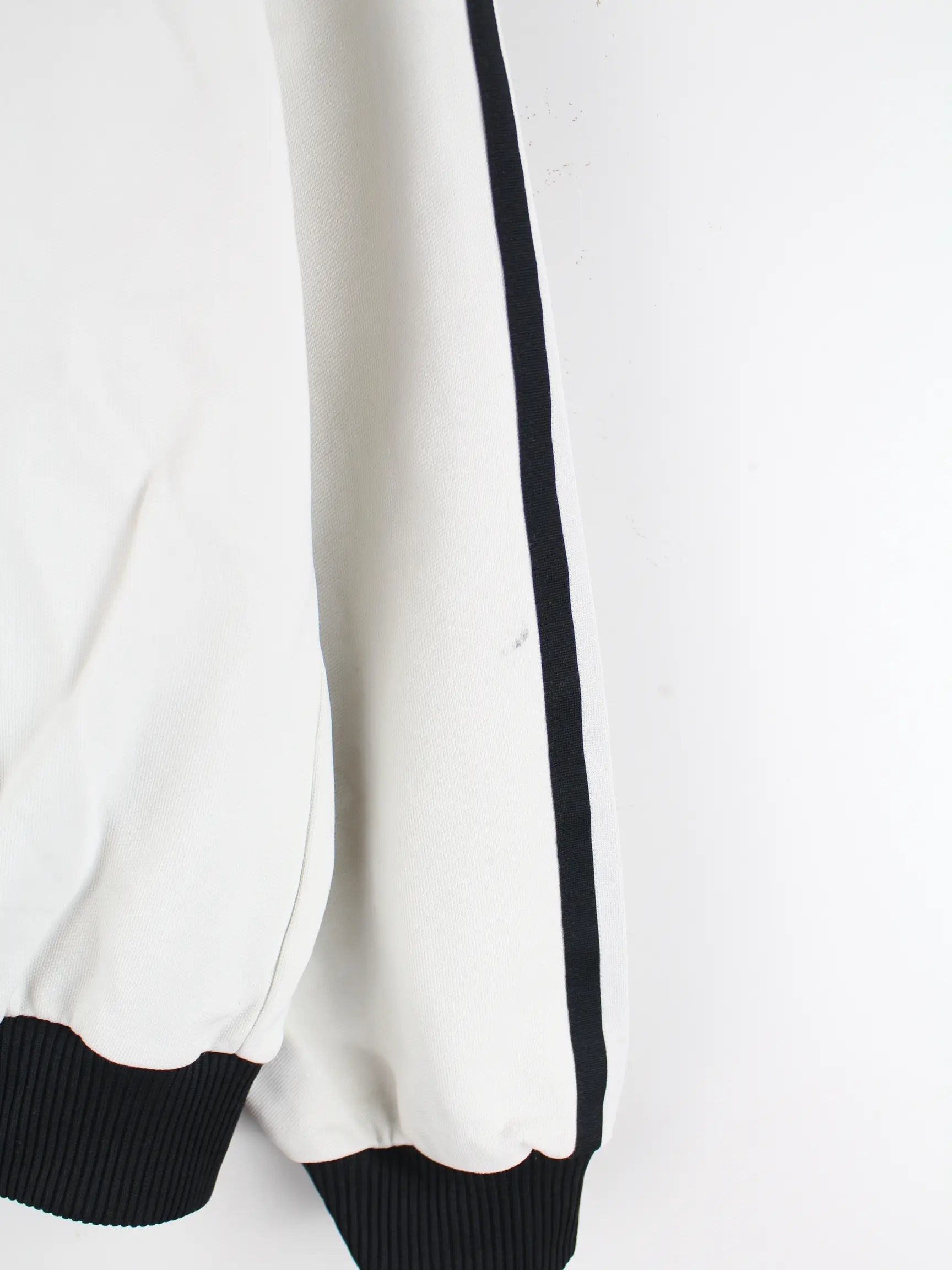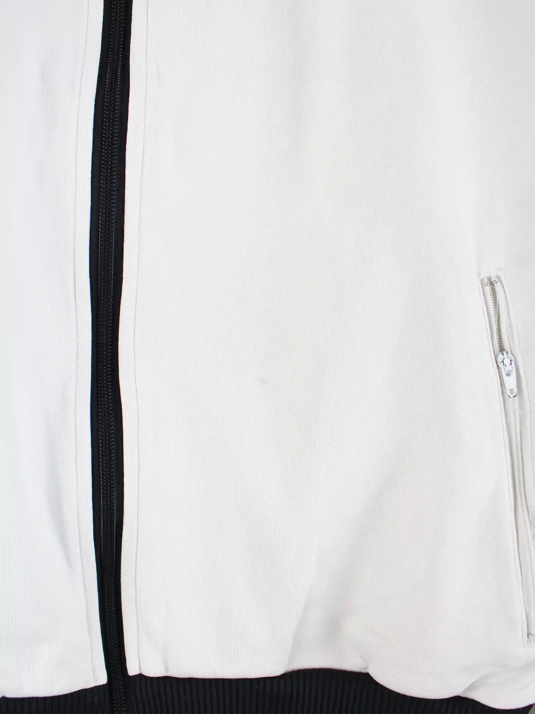 Trainingsjacke vom Label Adidas in Größe L. Sie ist aus Synthetik produziert und in Weiß zu haben.