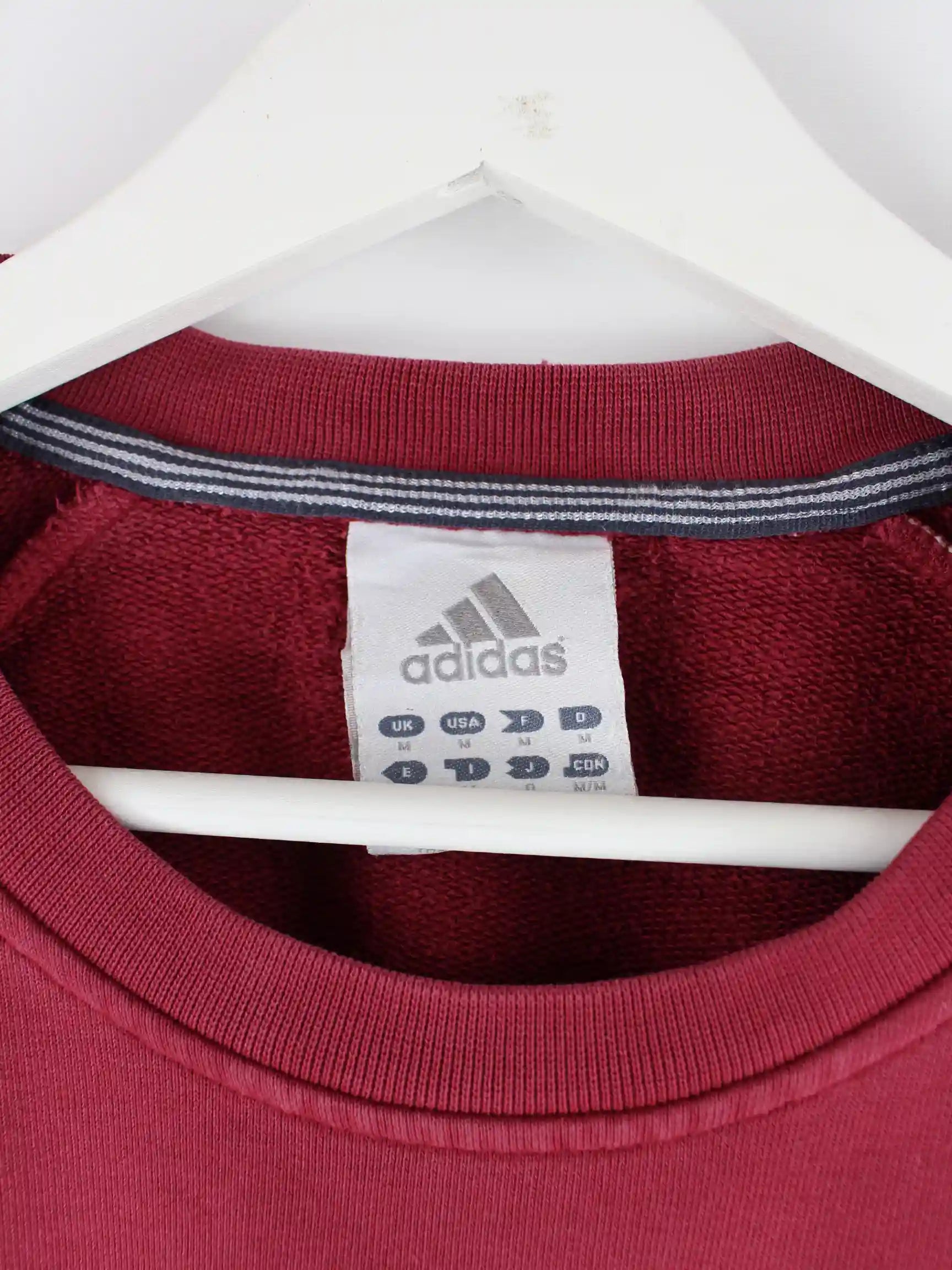 Roter Sweater der Marke Adidas in Größe M. Er ist aus einer Baumwollmischung angefertigt und in gutem Zustand vorrätig.