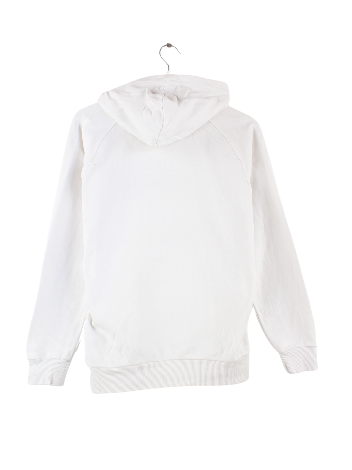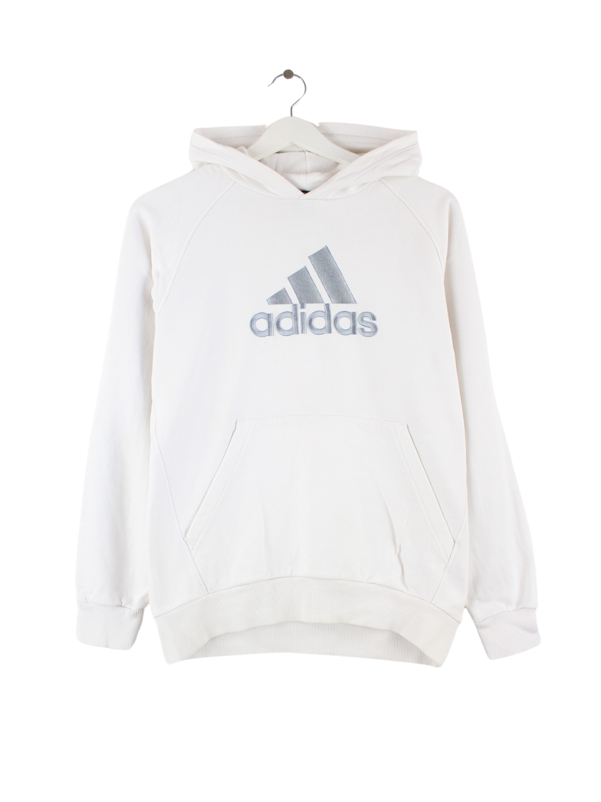 Hoodie from the label Adidas with embroidery in size L. It is made from a cotton blend and is available in white.