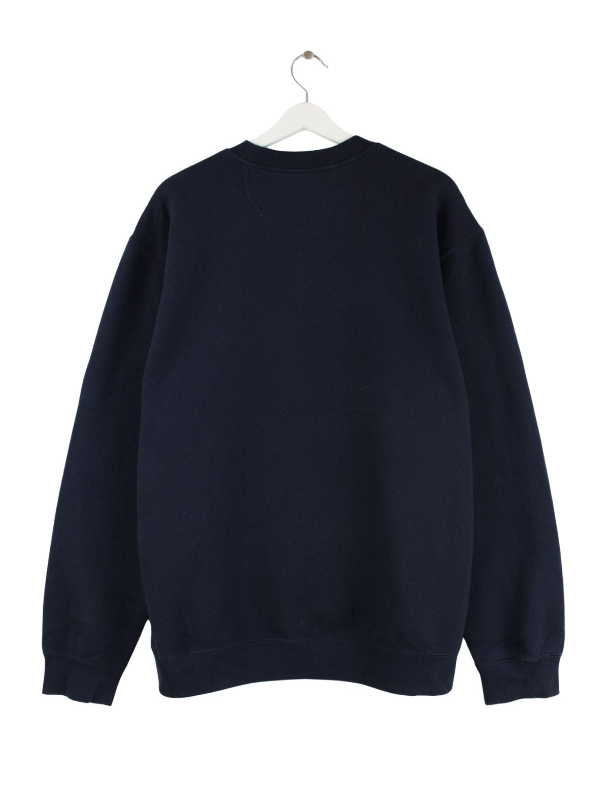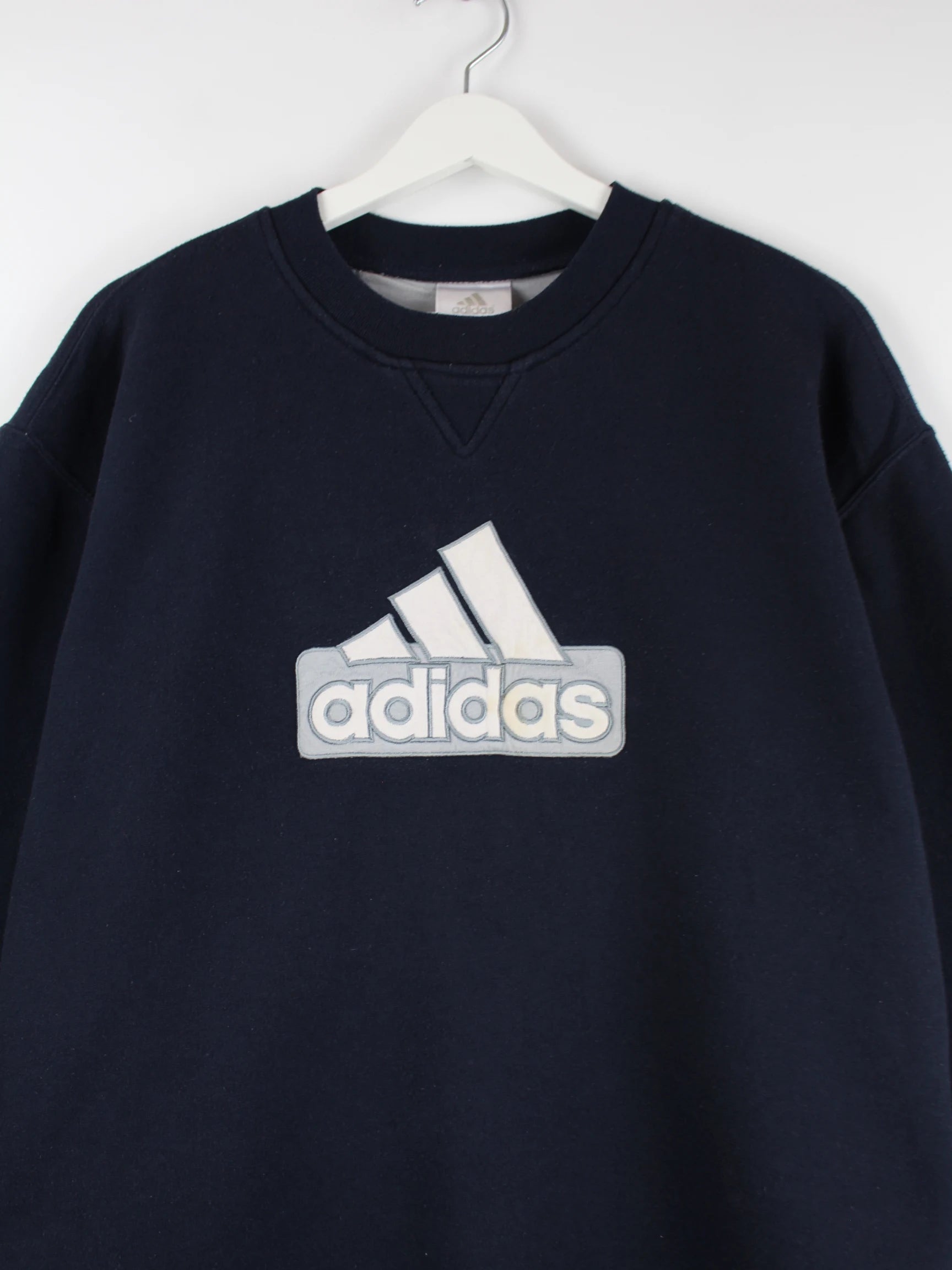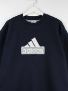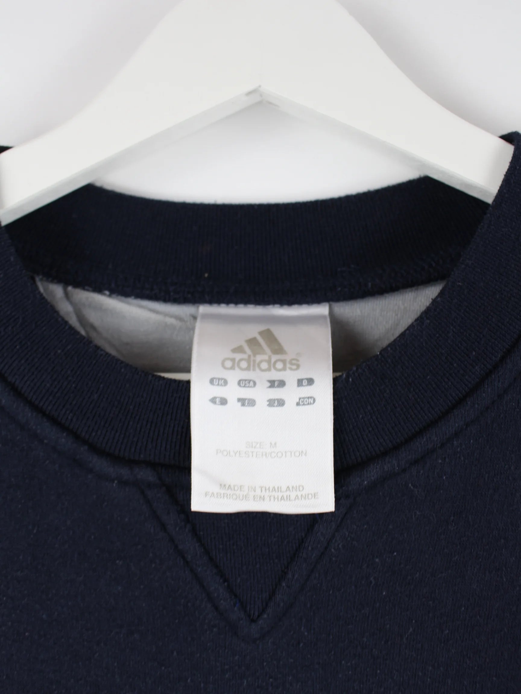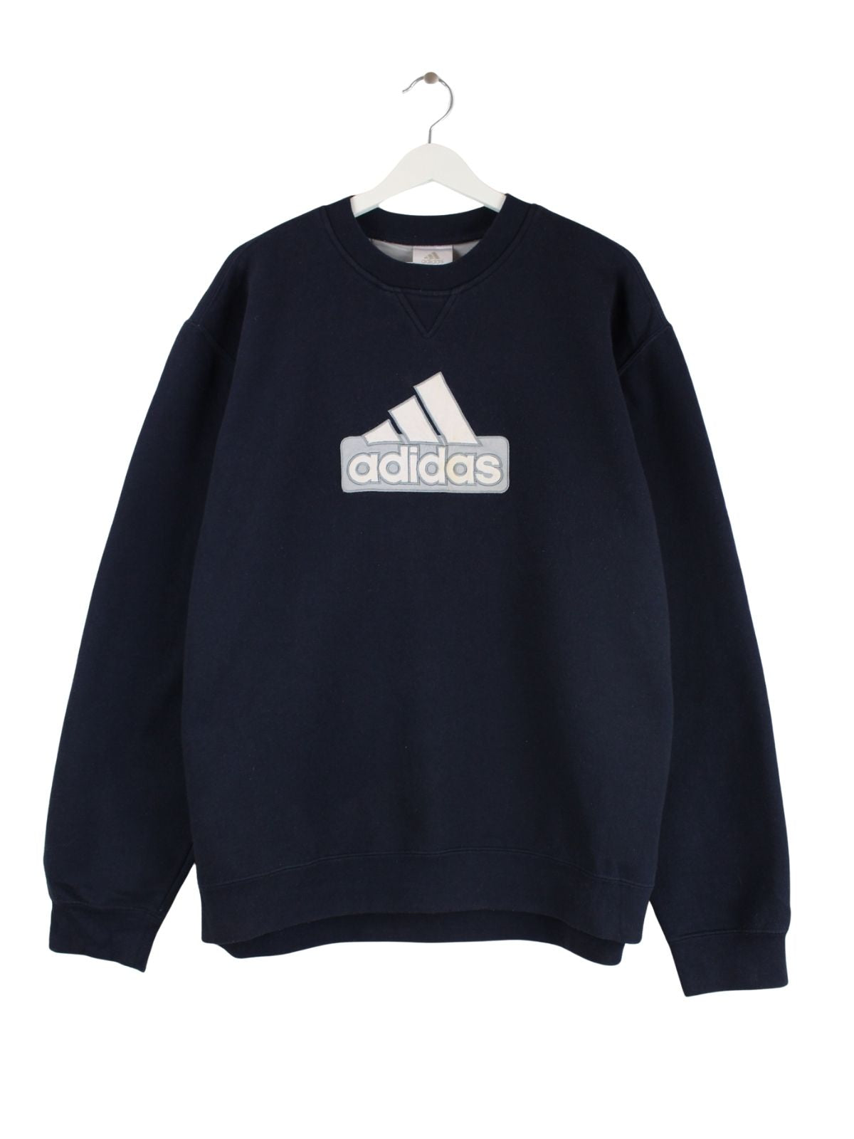 Blauer Sweater der Marke Adidas in Größe L. Er ist aus einer Baumwollmischung hergestellt. Den Zustand würden wir als 'In Ordnung' bezeichnen (vergl. Bilder).