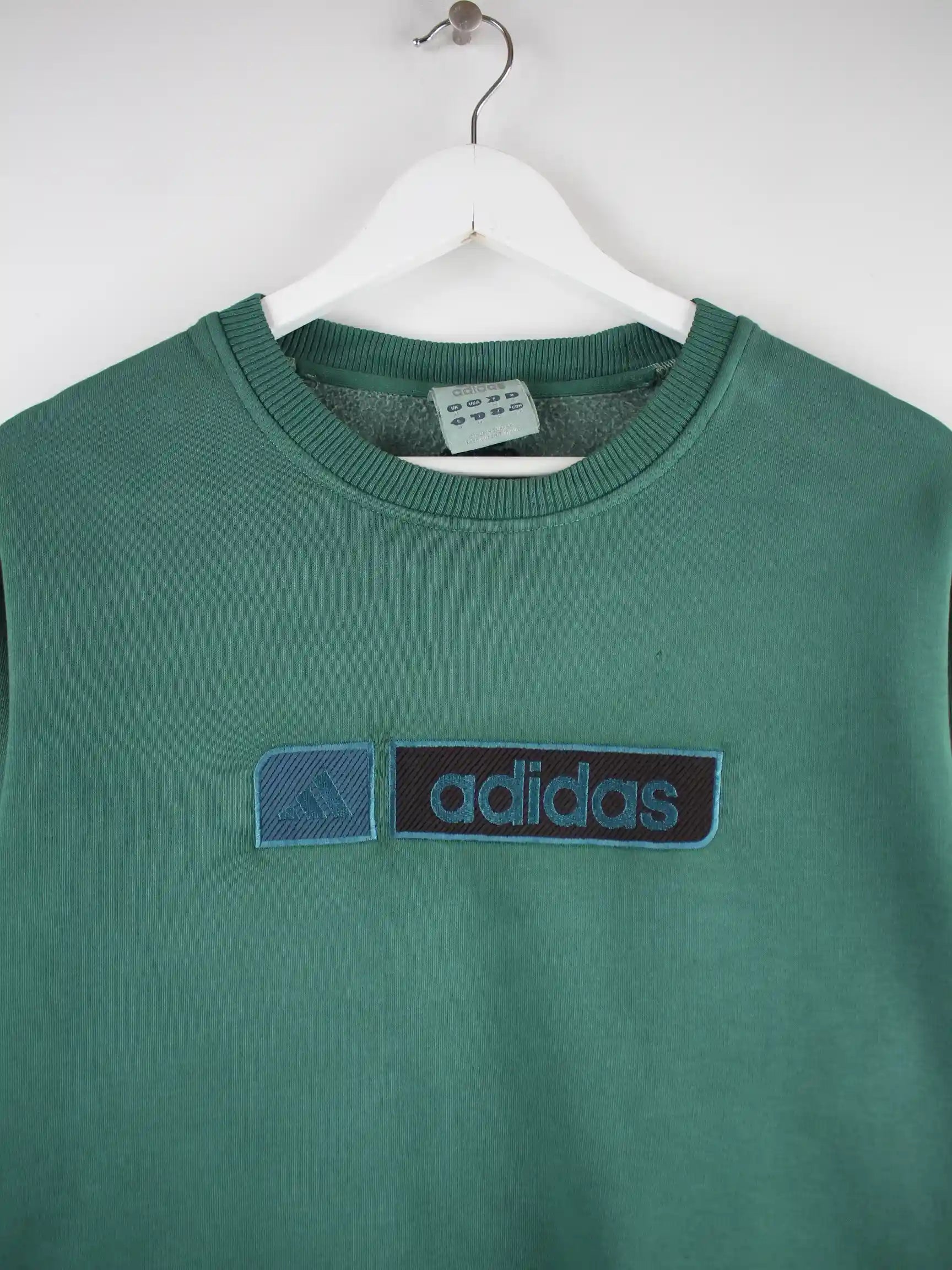 Grüner Sweater von Adidas in Größe M. Er ist aus einer Baumwollmischung produziert und in gutem Zustand zu bekommen.