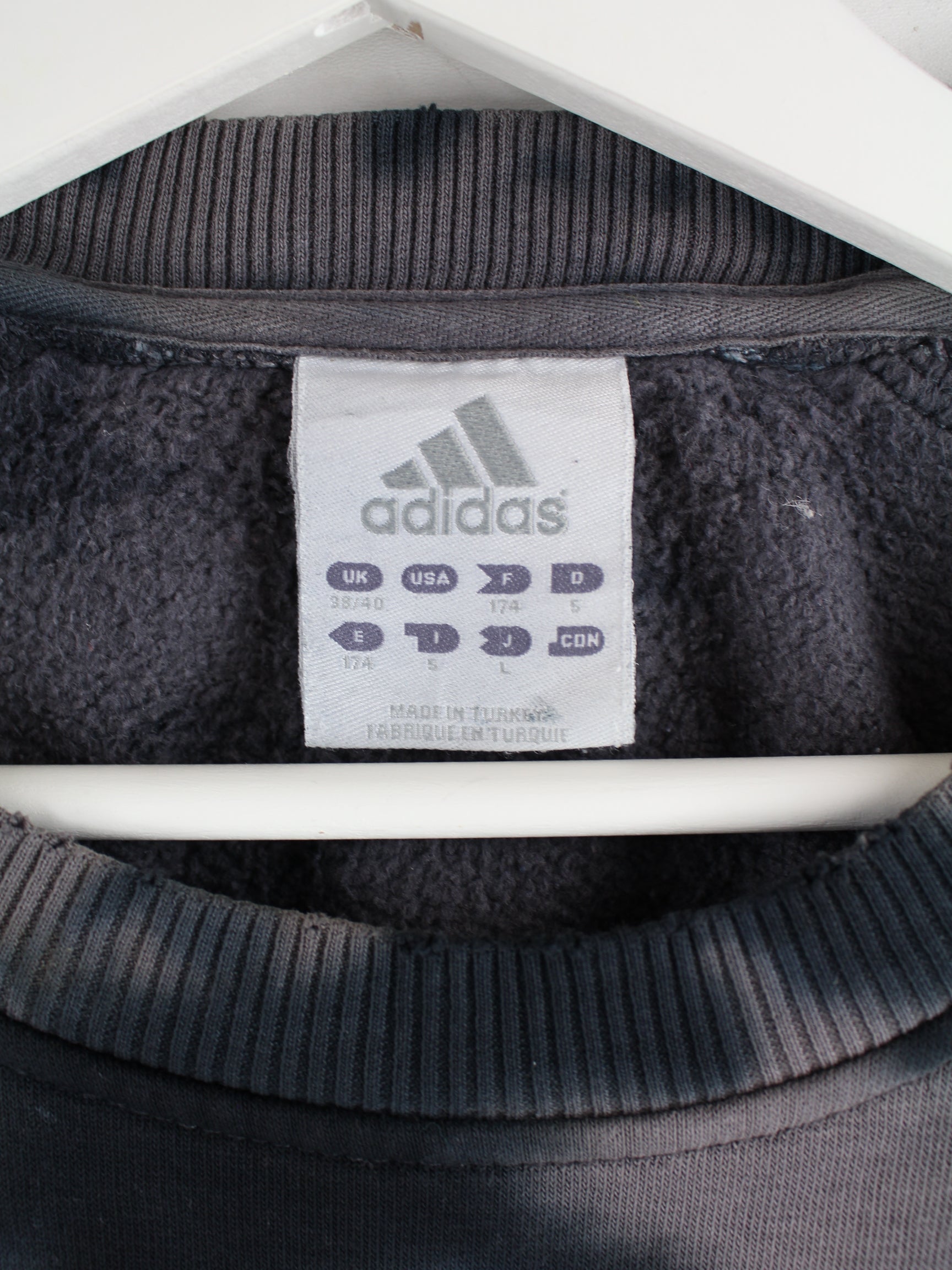 Sweater der Marke Adidas mit Stick in Größe M. Er ist aus einer Baumwollmischung gemacht und in Grau im Angebot.