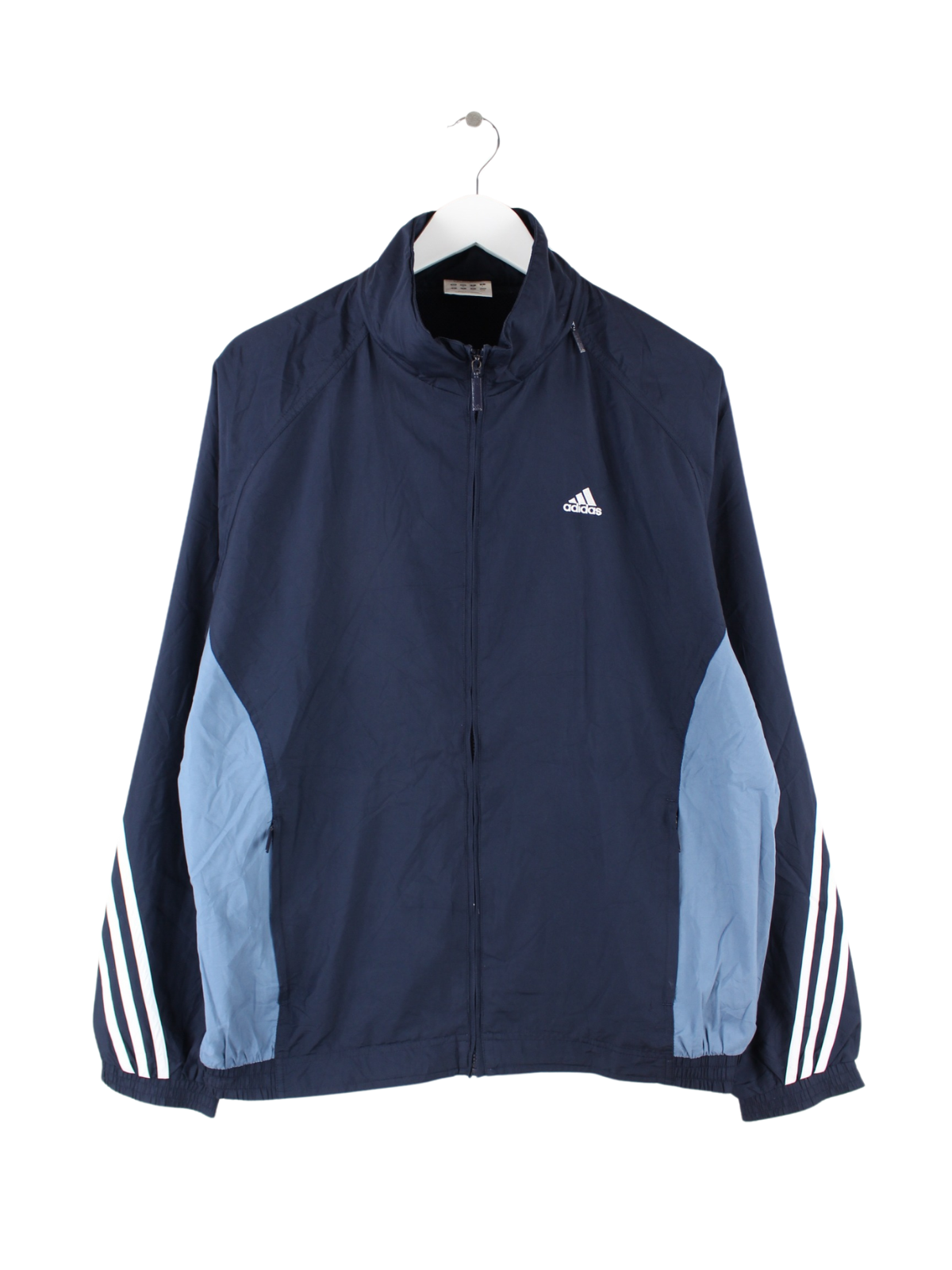 Trainingsjacke des Labels Adidas mit Stick in Größe XL. Sie ist aus Synthetik gemacht und in Blau im Bestand.