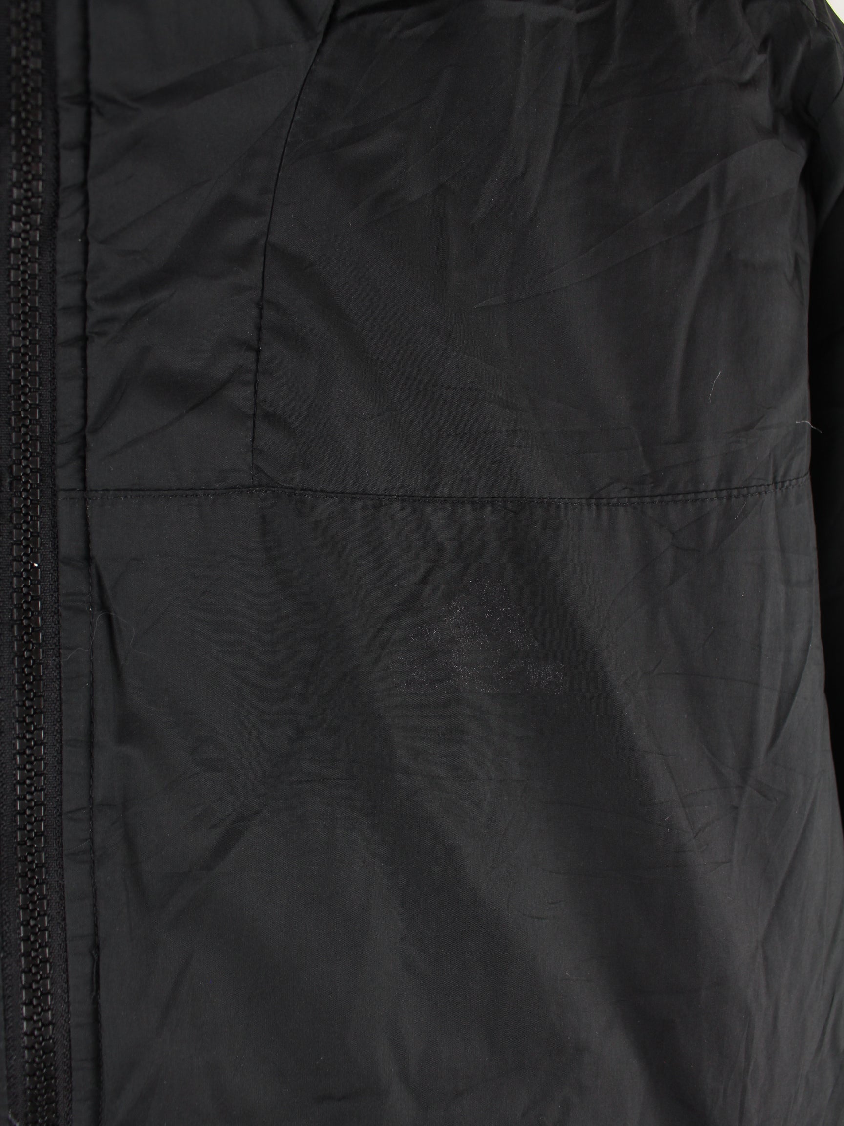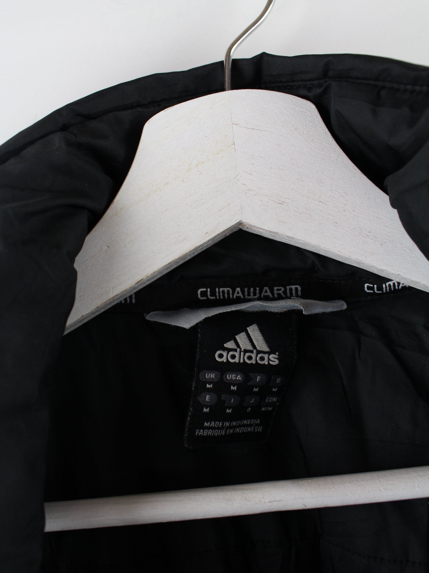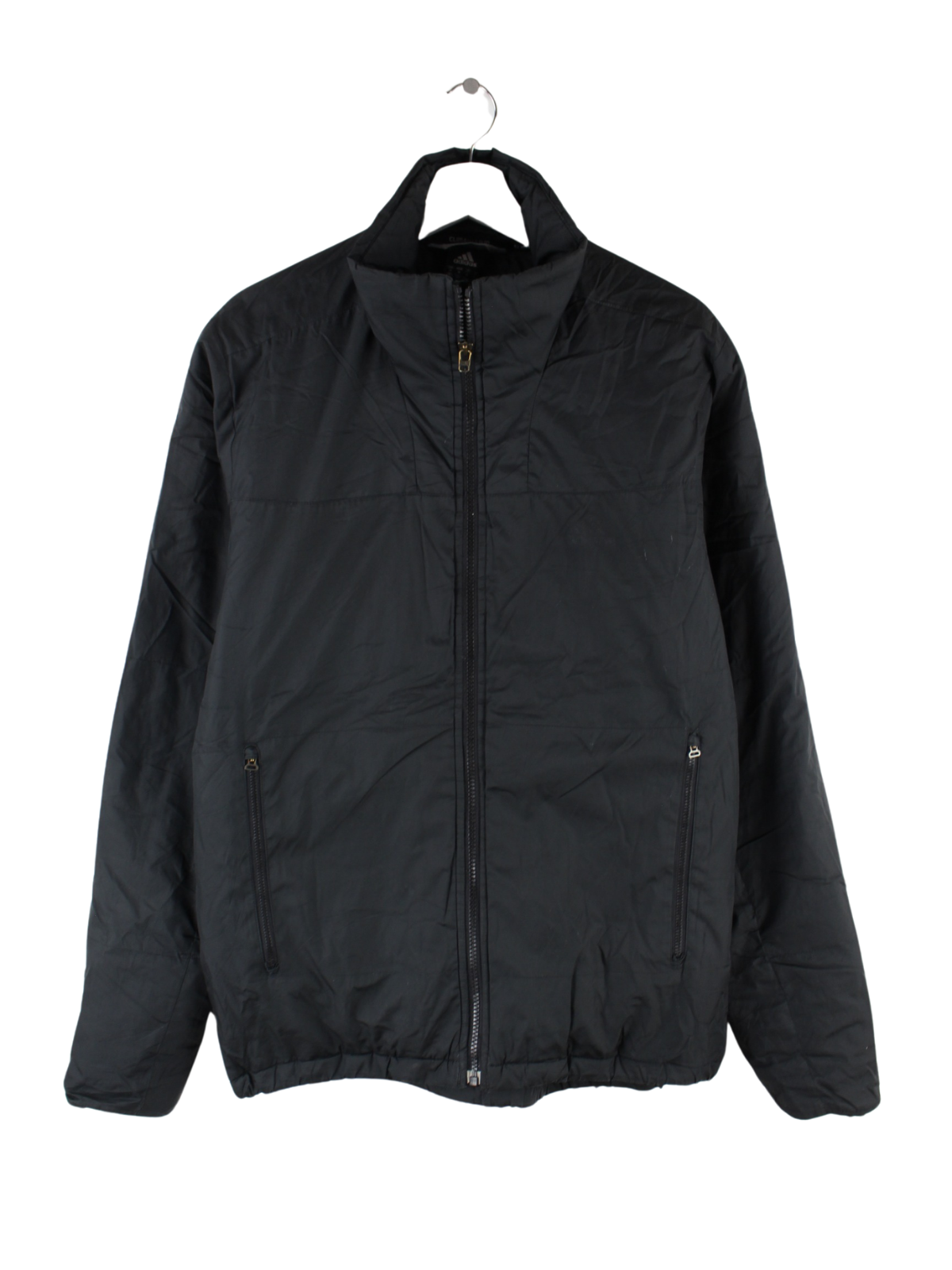 Jacke der Marke Adidas in Größe M. Sie ist aus Synthetik gefertigt und in Schwarz zu haben.