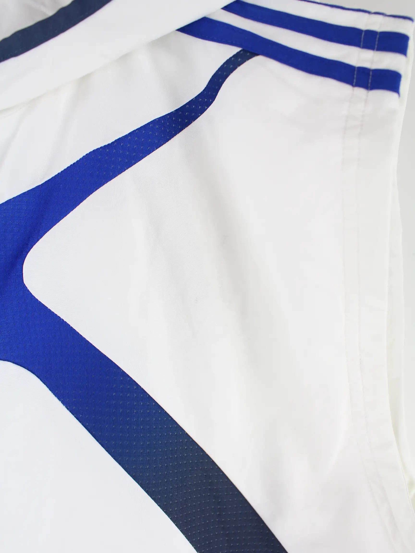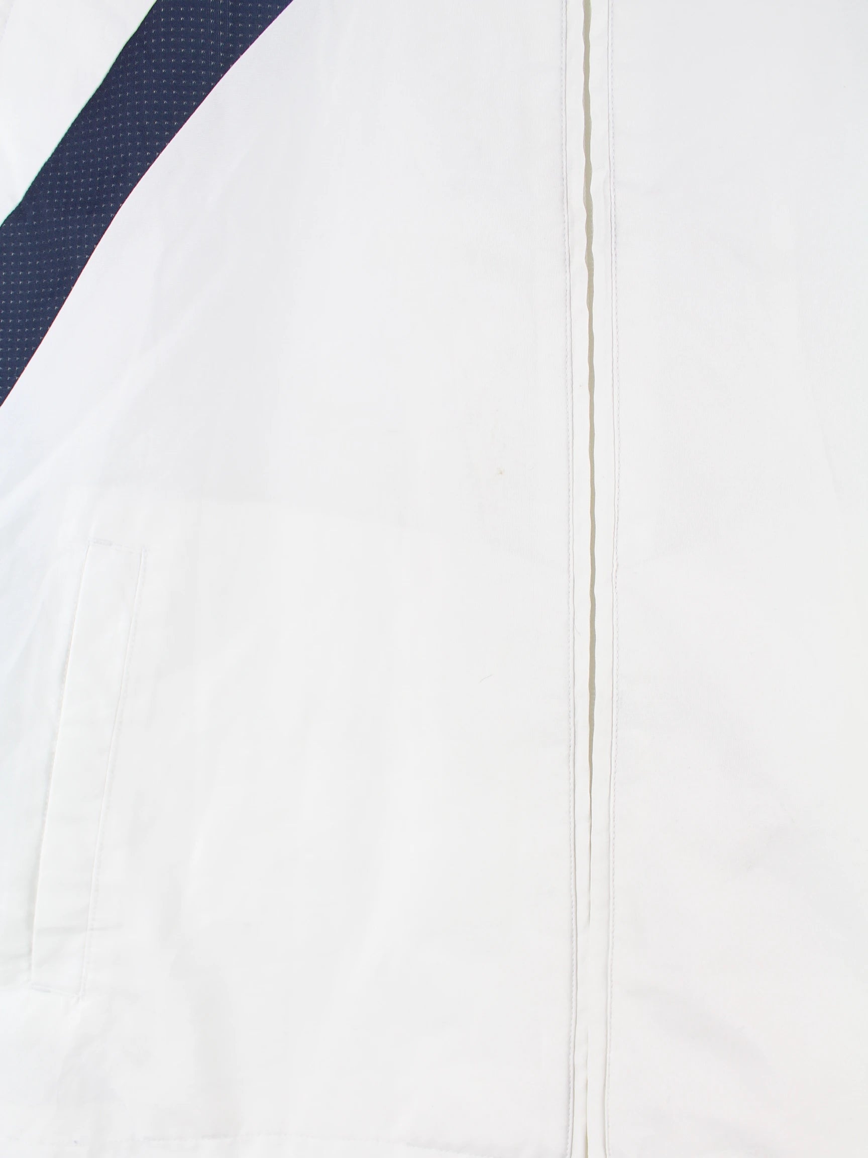 Weiße Trainingsjacke des Labels Adidas in Größe XL. Sie ist aus Synthetik und in gutem Zustand in Stock.