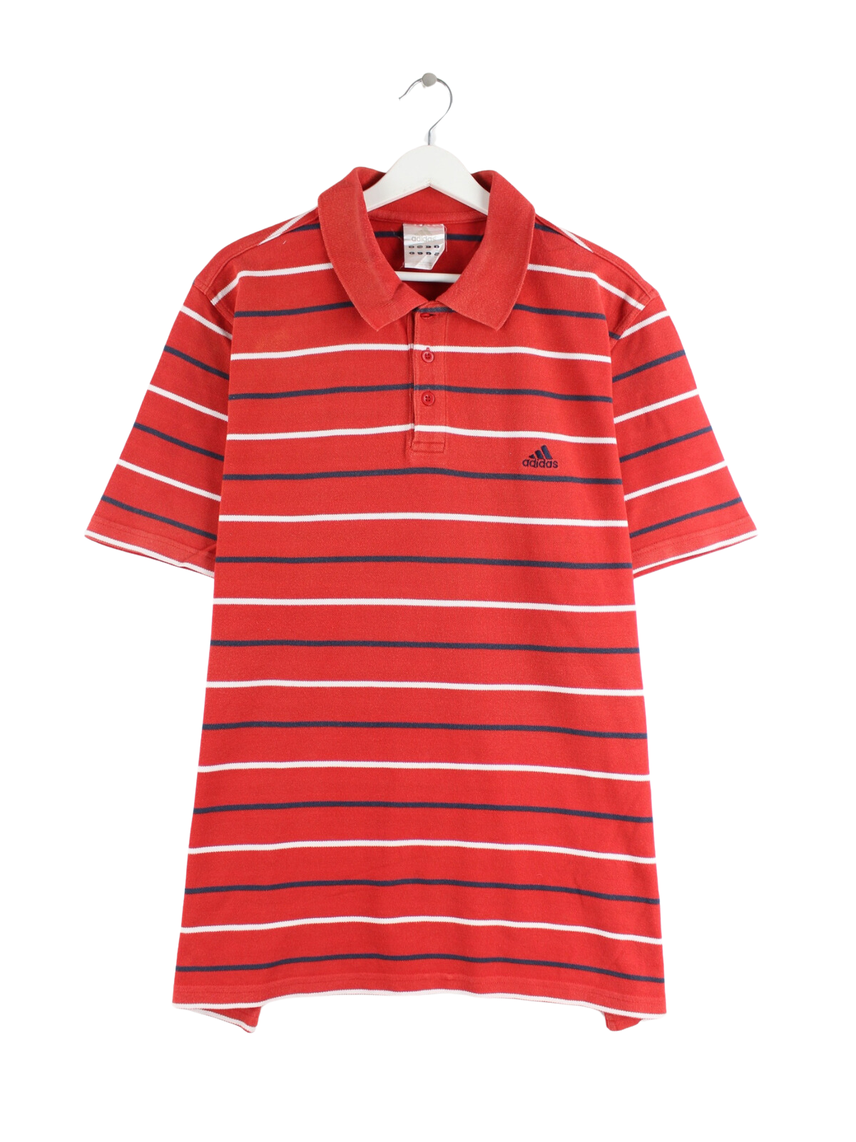 Poloshirt des Labels Adidas in Größe XL. Es ist aus Baumwolle und in Rot zu haben.