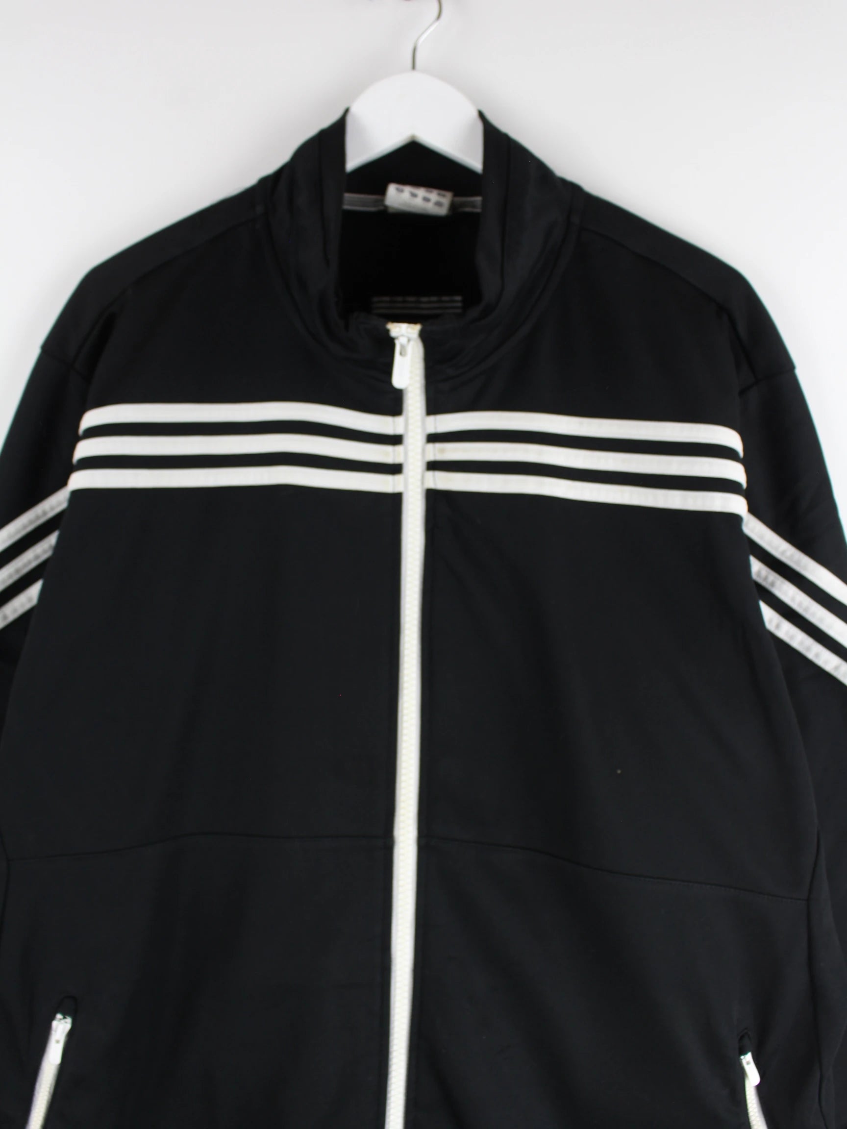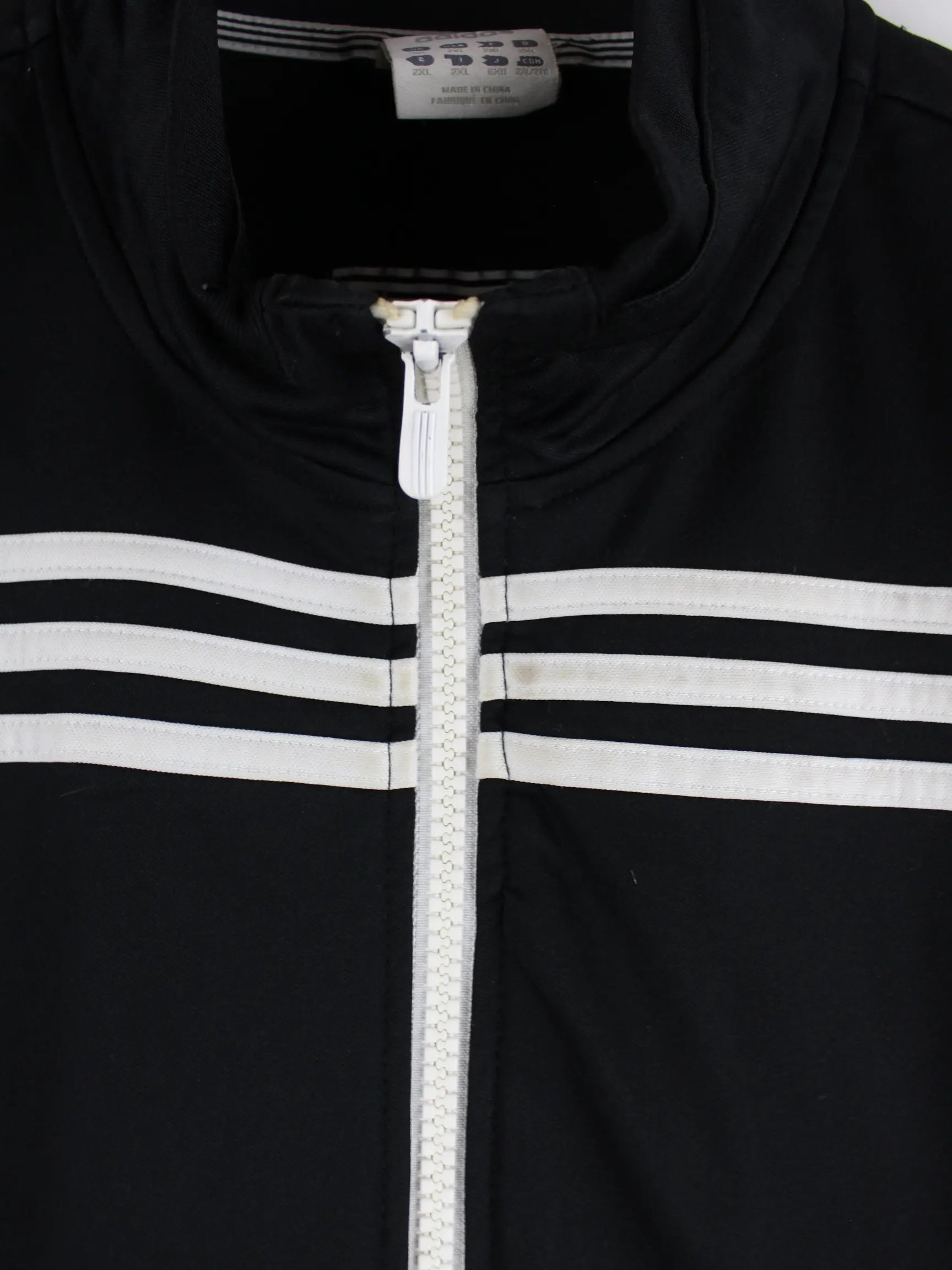 Schwarze Trainingsjacke der Marke Adidas in Größe XXL. Sie ist aus Synthetik hergestellt und in gutem Zustand im Bestand.