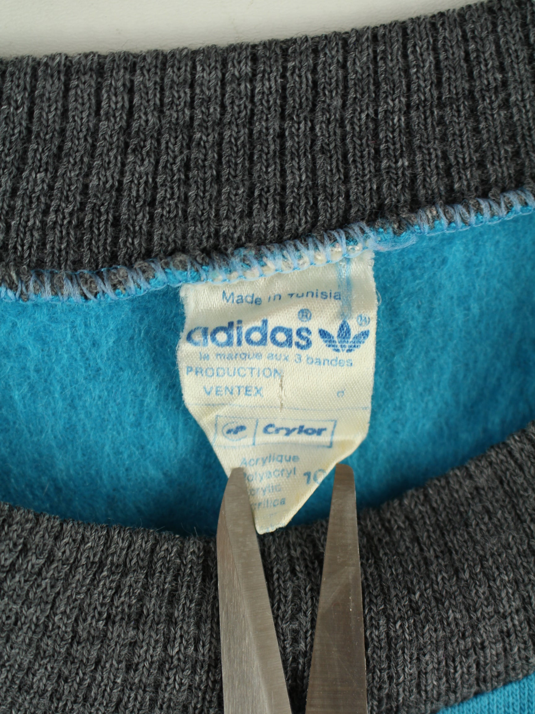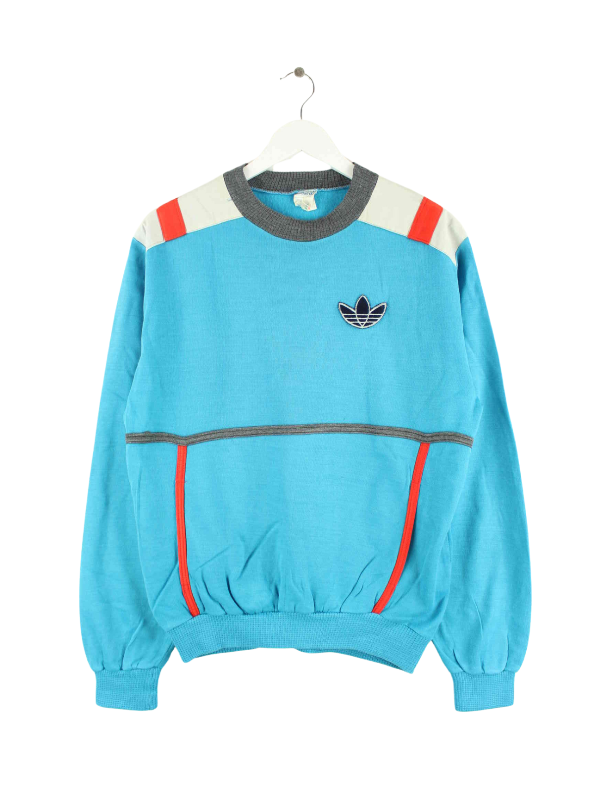 Sweater from the Adidas label with embroidered logo in size M. It is made of a cotton blend and available in blue.