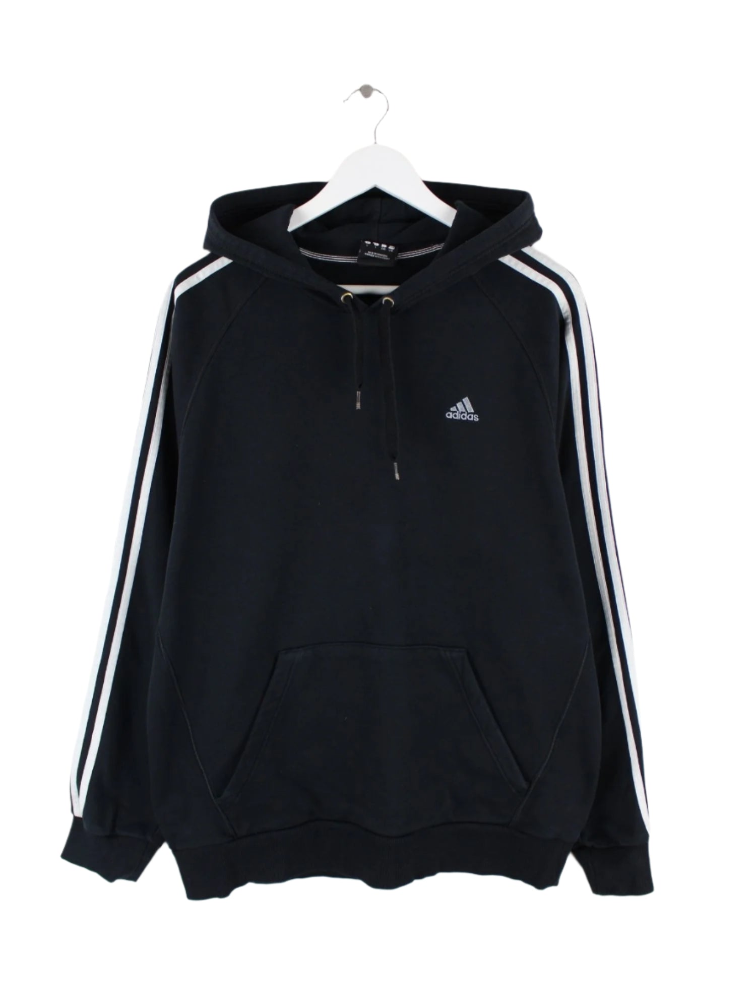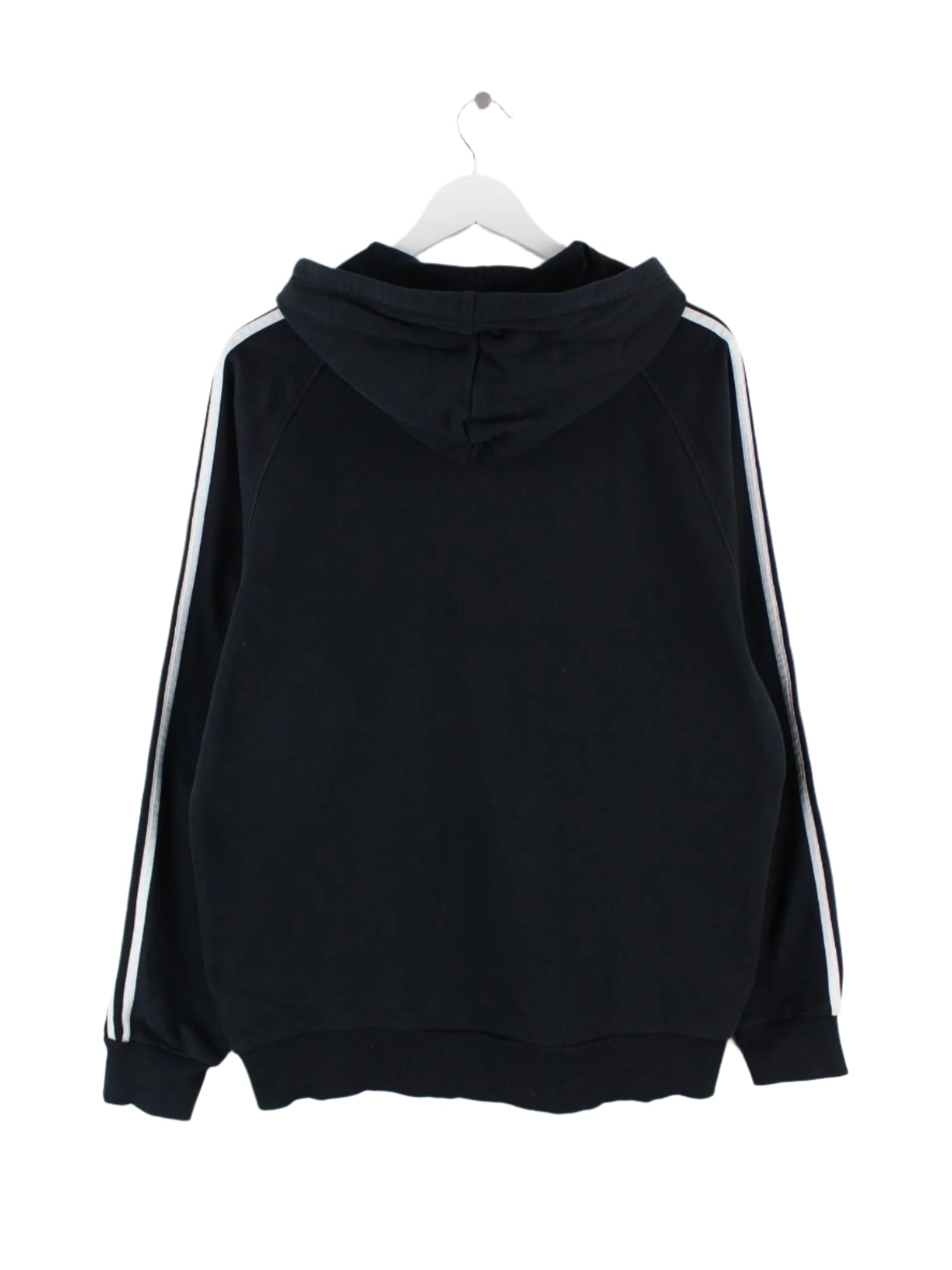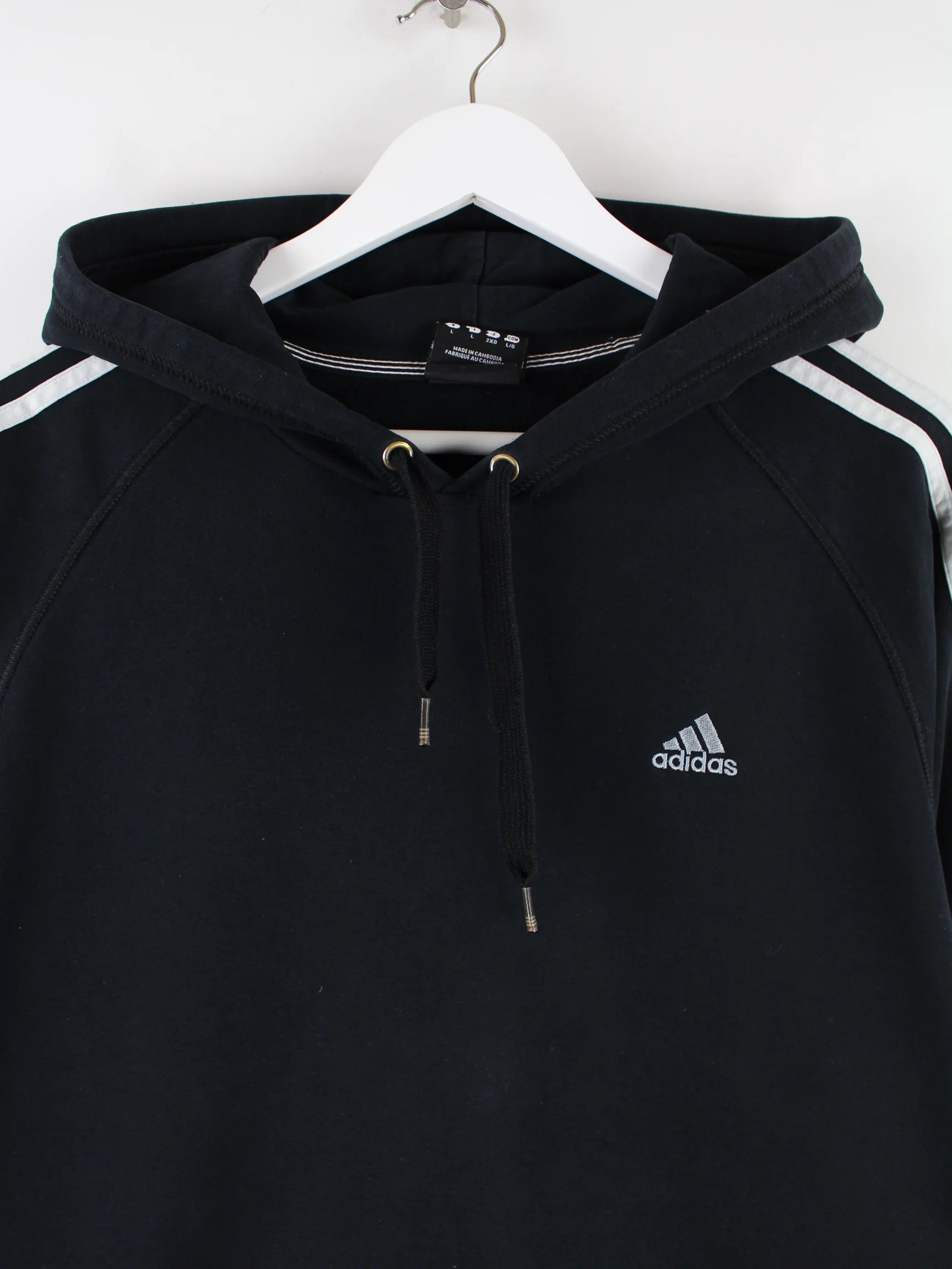 Hoodie des Labels Adidas in Größe L. Er ist aus einer Baumwollmischung gemacht und in Schwarz auf Lager.