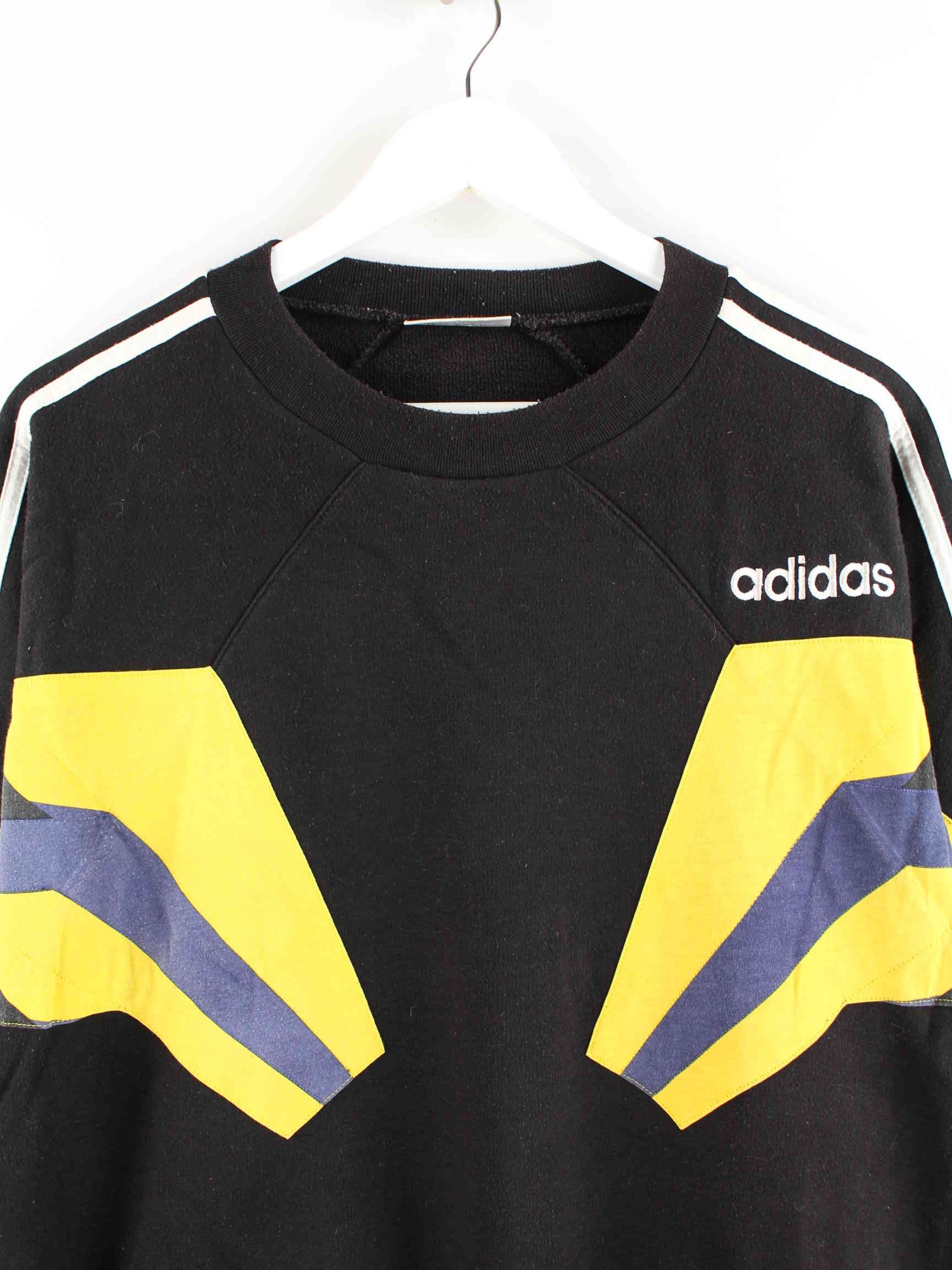 Adidas sweater with embroidery in size L from the 80s. It is made from a cotton blend and is available in black.