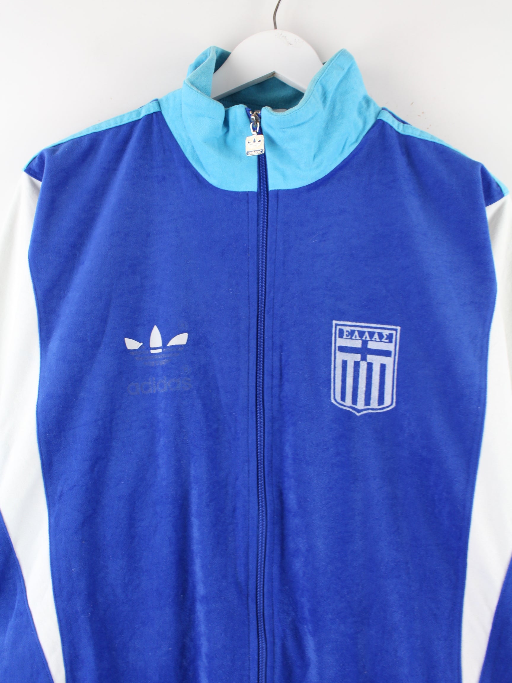 Adidas 80s Vintage Greece Print Velour Trainingsjacke Blau XL