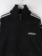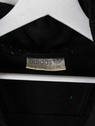 Leichte Jacke aus dem Hause Adidas in Größe L aus den 80'ern. Sie ist aus Synthetik hergestellt und in Schwarz bei uns zu bekommen. Mit schickem World Print.