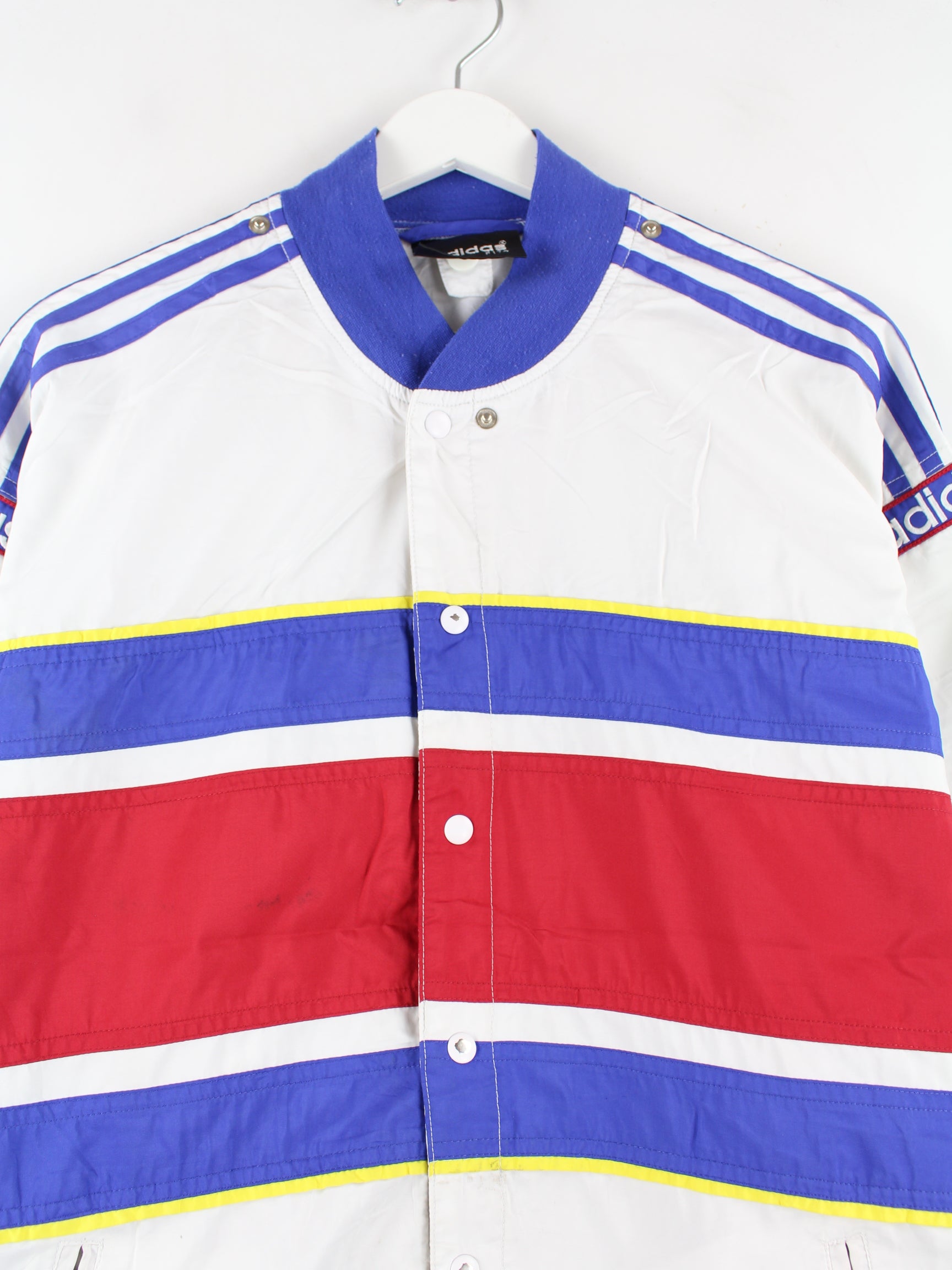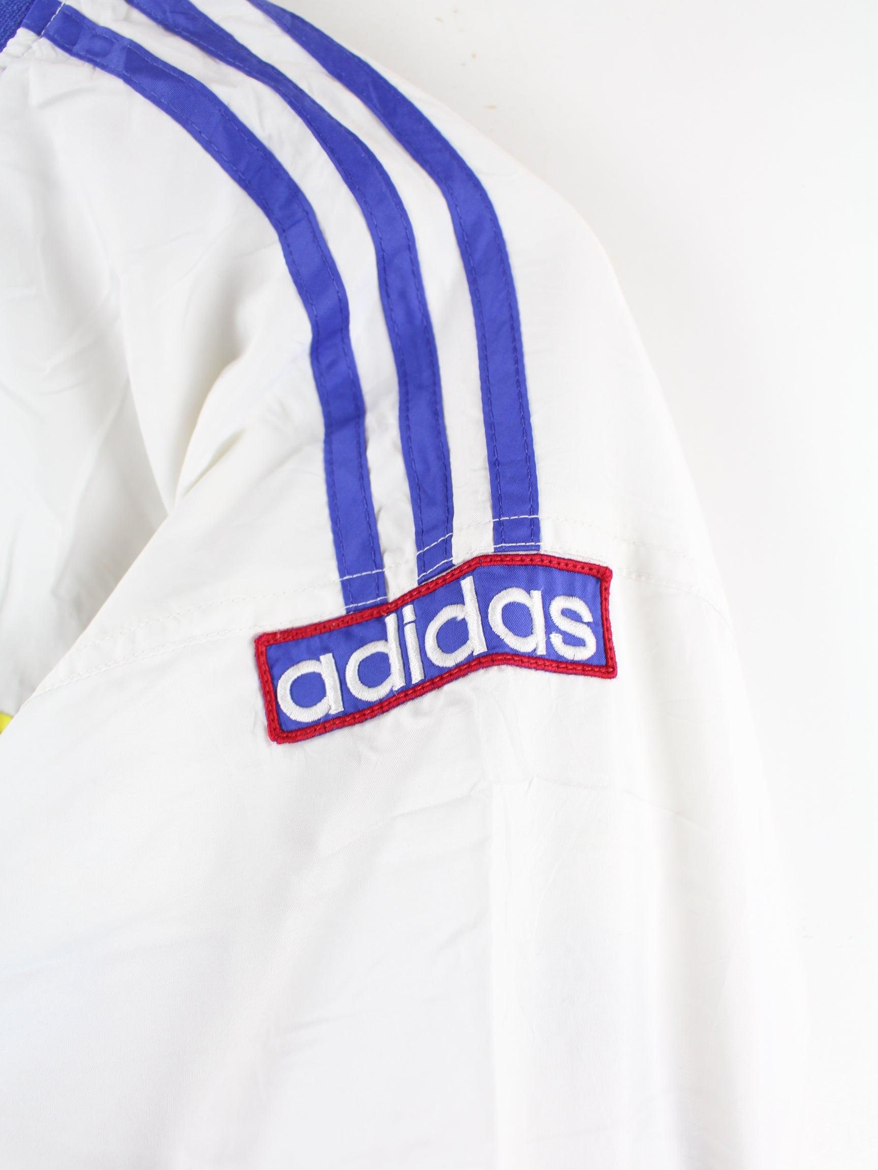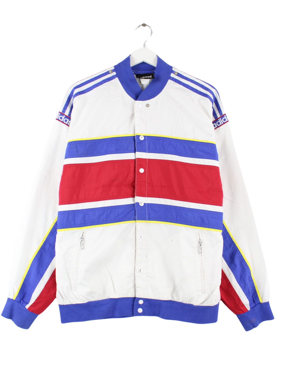 White tracksuit jacket from Adidas from the 80's in size M. It is made of synthetic material. We would describe the condition as 'fine' (see pictures).
