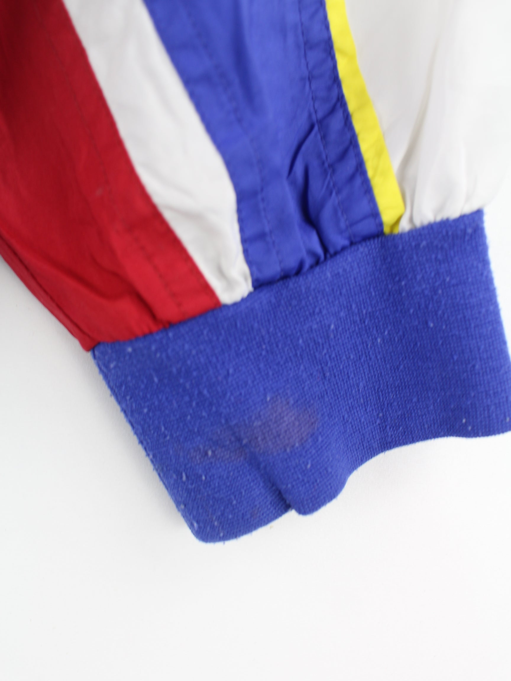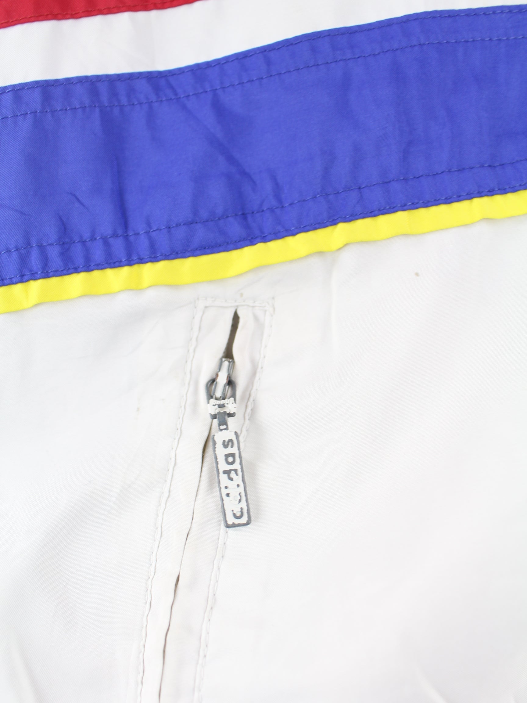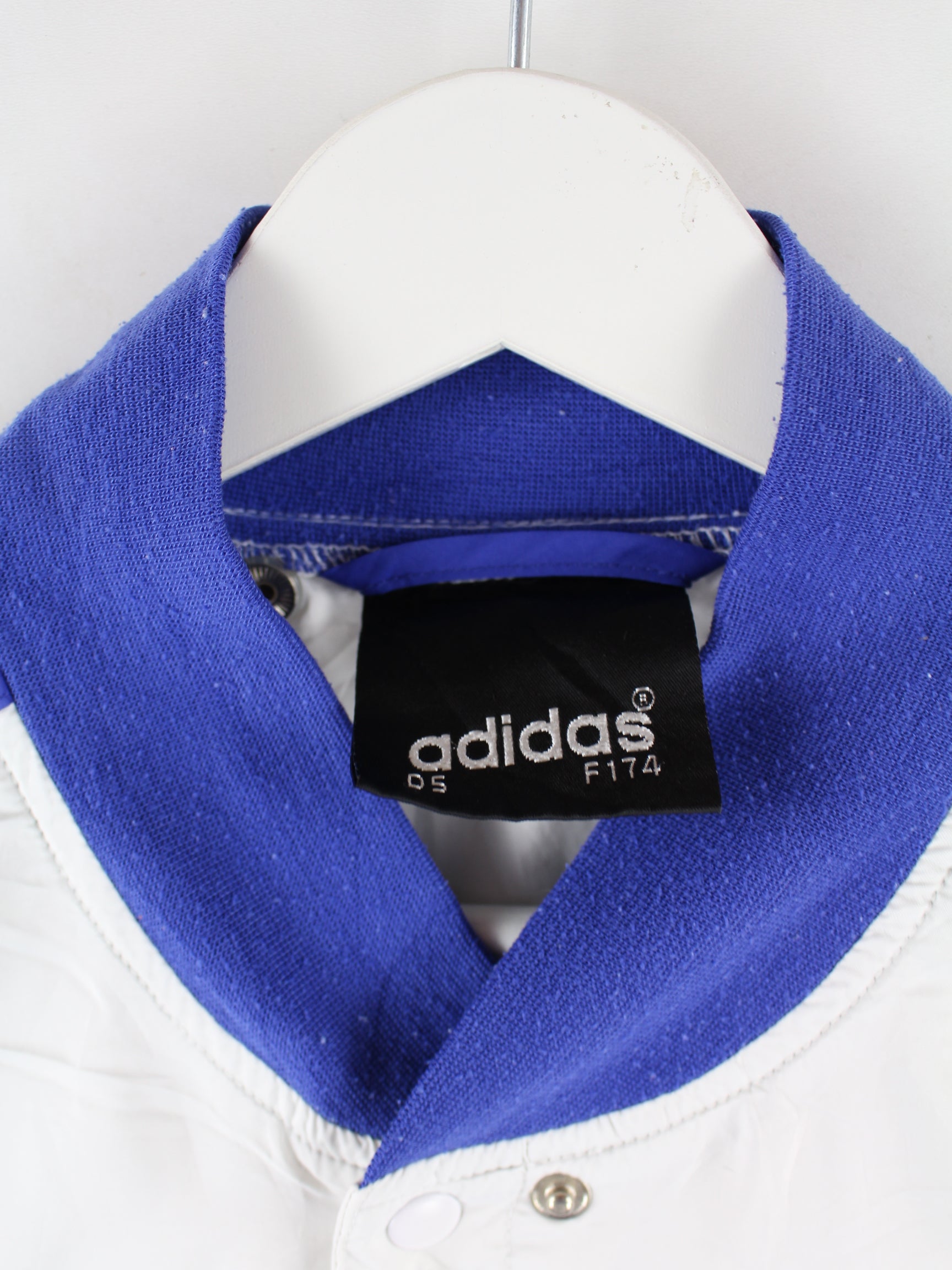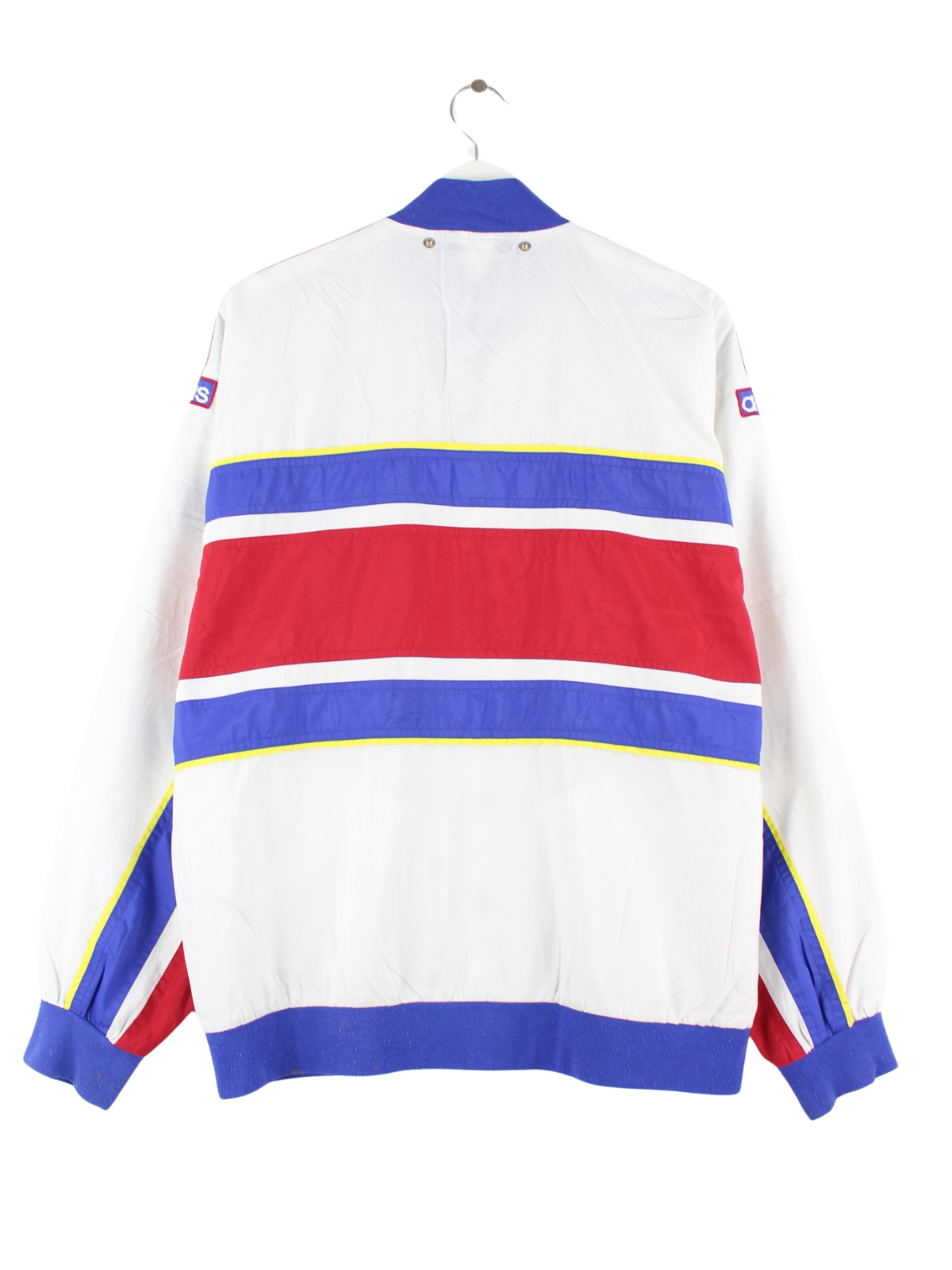 White tracksuit jacket from Adidas from the 80's in size M. It is made of synthetic material. We would describe the condition as 'fine' (see pictures).