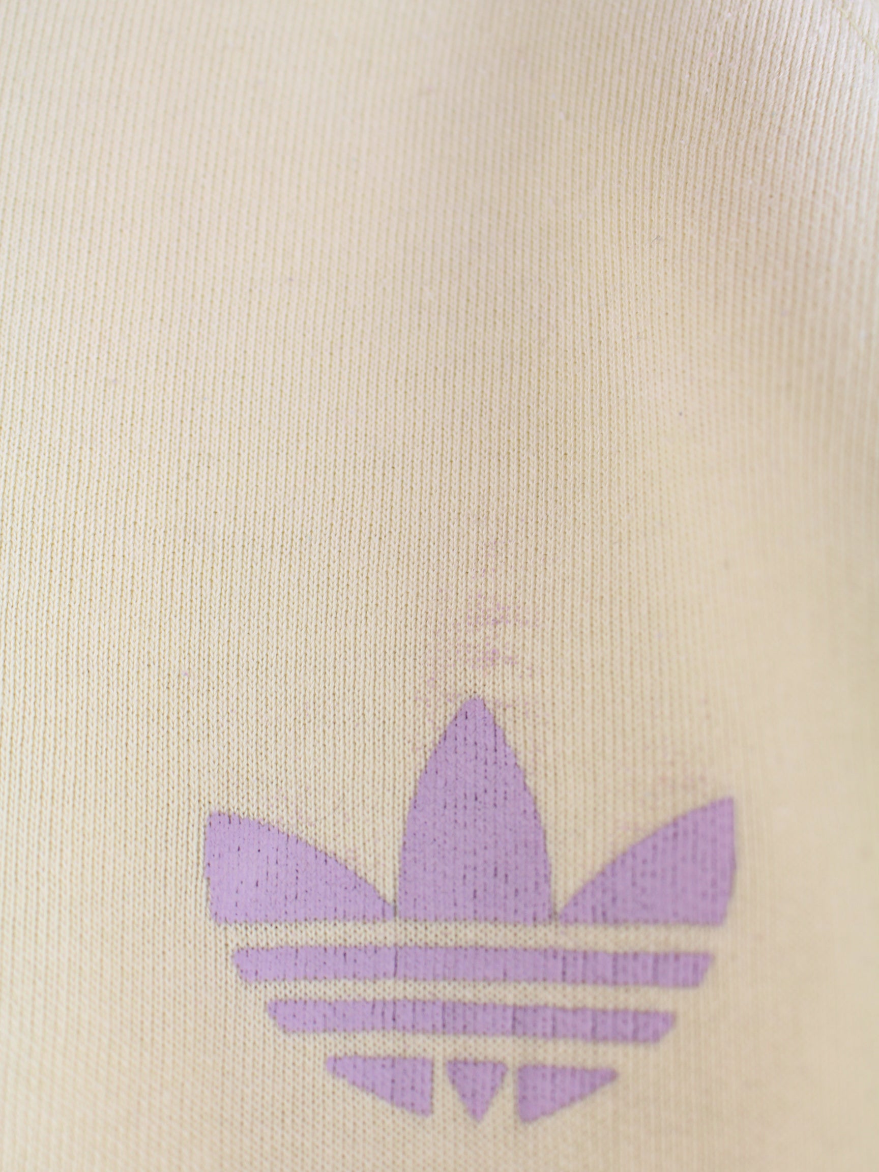 Adidas sweater in size XXL from the 80's. It is made from a cotton blend and is in stock in yellow. With a great Trefoil print.