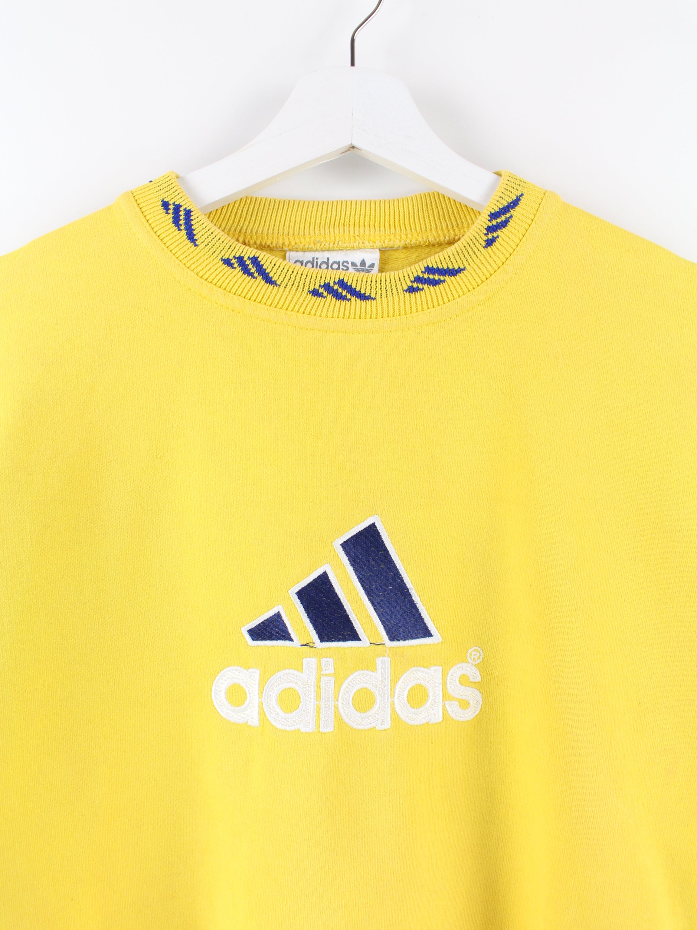 Yellow vintage Adidas sweater from the 90s with embroidered logo.