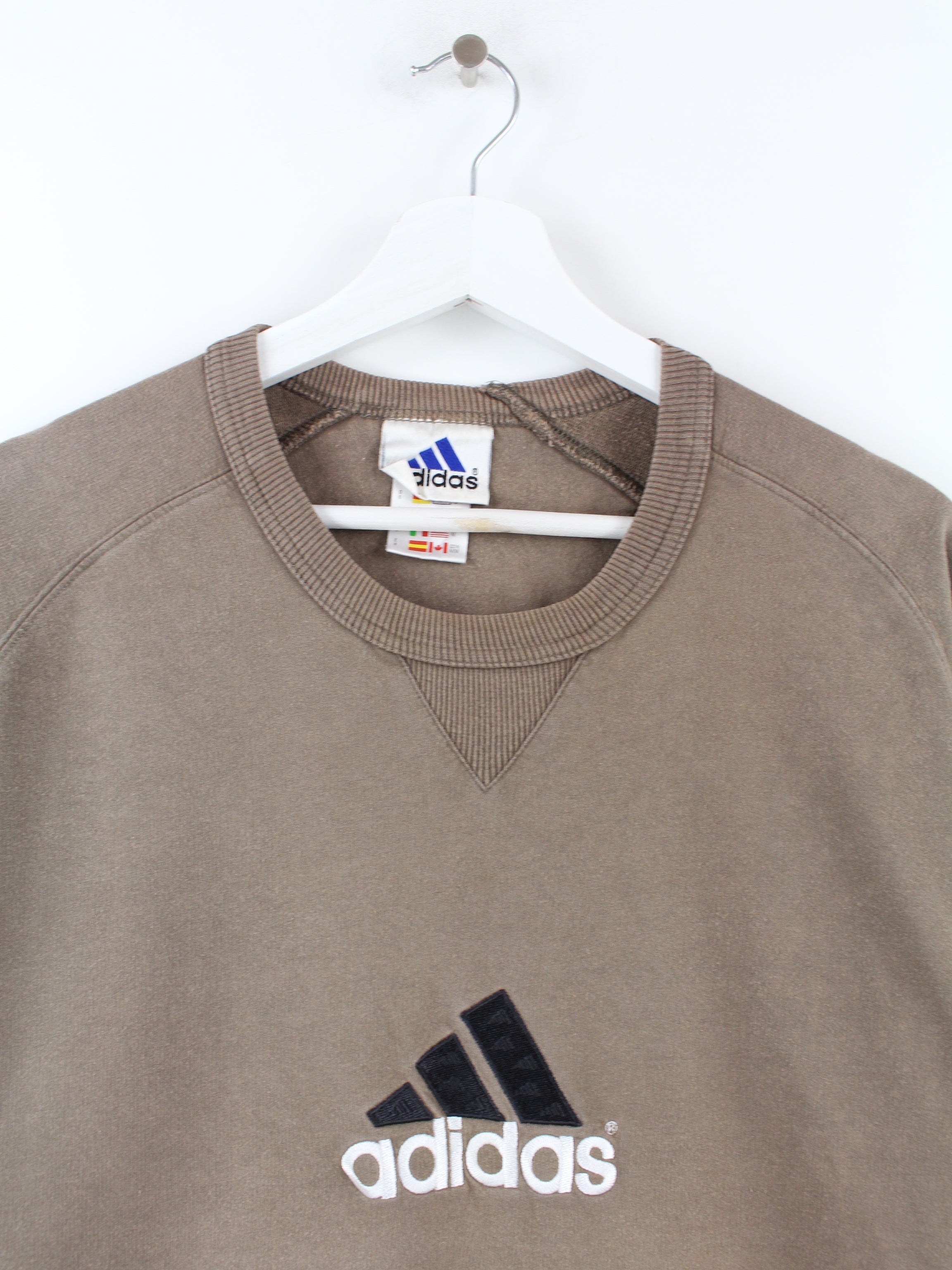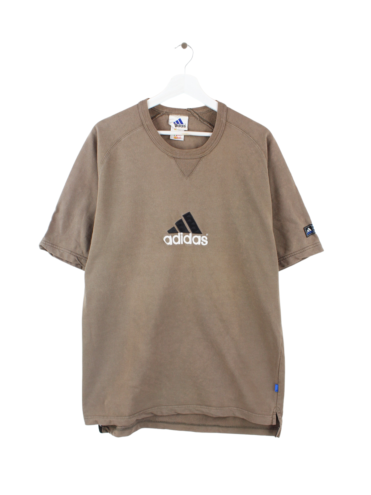 Brown vintage 90s Adidas t-shirt with embroidered logo.