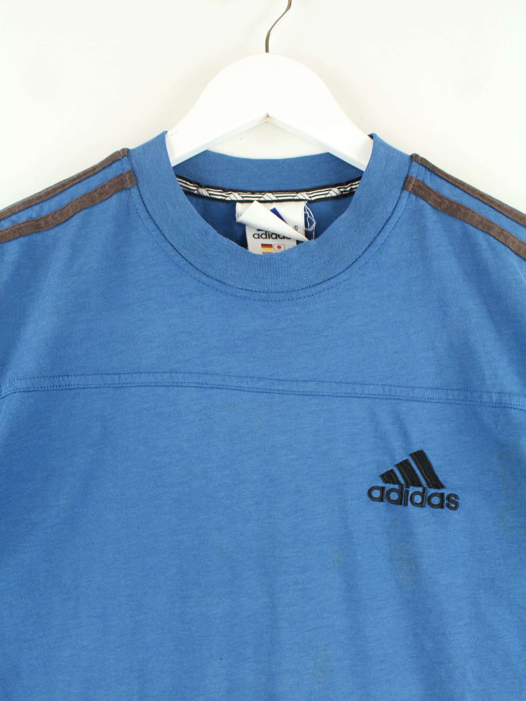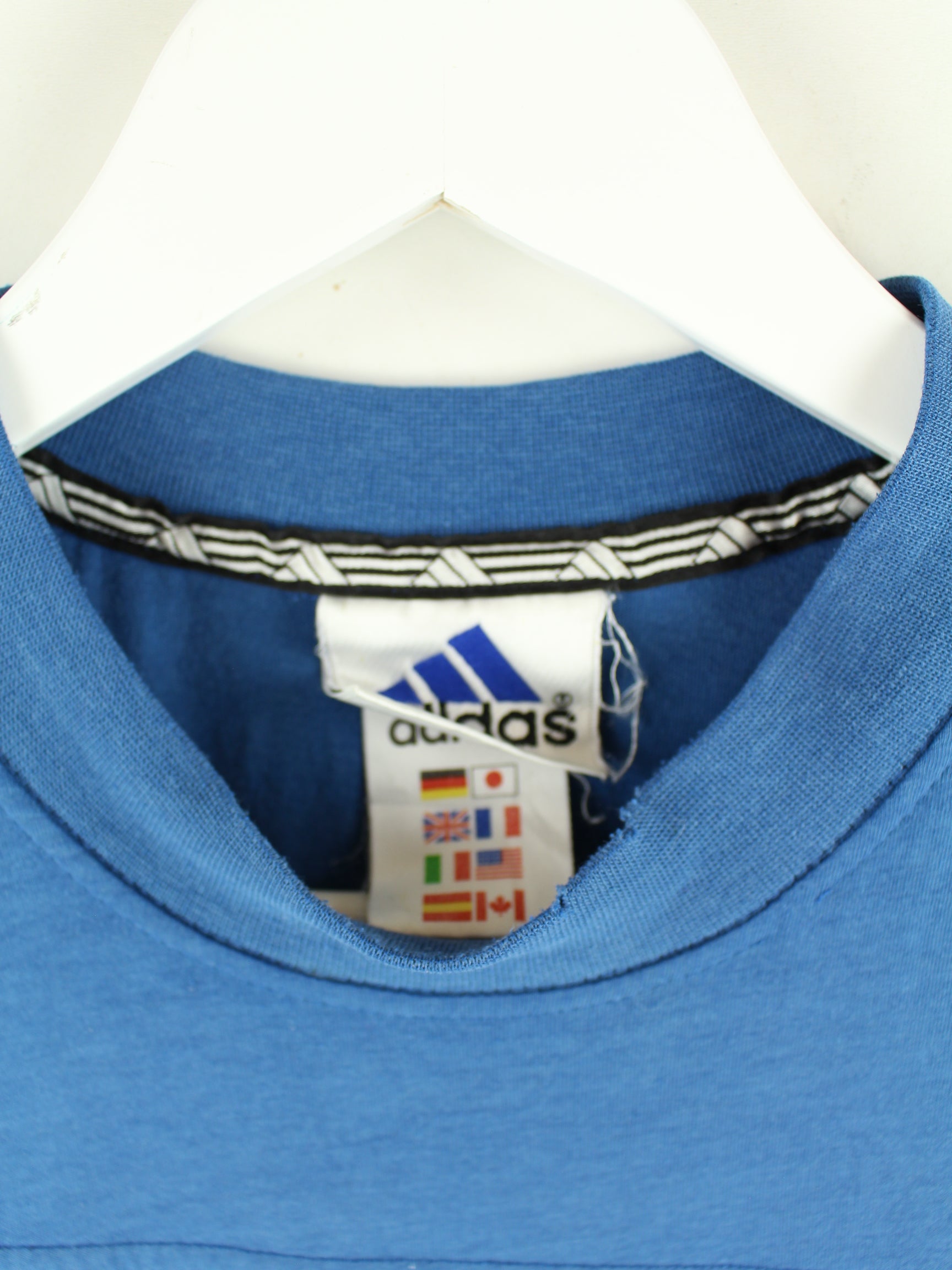 T-shirt by Adidas in size S from the 90's. It is made of a cotton blend and is available in blue.