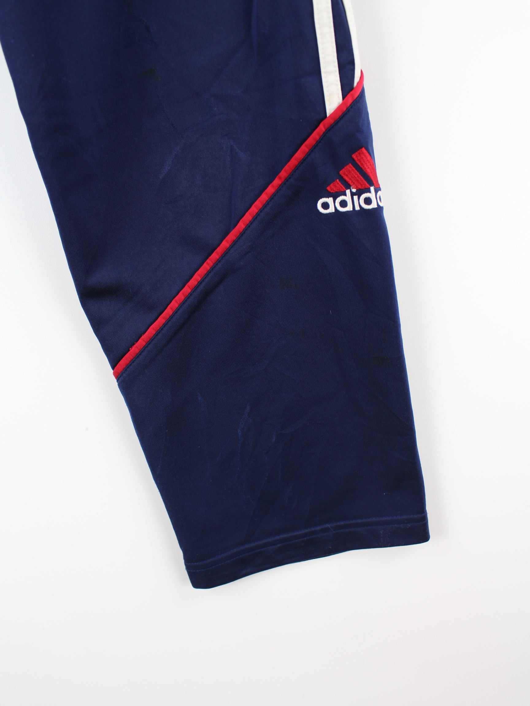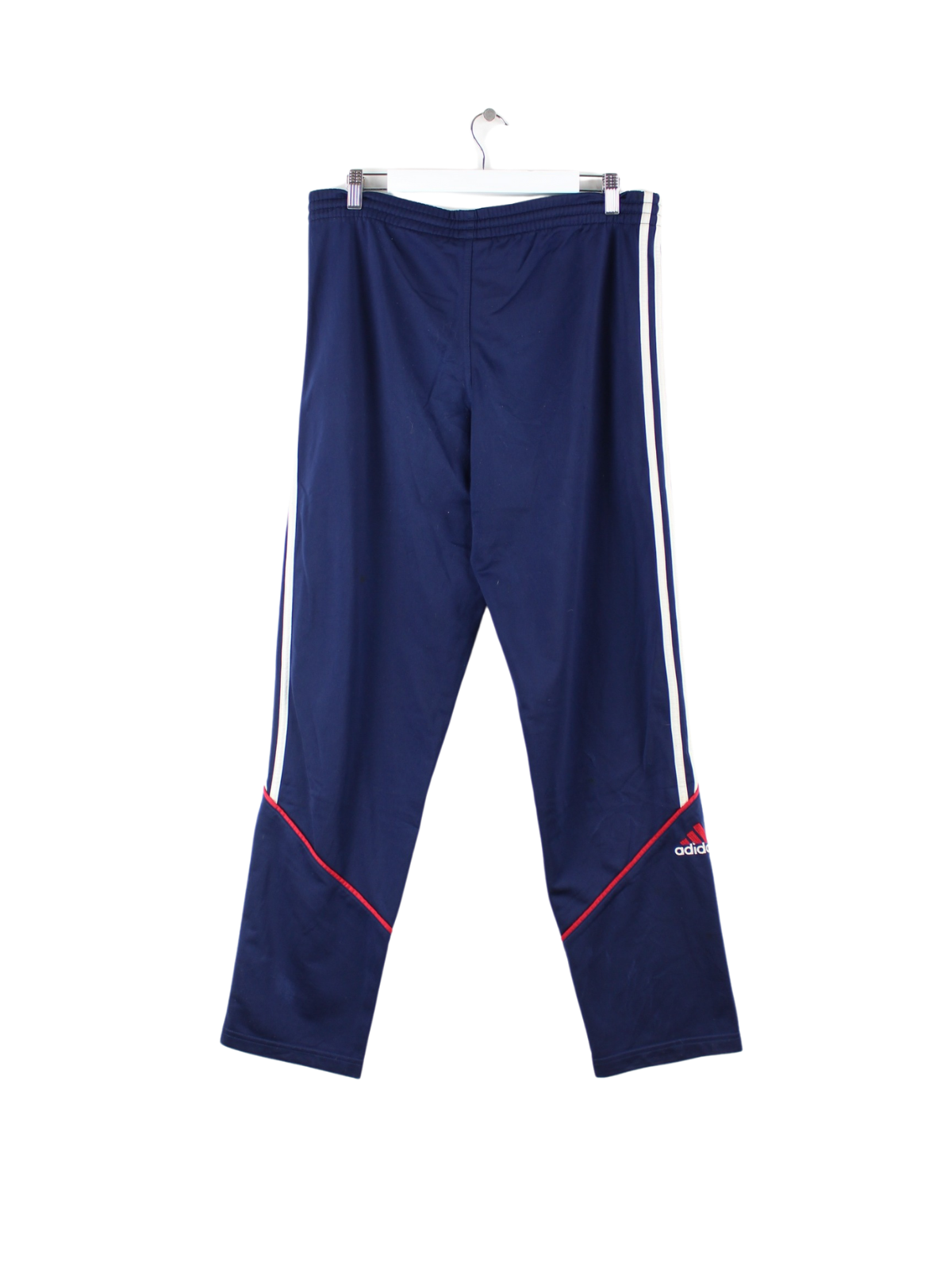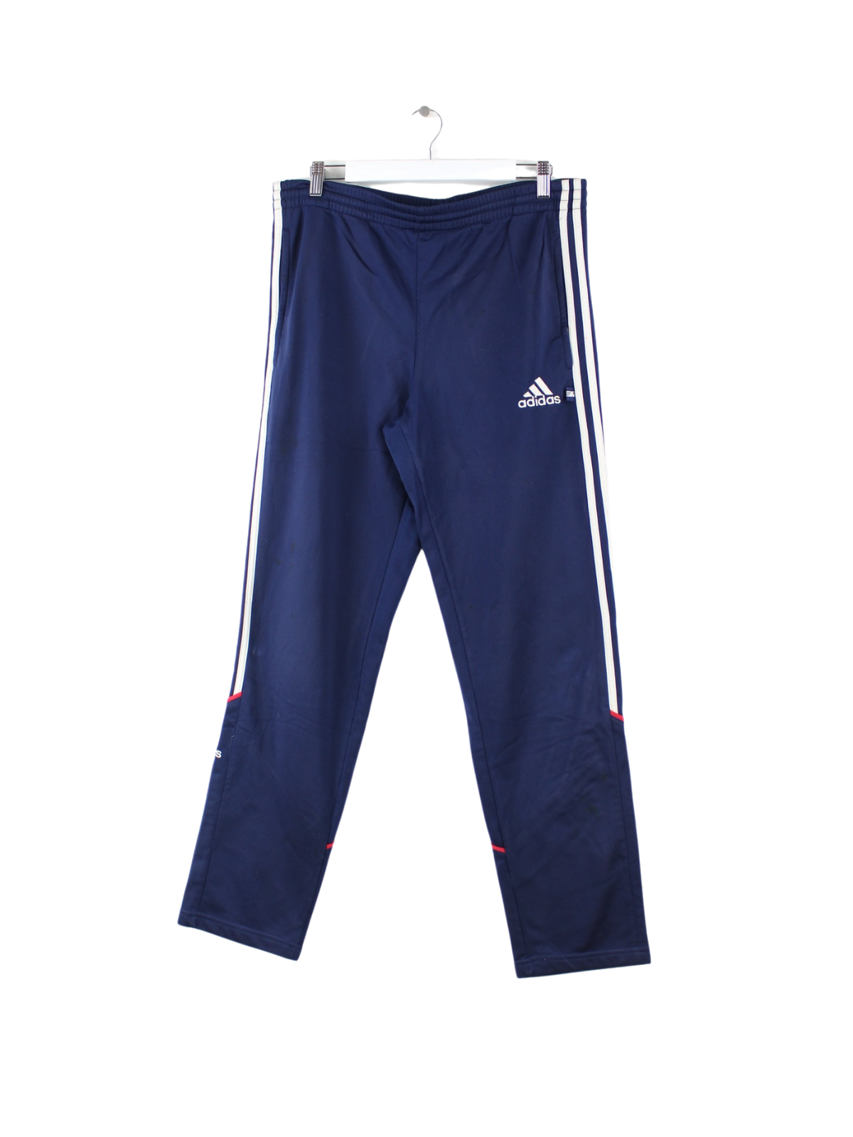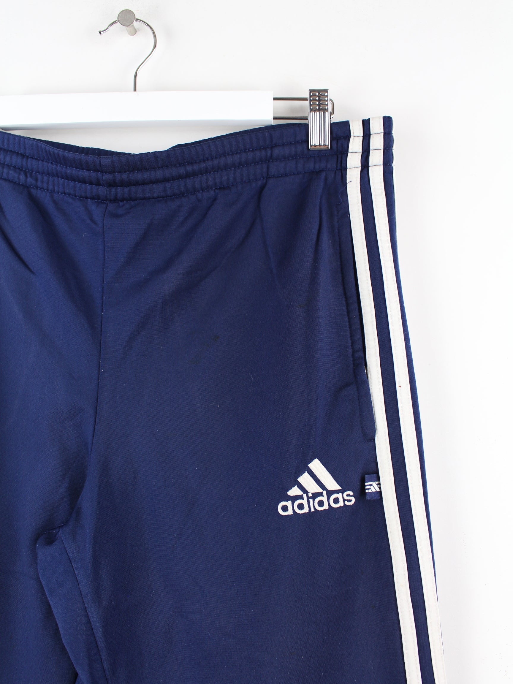 Blue track pants by Adidas from the 90's in size L. They are made of synthetic material and are in good condition.