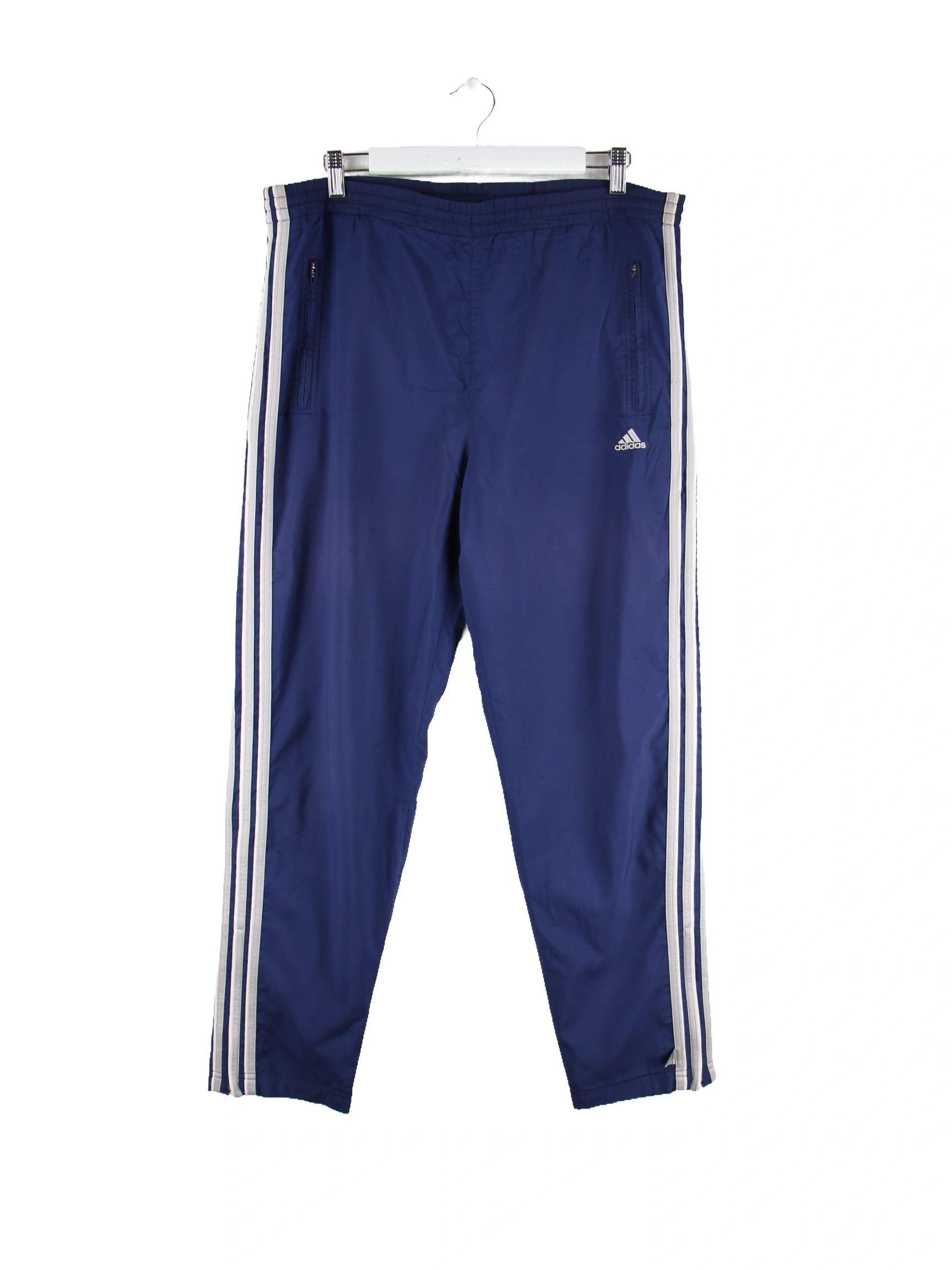 Blaue Track Pants des Labels Adidas aus den 90'ern in Größe M. Sie sind aus Synthetik gemacht und in sehr gutem Zustand auf Lager.