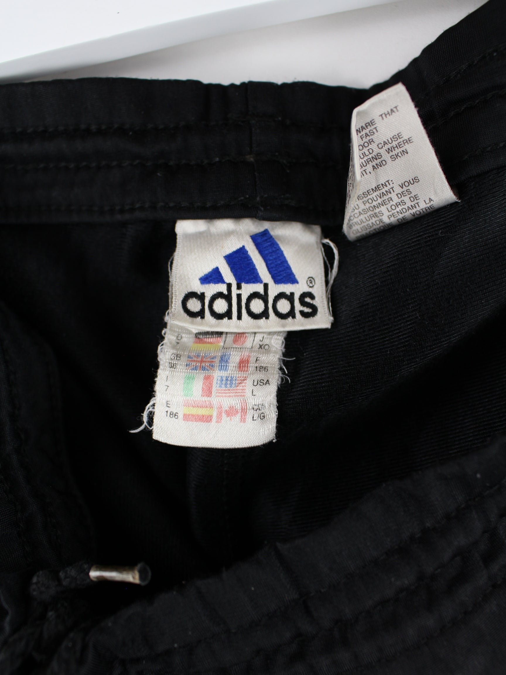 Track Pants vom Brand Adidas in Größe XXL aus den 90'ern. Sie sind aus Synthetik gemacht und in Schwarz bei uns vorrätig.