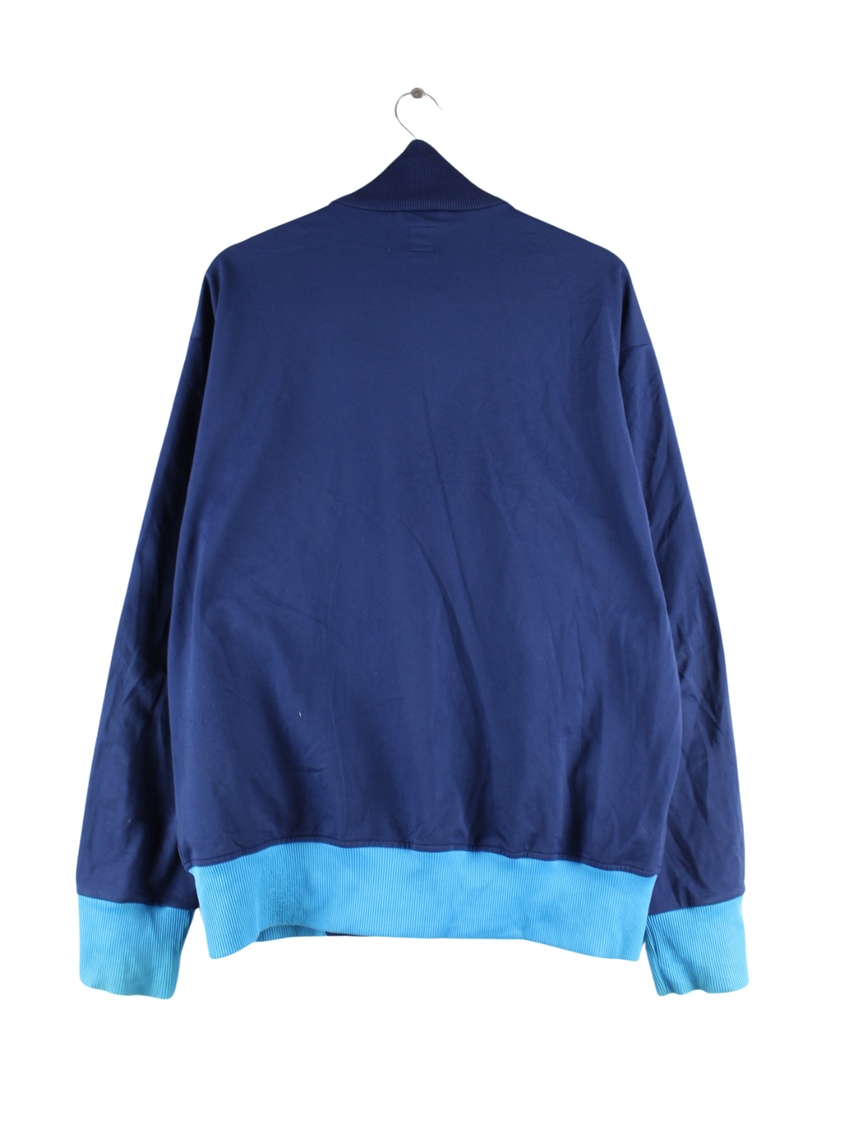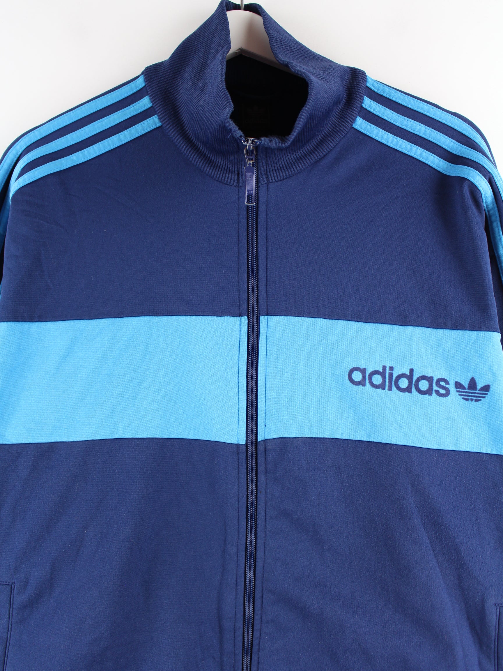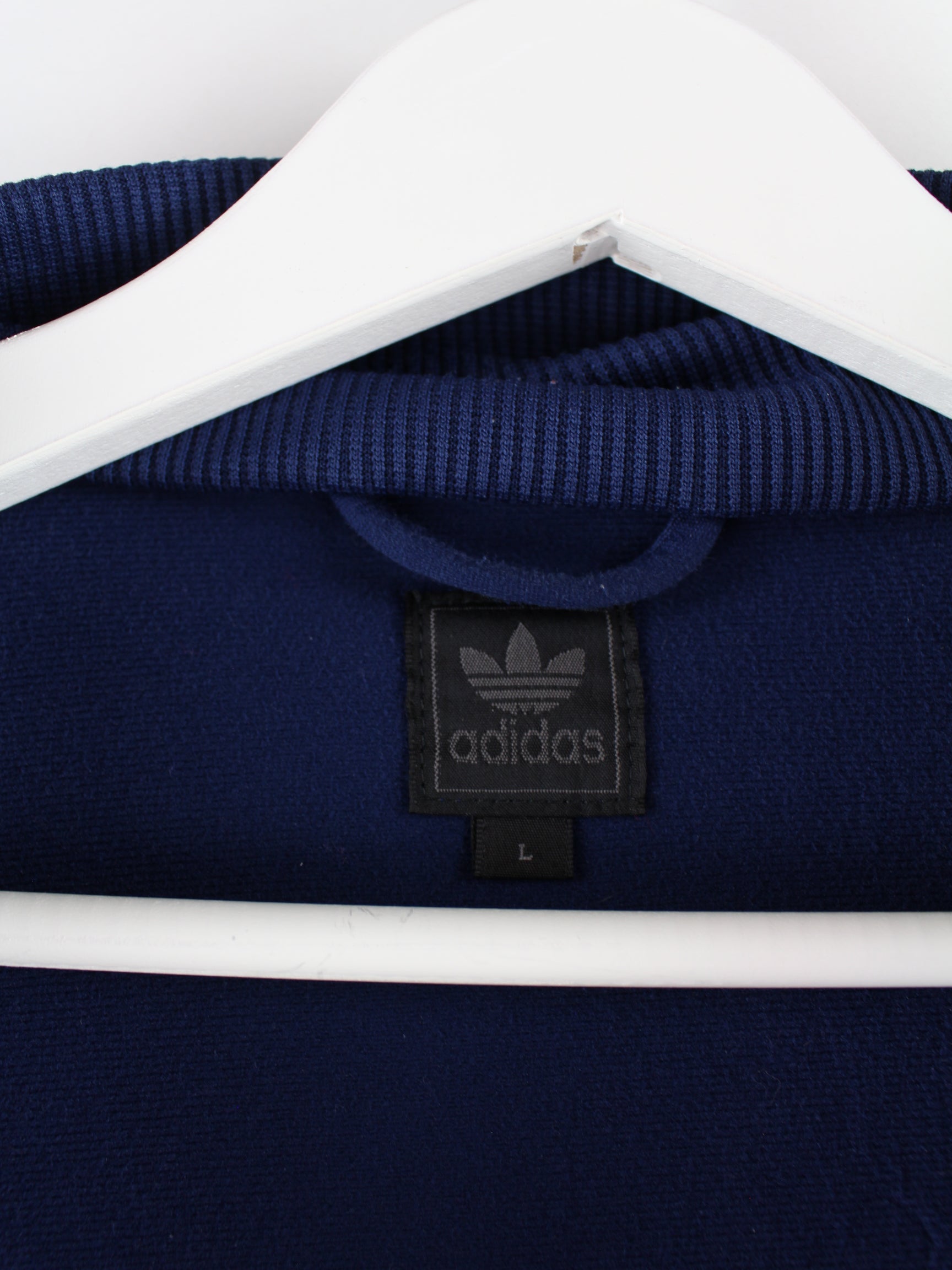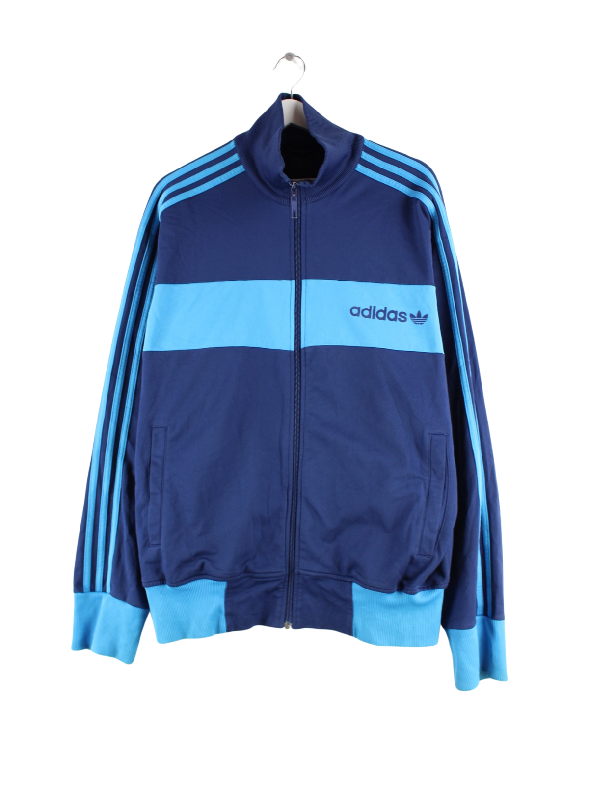 Adidas tracksuit jacket in size L from the 90's. It is made of synthetic material and is available in blue.