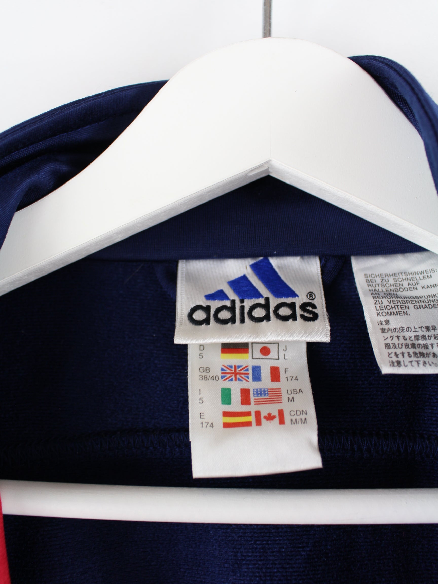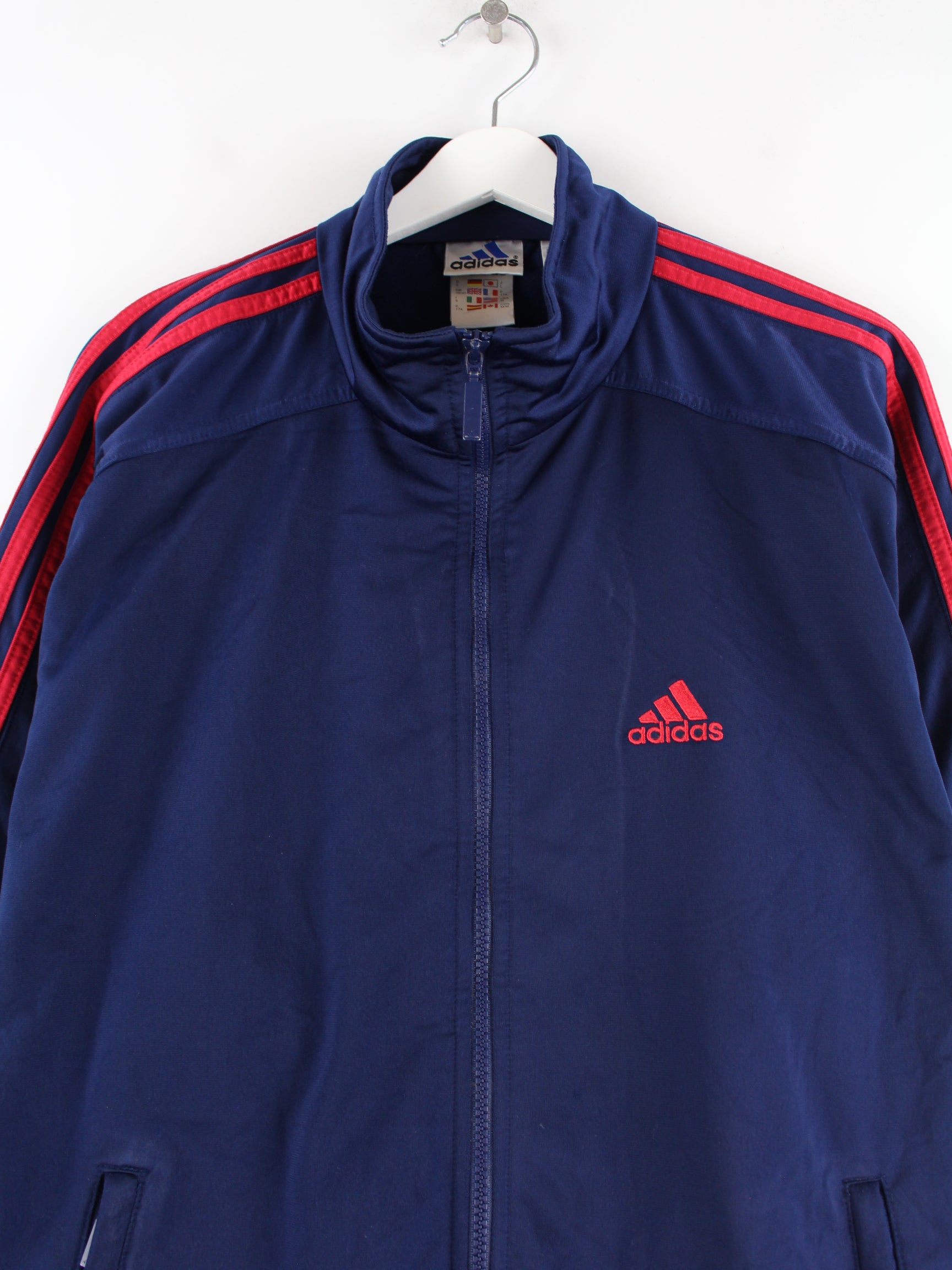 Adidas training jacket in size M from the 90's. It is made of synthetic material and is available in blue.