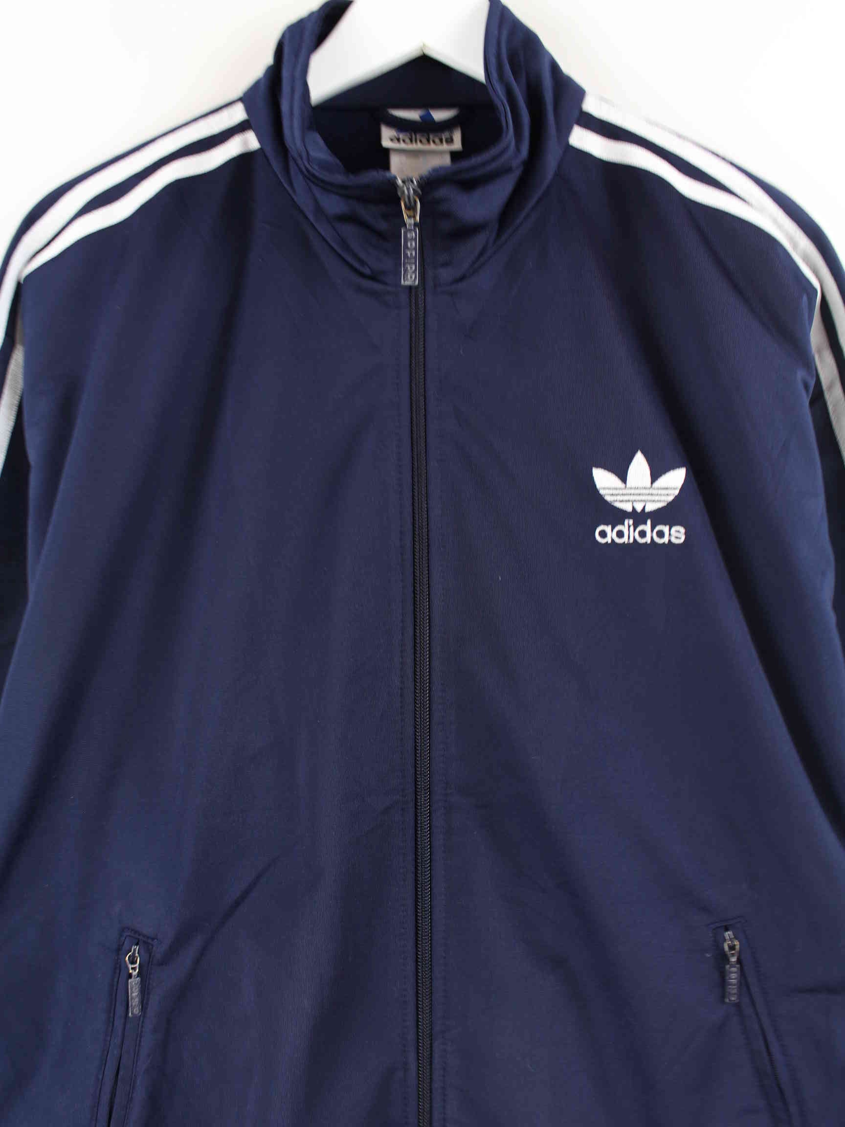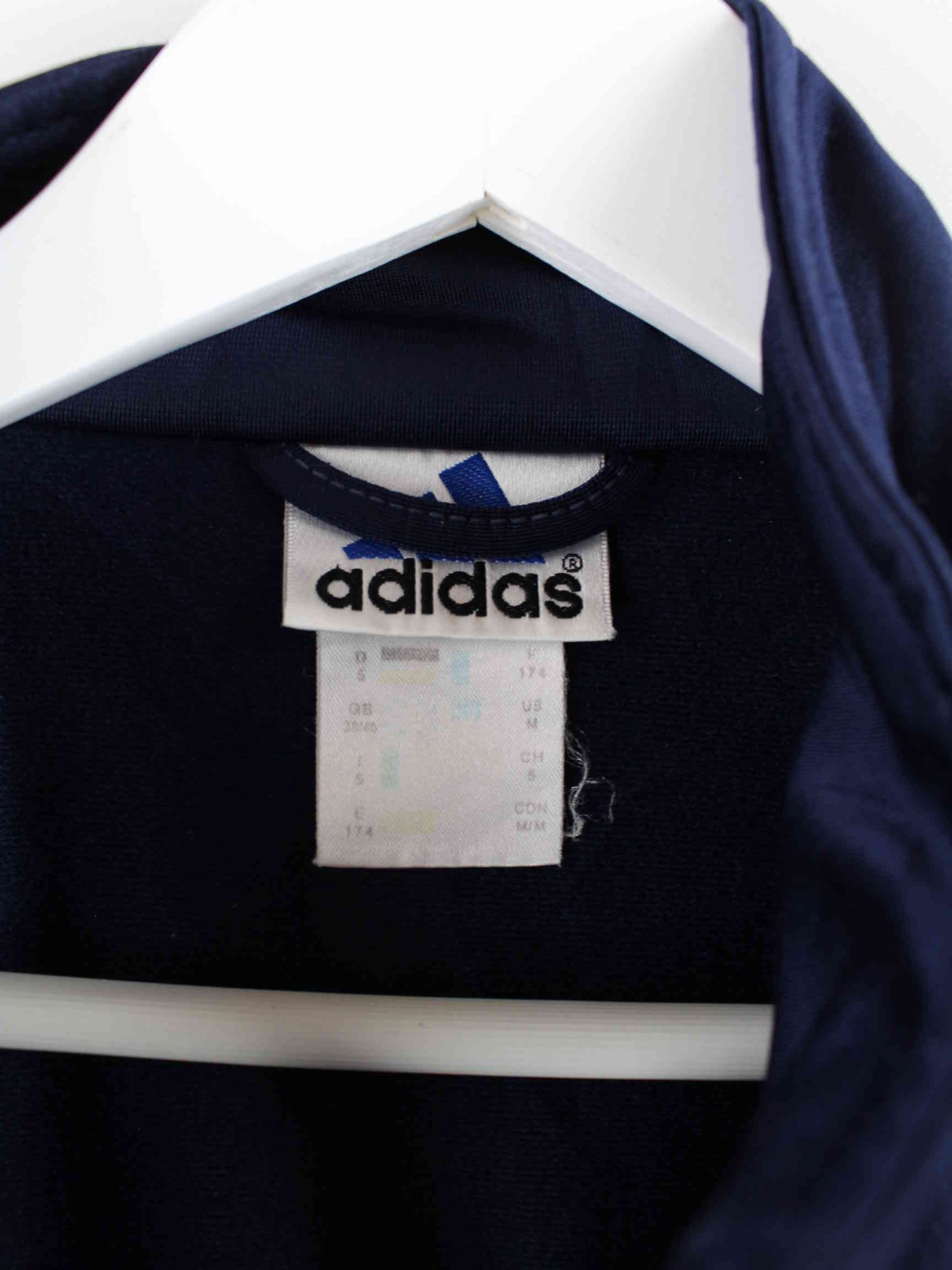 Blue Adidas brand training jacket from the 90s in size M. It is made of synthetic material and is in stock in very good condition.