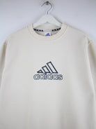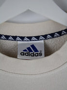 Sweater vom Brand Adidas in Größe M aus den 90'ern. Er ist aus einer Baumwollmischung gefertigt und in Beige bei uns vorrätig.