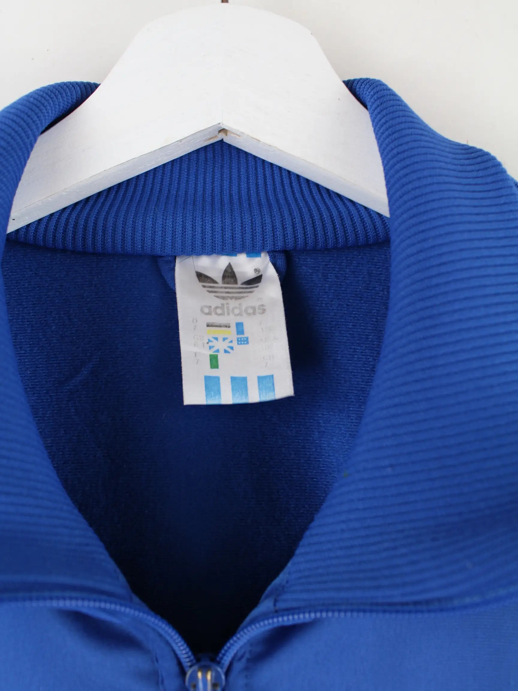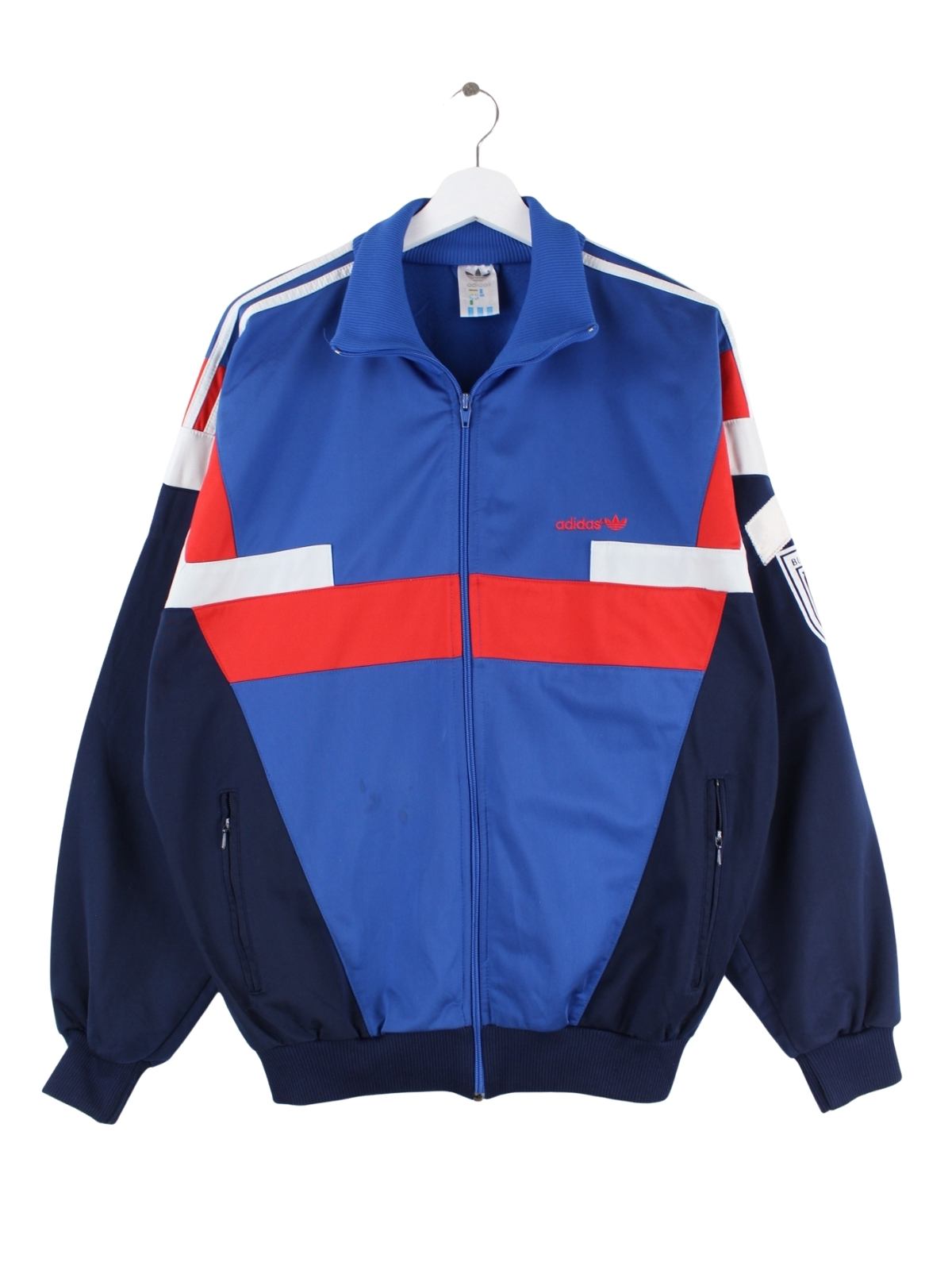 Blaue Trainingsjacke von Adidas aus den 90'ern in Größe L. Sie ist aus Synthetik gefertigt und in gutem Zustand auf Lager.