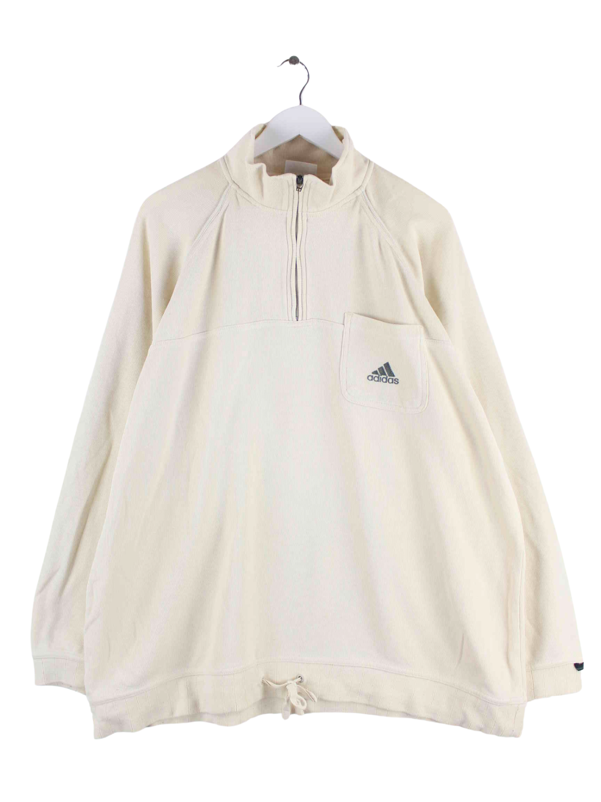 Adidas brand sweater with embroidered logo and half zip in size XXL from the 90's. It is made from a cotton blend and is available in beige.