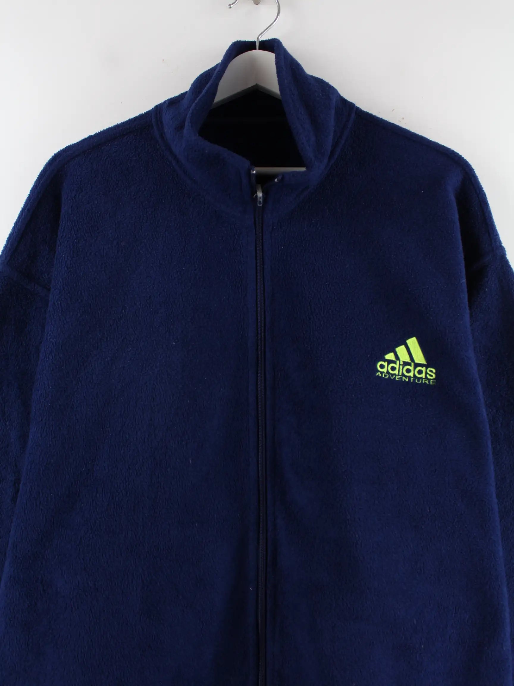 Leichte Jacke von Adidas in Größe XL aus den 90'ern. Sie ist aus behaglichem Fleece angefertigt und in Blau lieferbar.