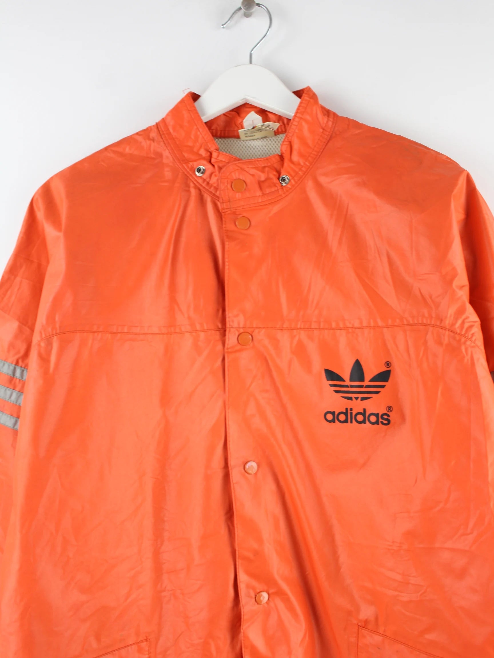 Orangefarbene Leichte Jacke der Brand Adidas aus den 90'ern in Größe S. Sie ist aus Synthetik . Den Zustand würden wir als 'In Ordnung' bezeichnen (vergl. Bilder).