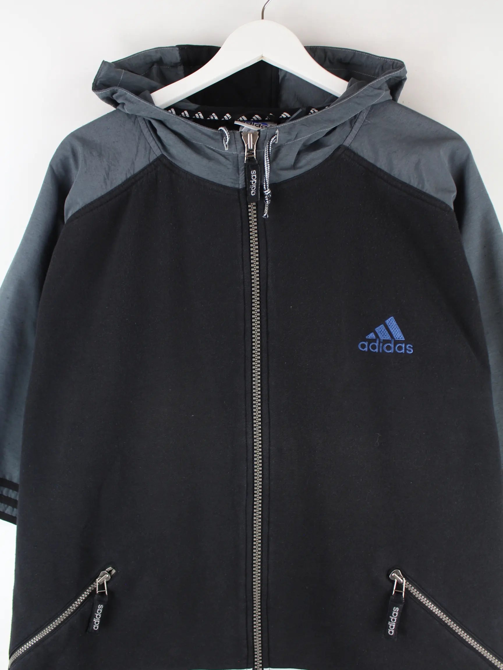Trainingsjacke vom Brand Adidas in Größe 3XL aus den 90'ern. Sie ist aus Synthetik produziert und in Schwarz in Stock.