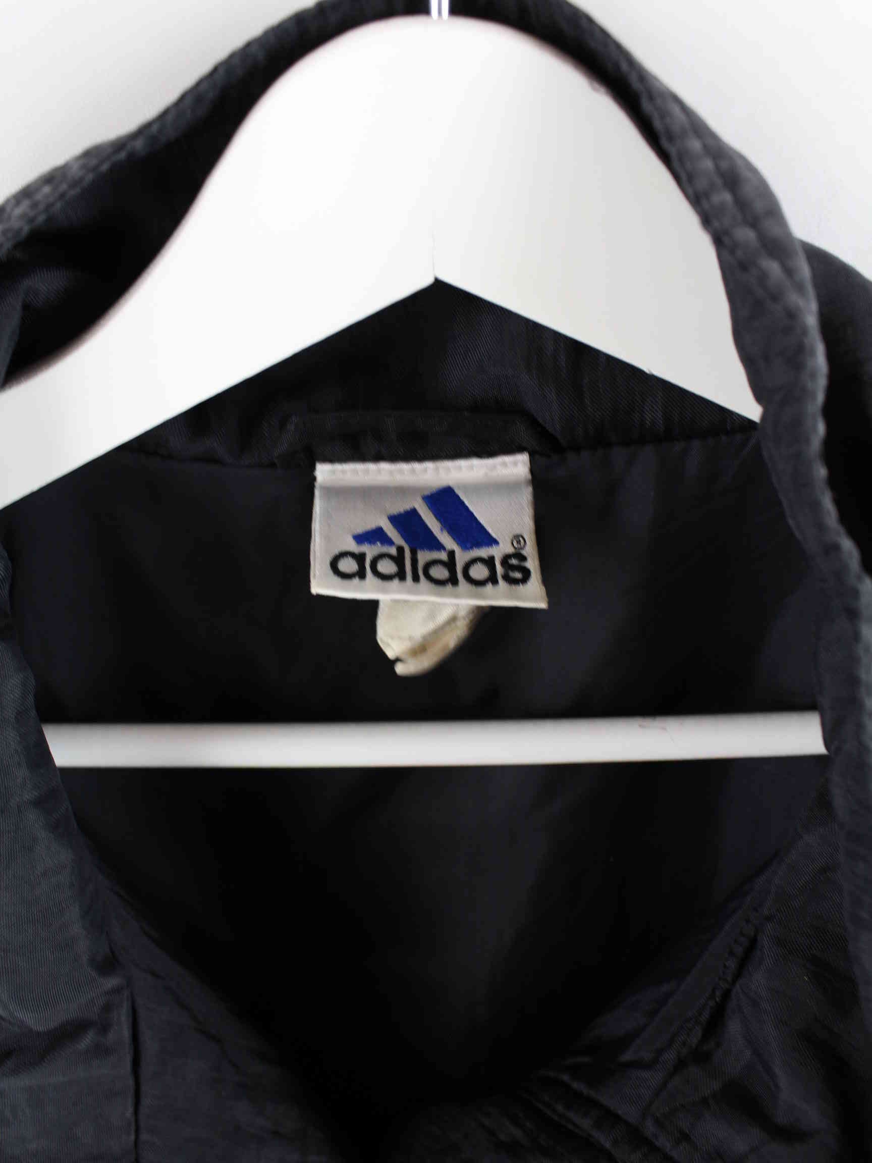 Training jacket from the Adidas label with embroidered motifs in size XL from the 90s. It is made of synthetic material and is available in black.