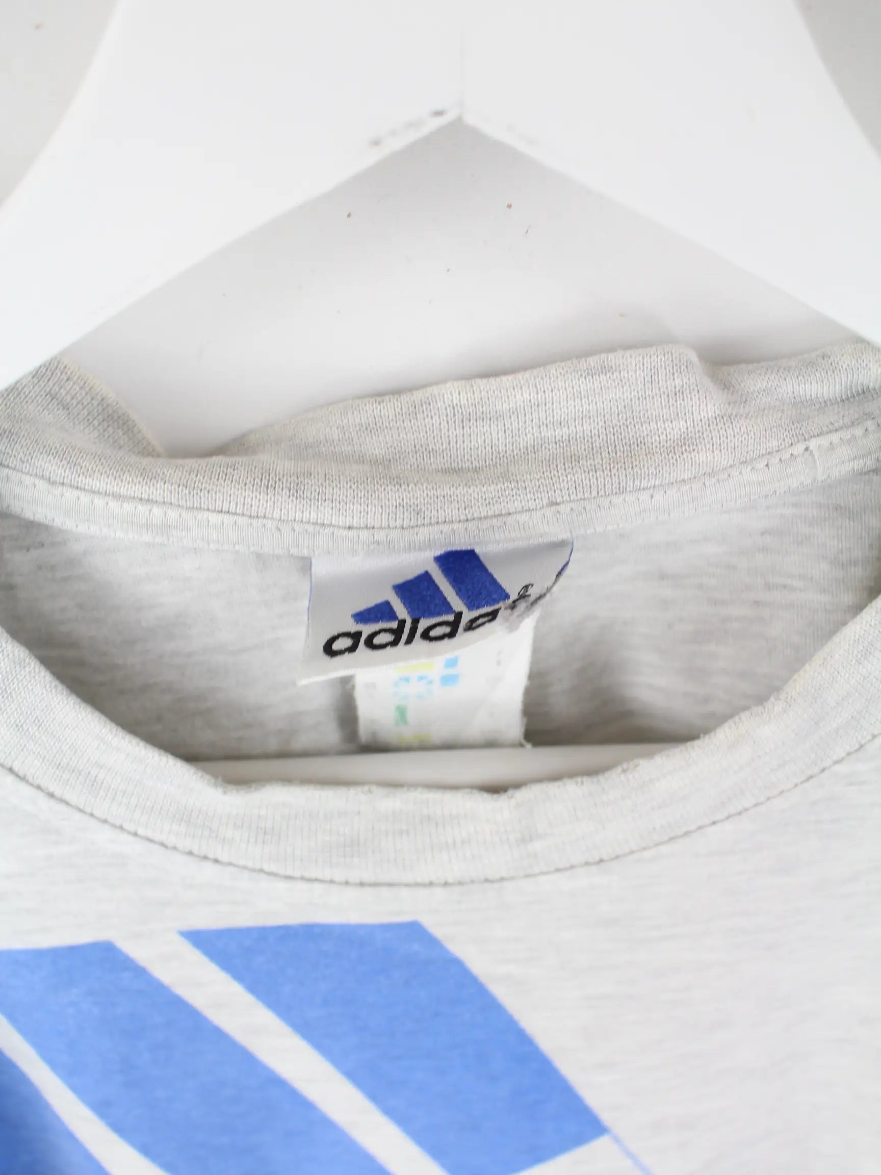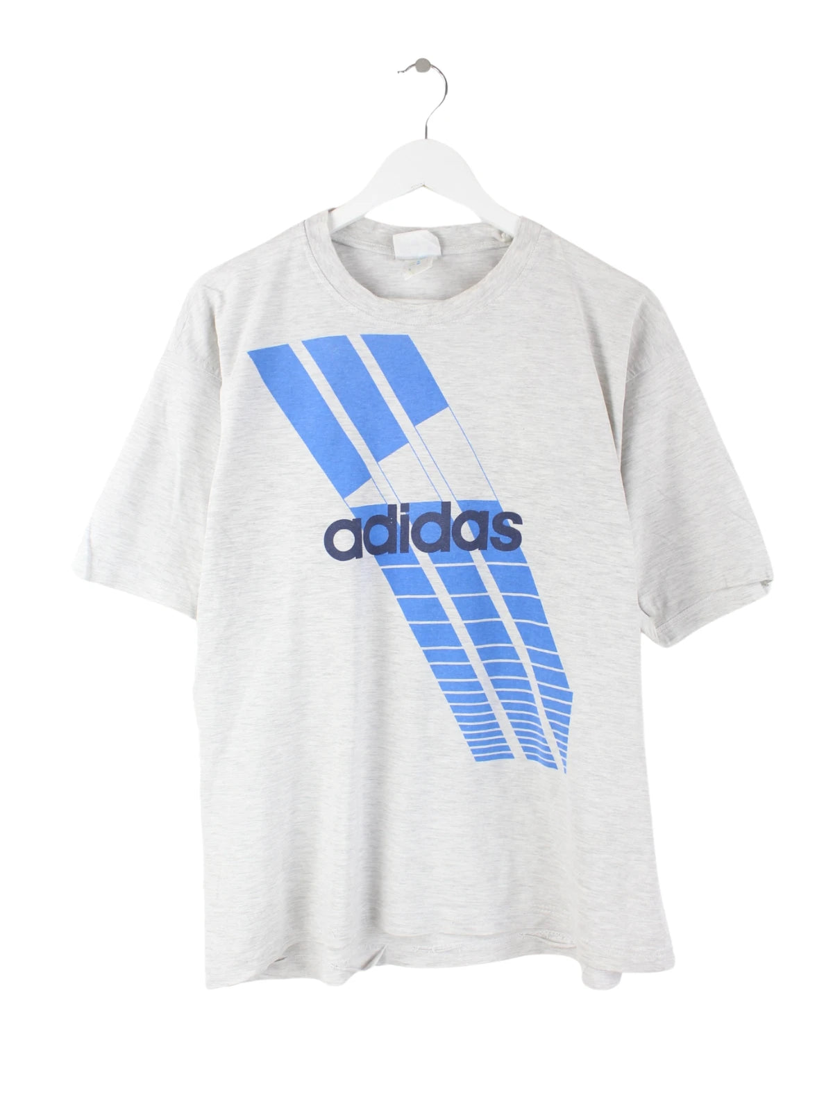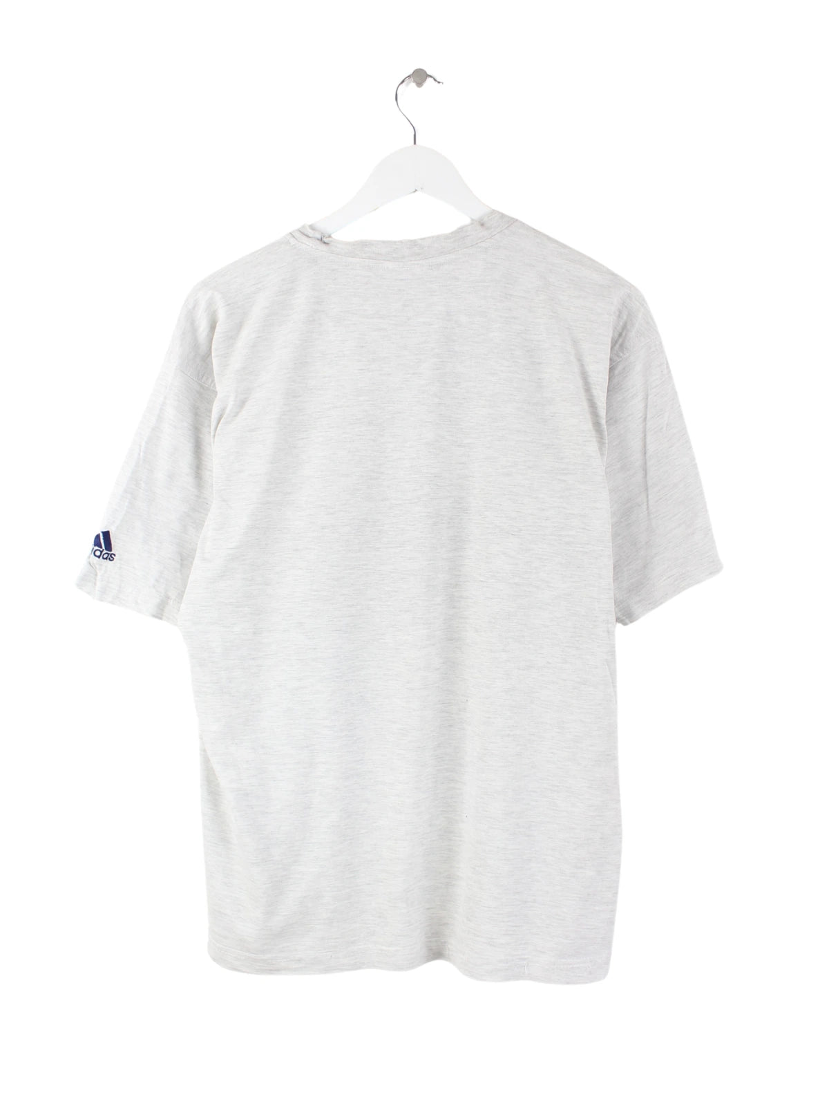 T-Shirt vom Label Adidas in Größe L aus den 90'ern. Es ist aus einer Baumwollmischung hergestellt und in Grau zu haben. Mit schönem Vintage Print.