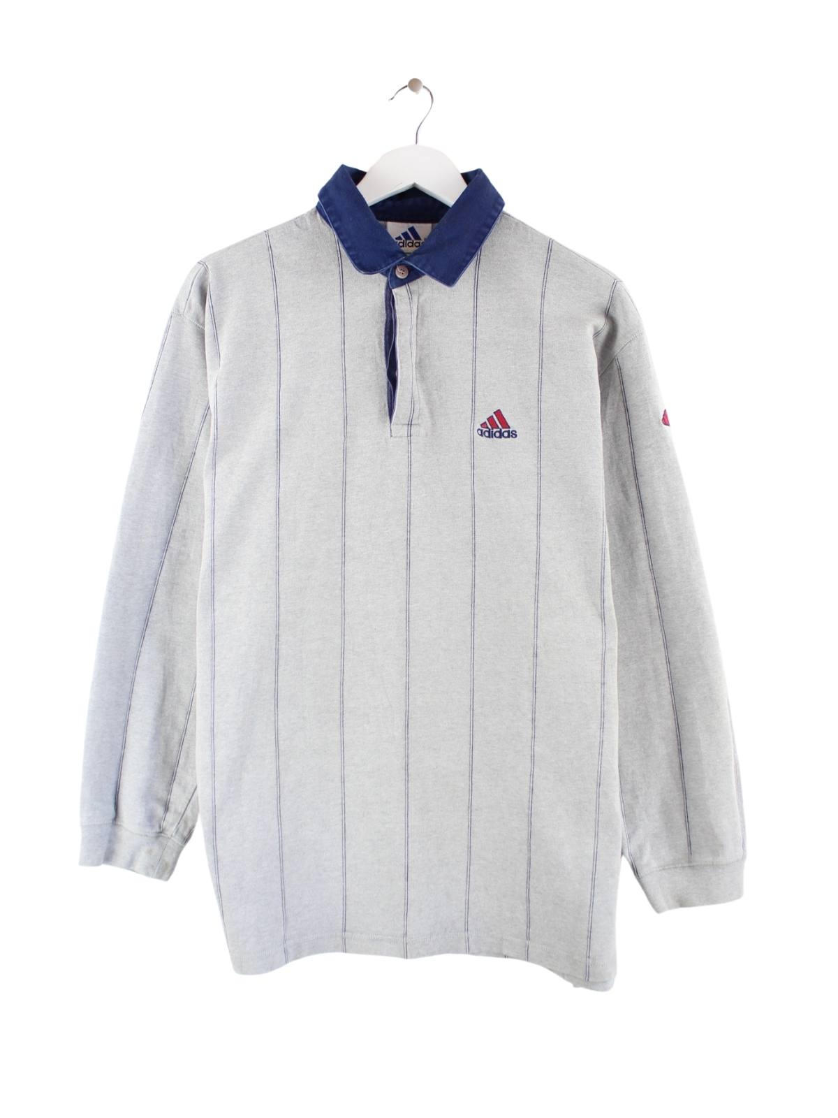 Adidas 90s Vintage Striped Langarm Rugby Polo Grau M