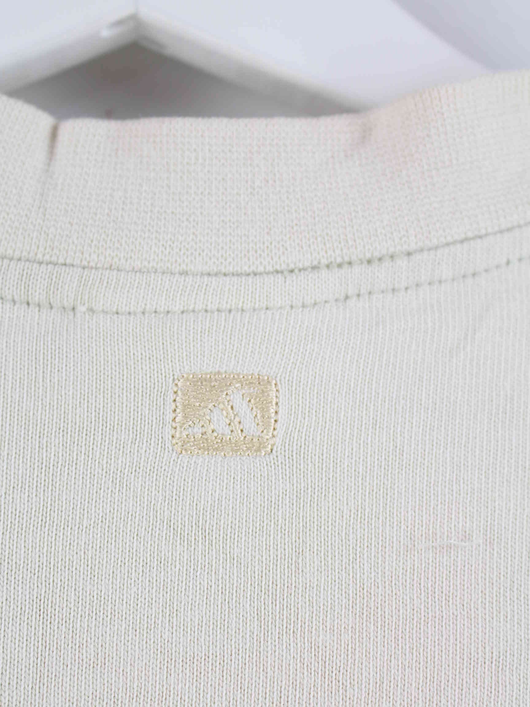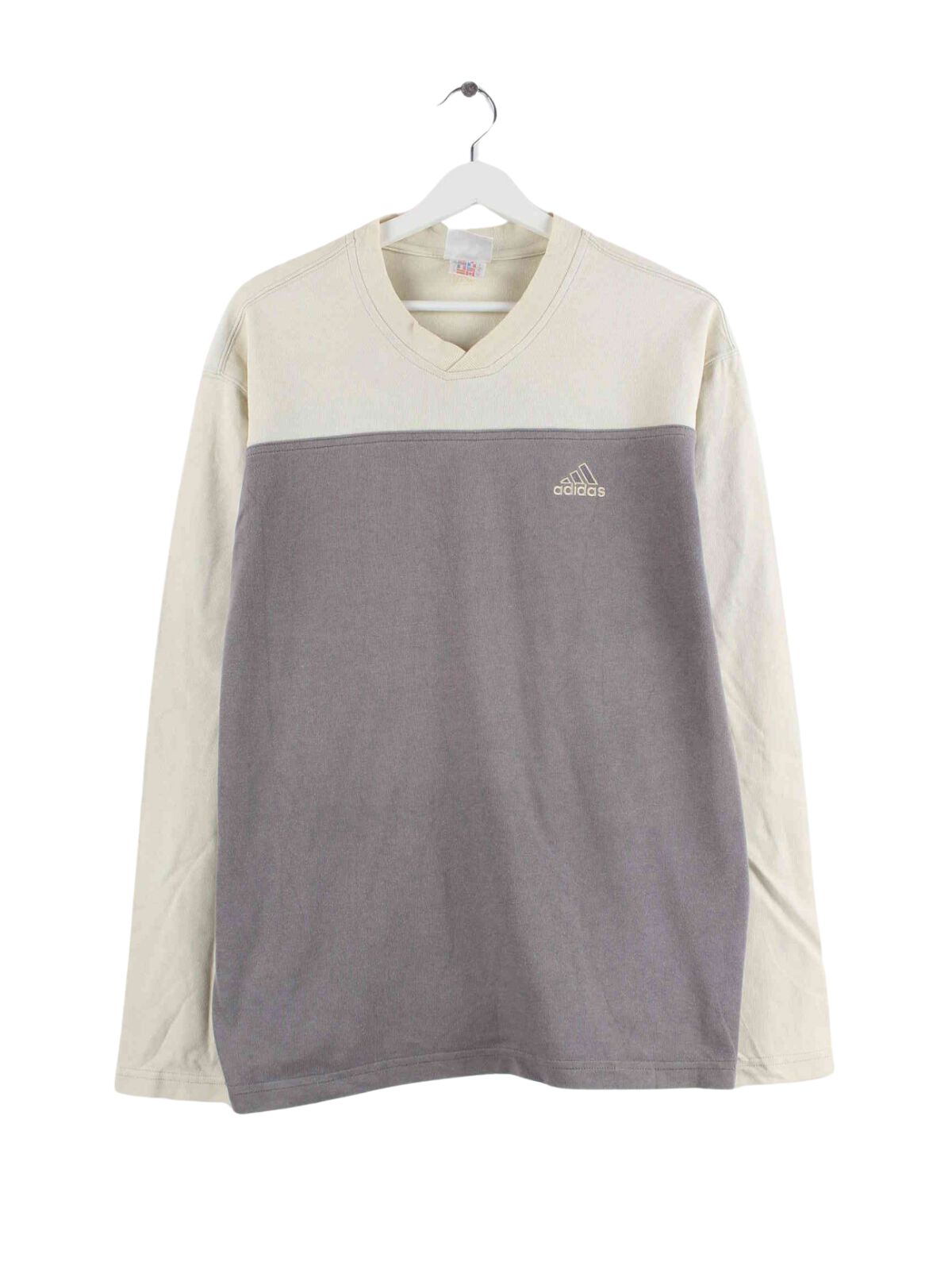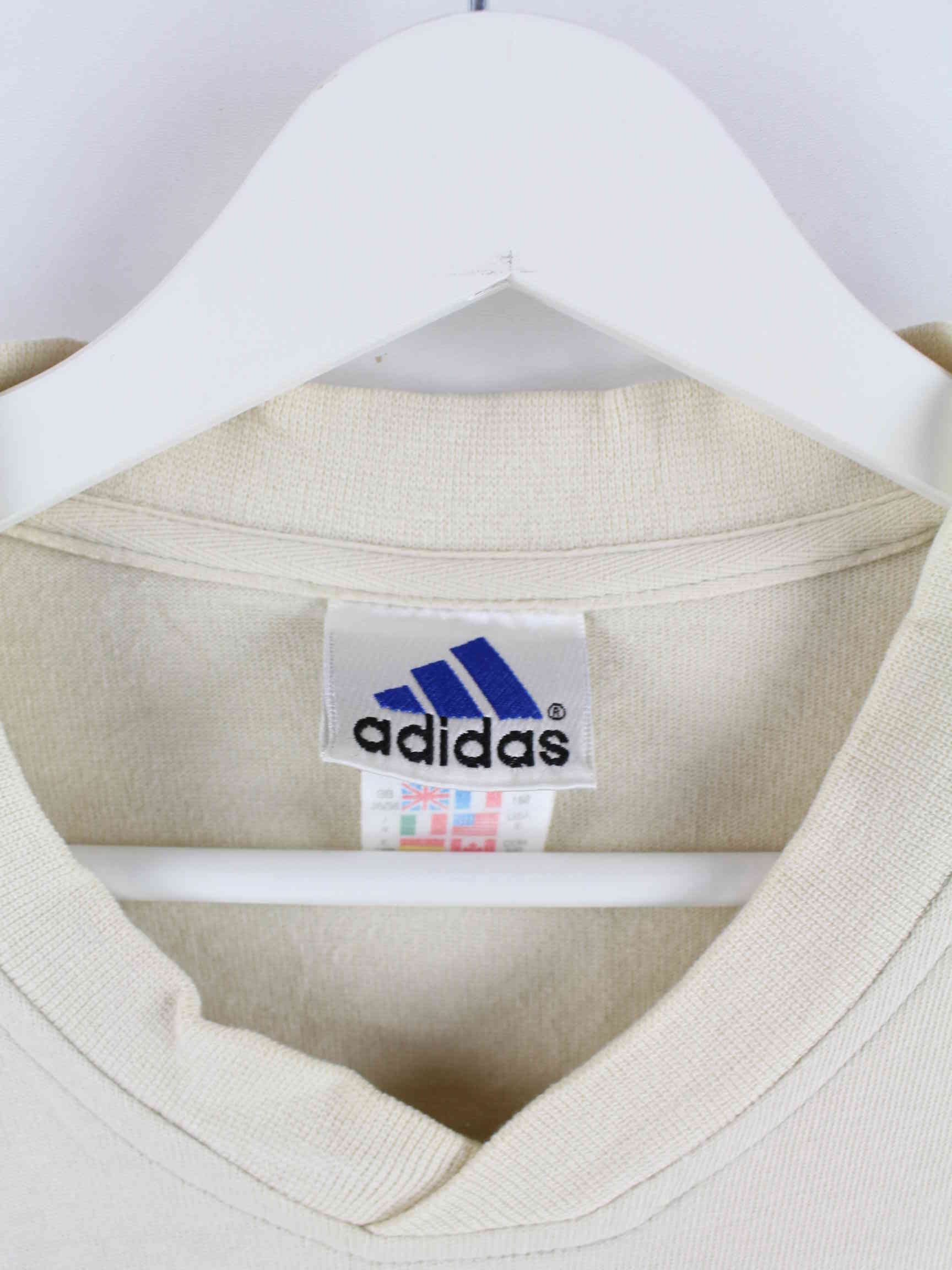Beige sweater from Adidas from the 90s in size L. It is made from a cotton blend and is available from us in very good condition.
