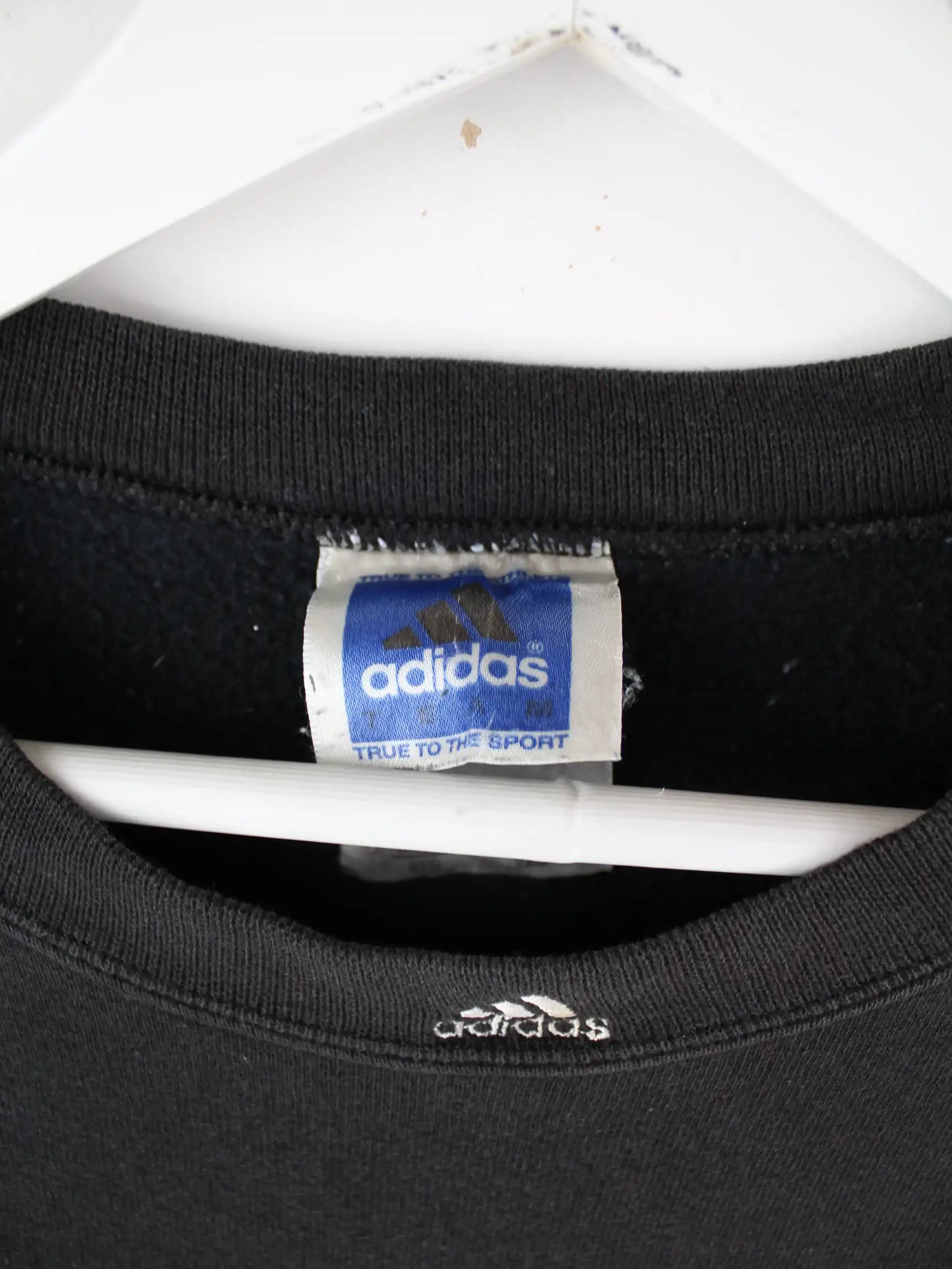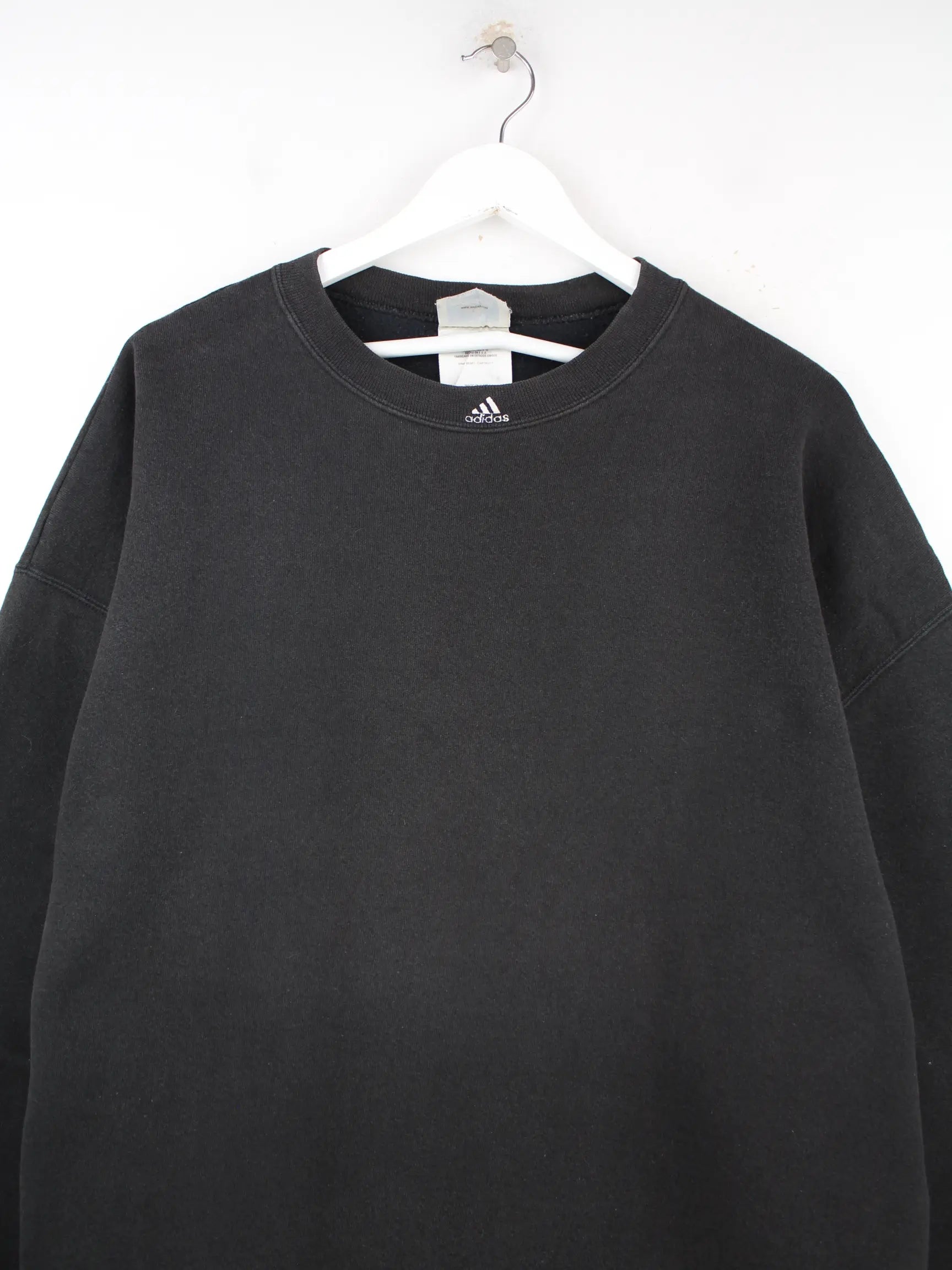 Sweater der Marke Adidas in Größe XXL aus den 90'ern. Er ist aus einer Baumwollmischung und in Schwarz lieferbar.