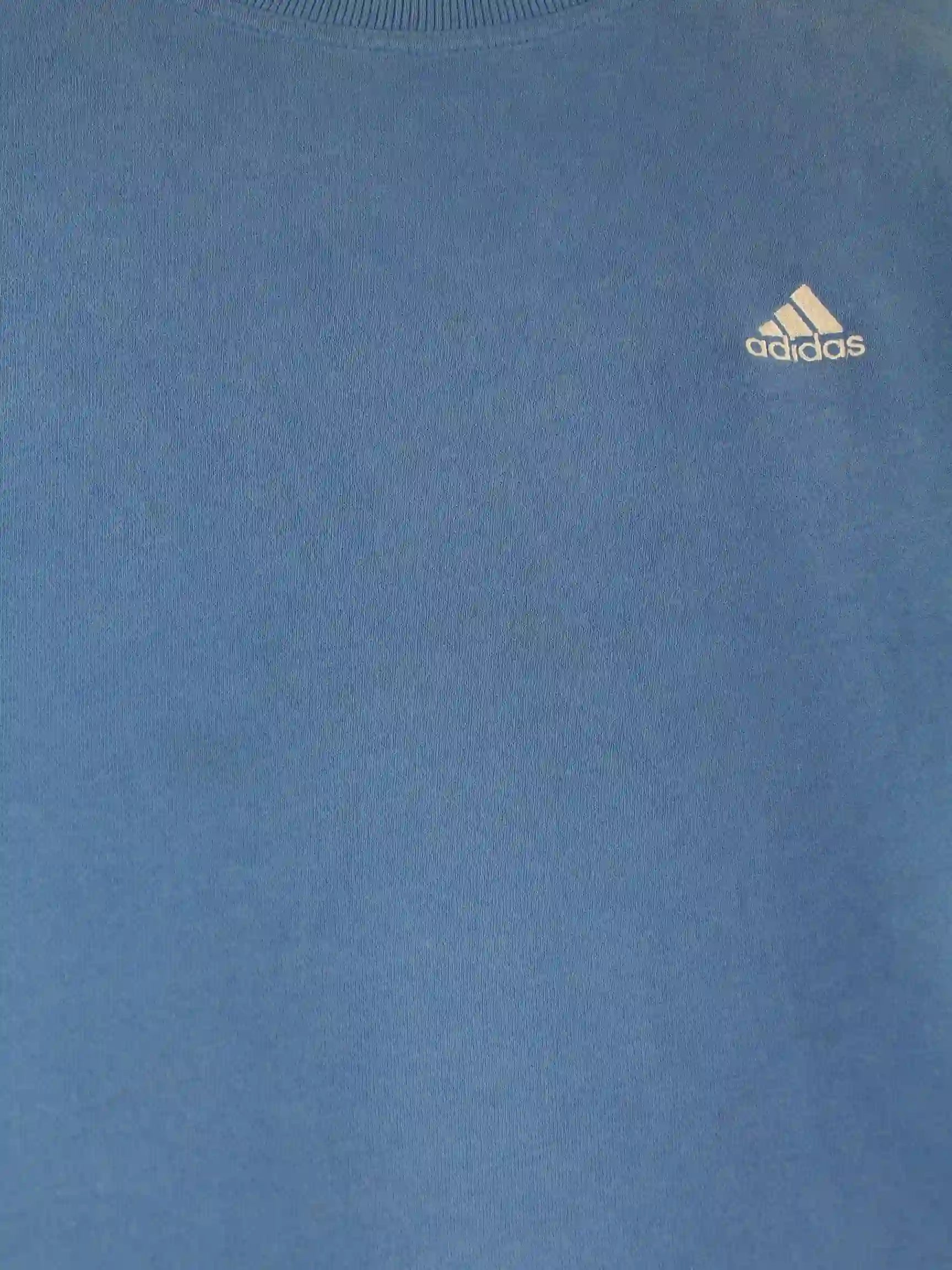Blauer Sweater von Adidas in Größe L. Er ist aus einer Baumwollmischung . Den Zustand würden wir als 'In Ordnung' bezeichnen (vergl. Bilder).