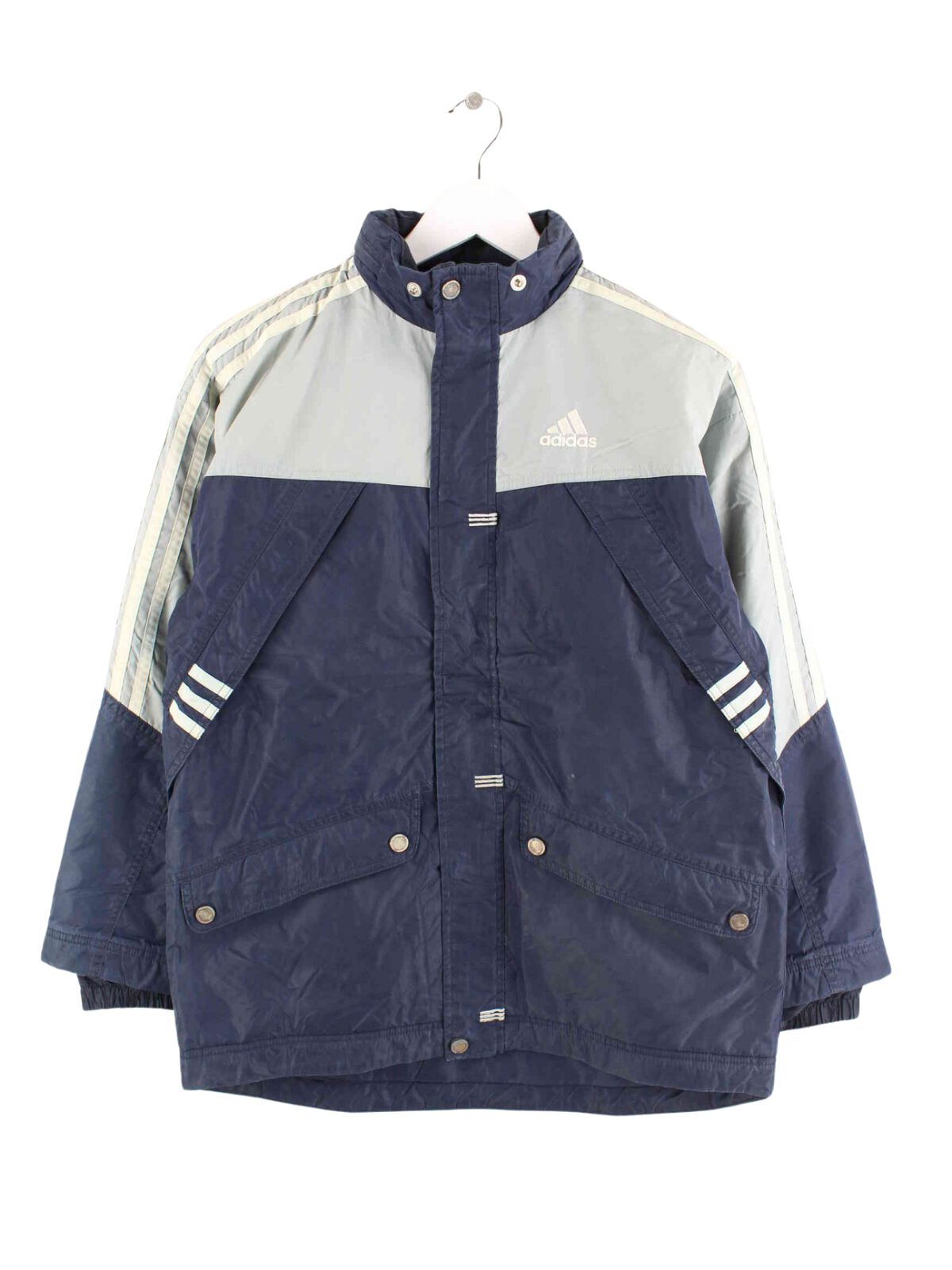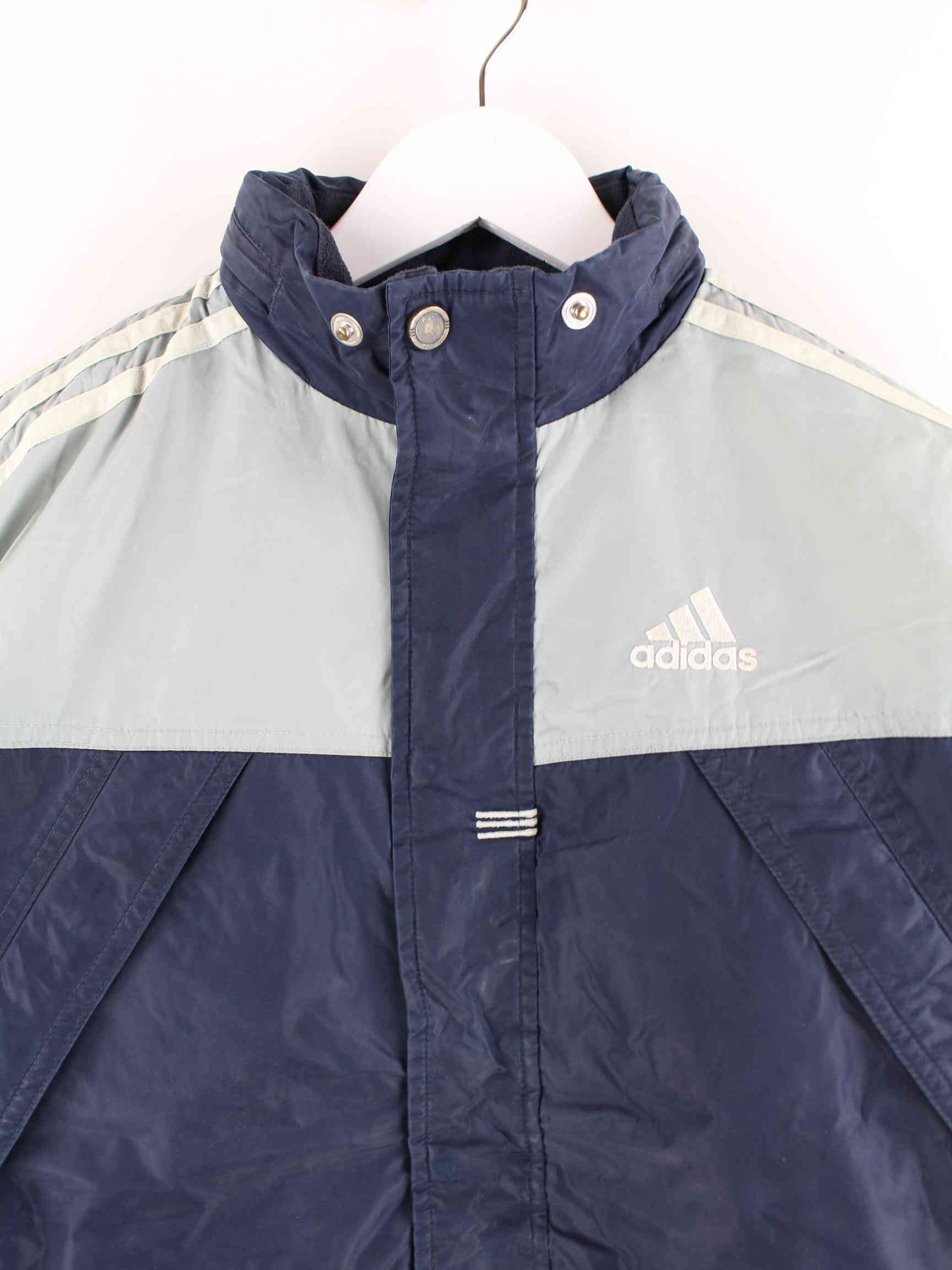 Blue lightweight jacket from the Adidas label from the early 2000s in size S. It is made of synthetic material and is in good condition in stock.