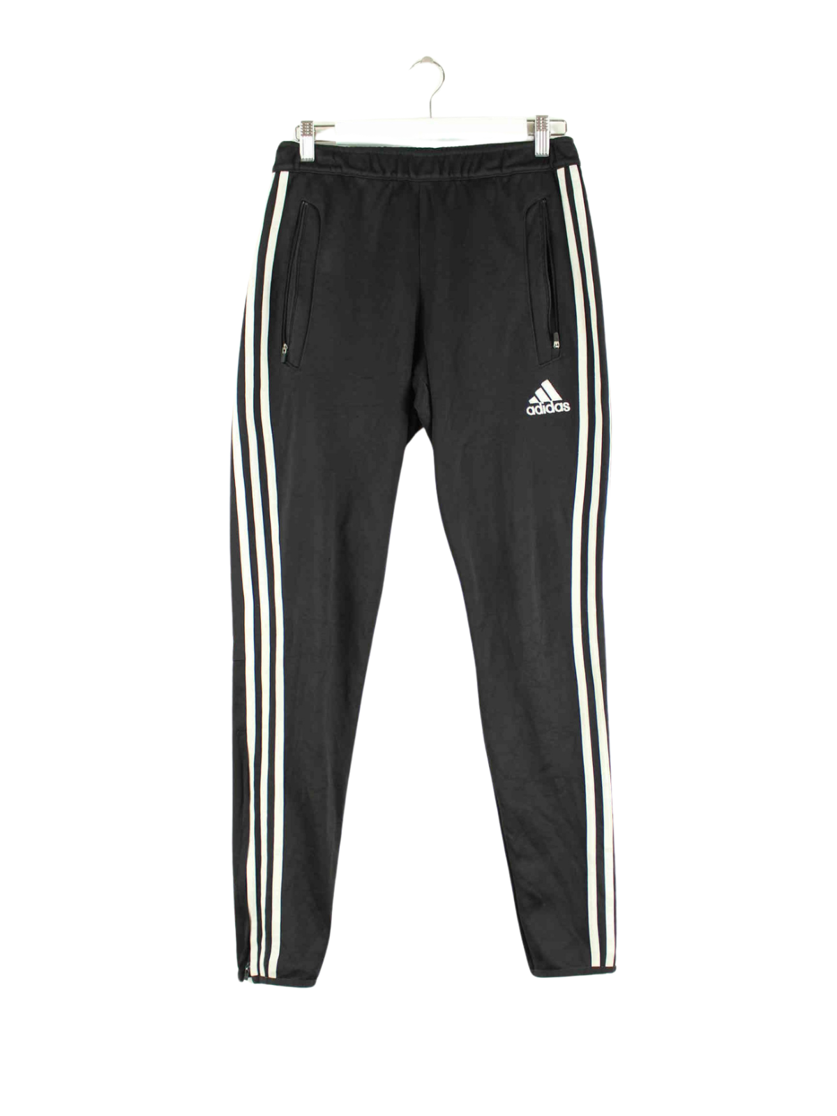 Track pants from the label Adidas in size S. They are made of synthetic material and are available in black.