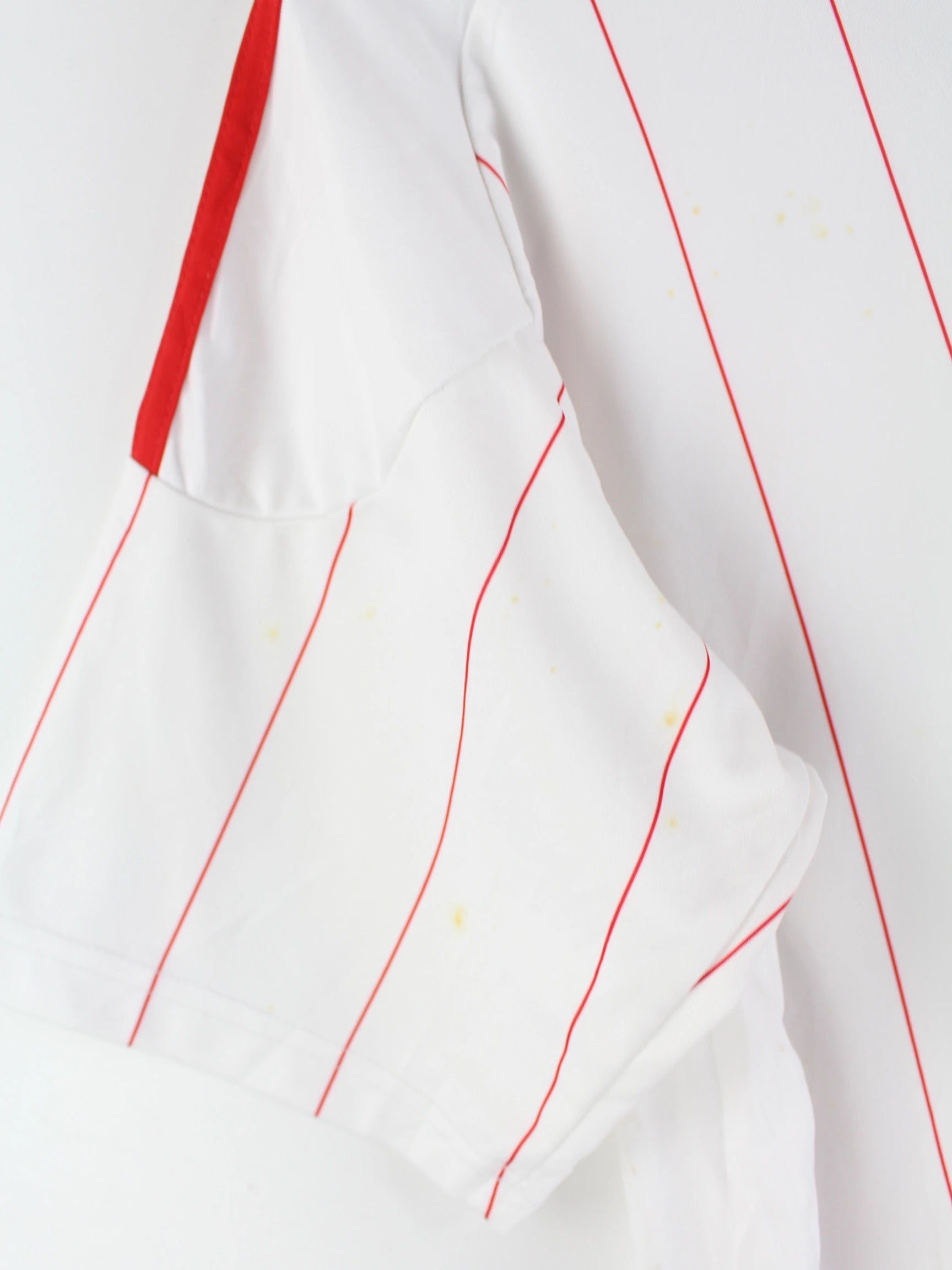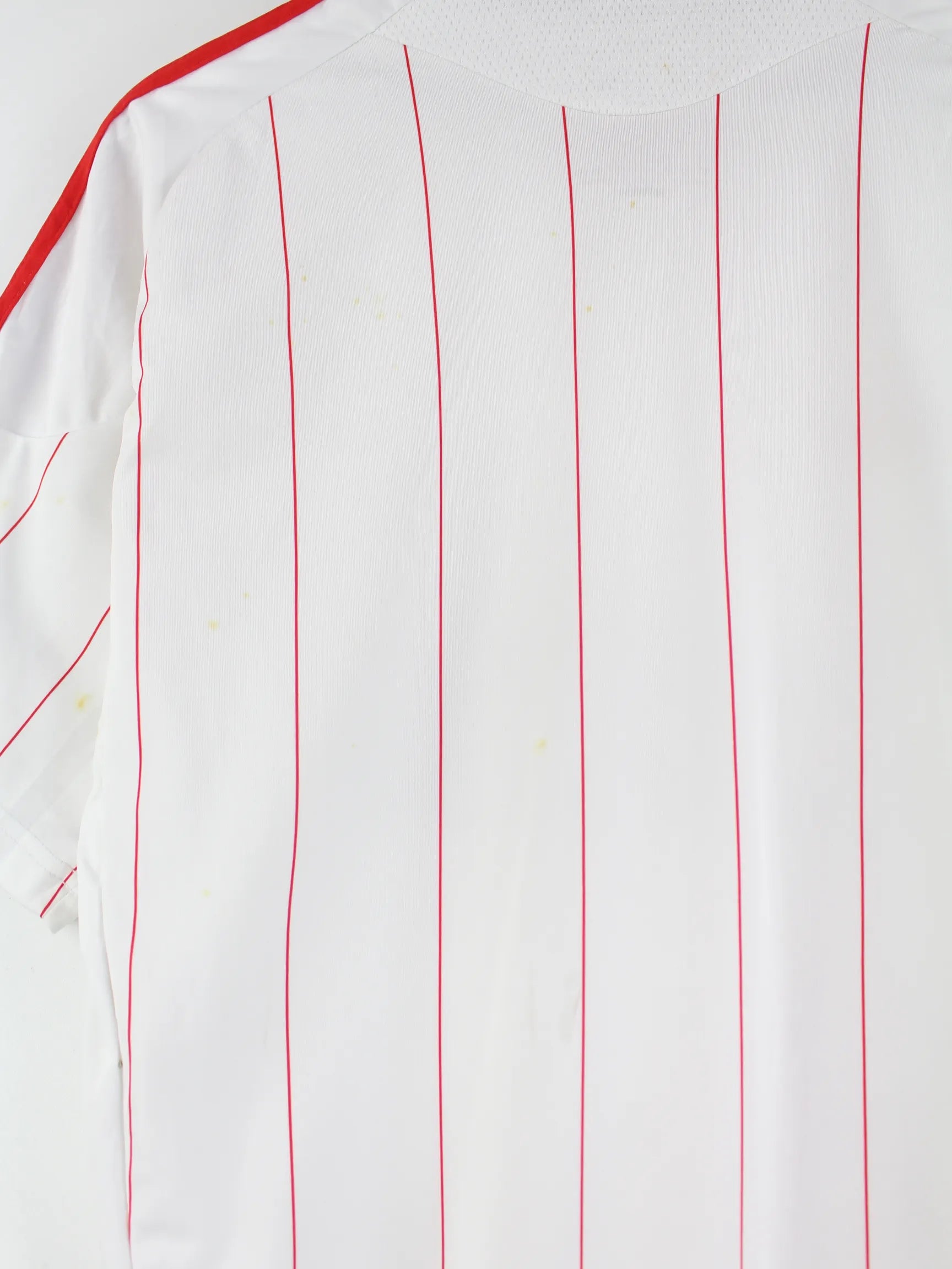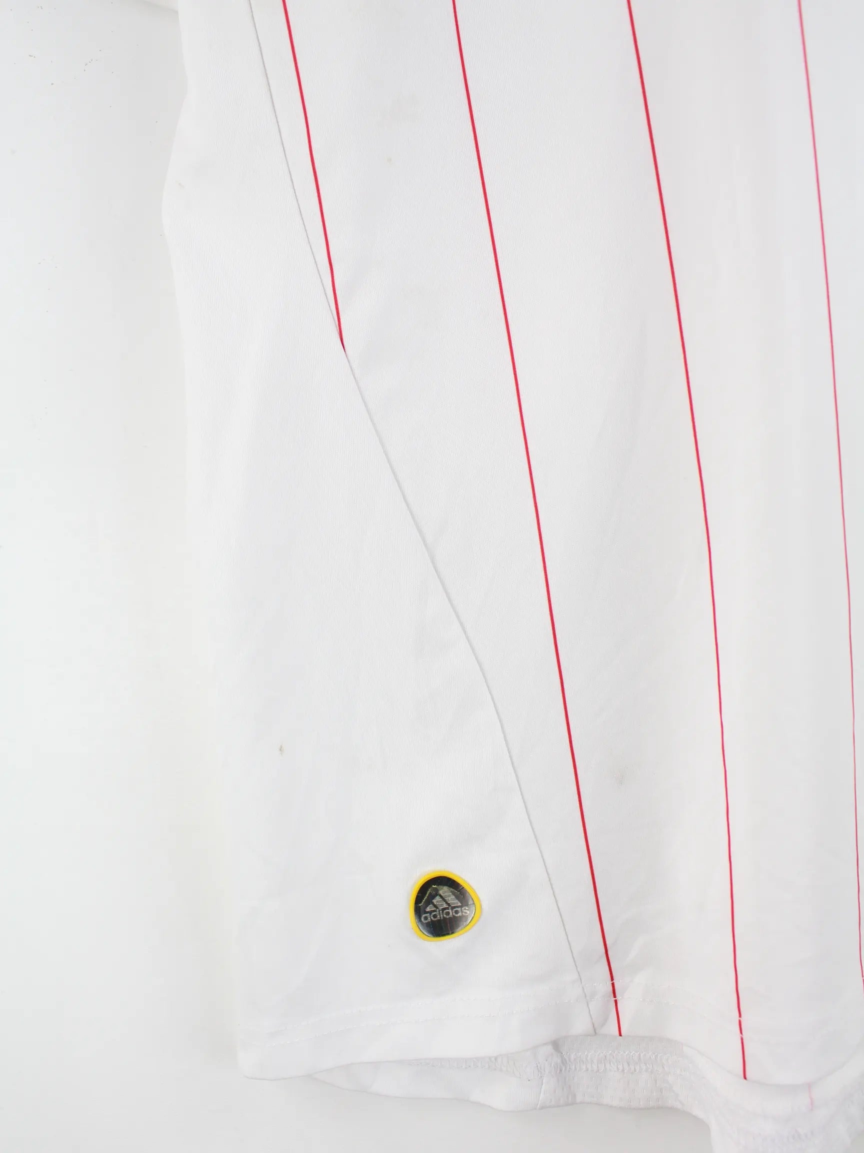 Trikot des Labels Adidas in Größe M. Es ist aus Synthetik produziert und in Weiß lieferbar.
