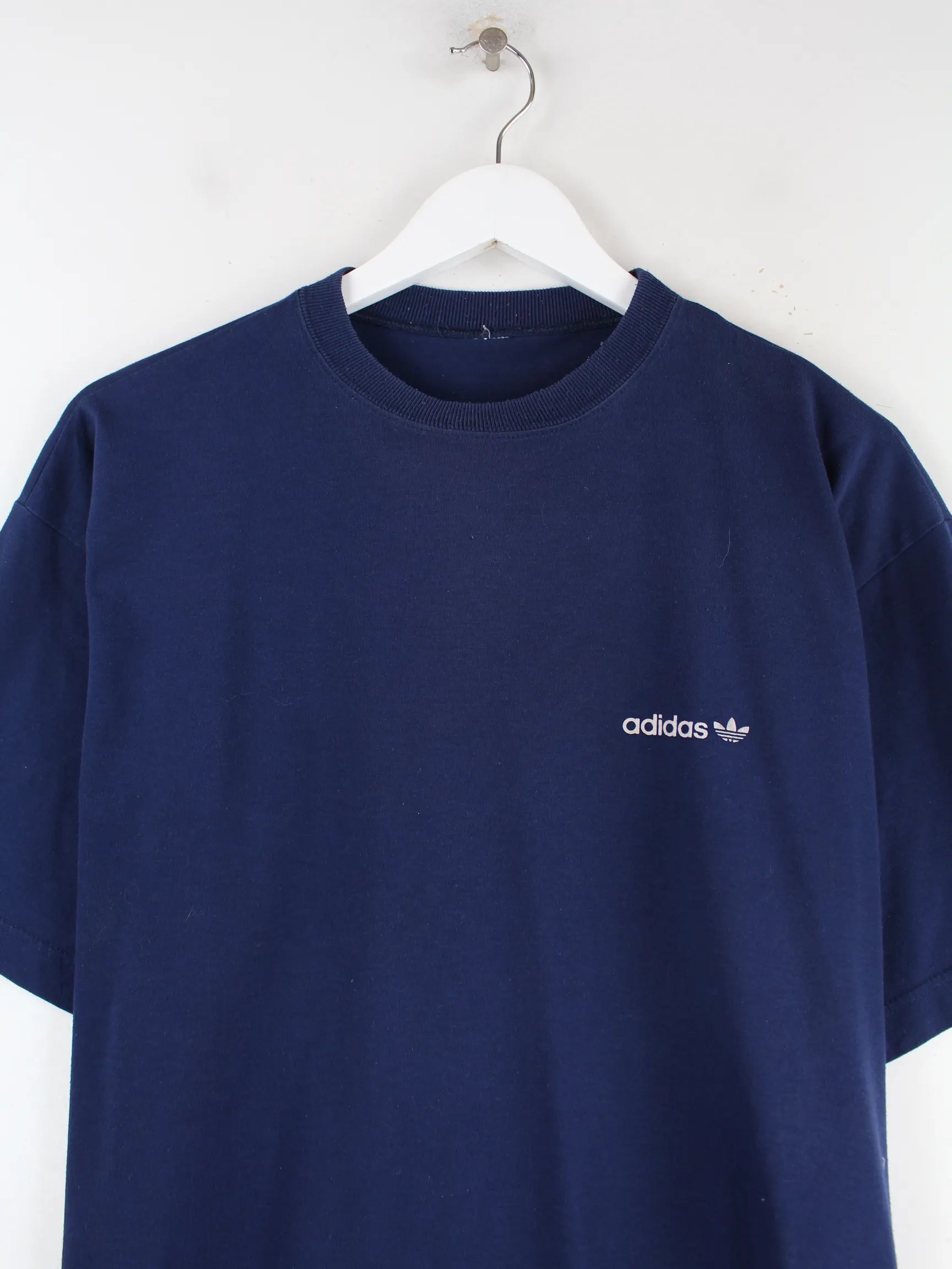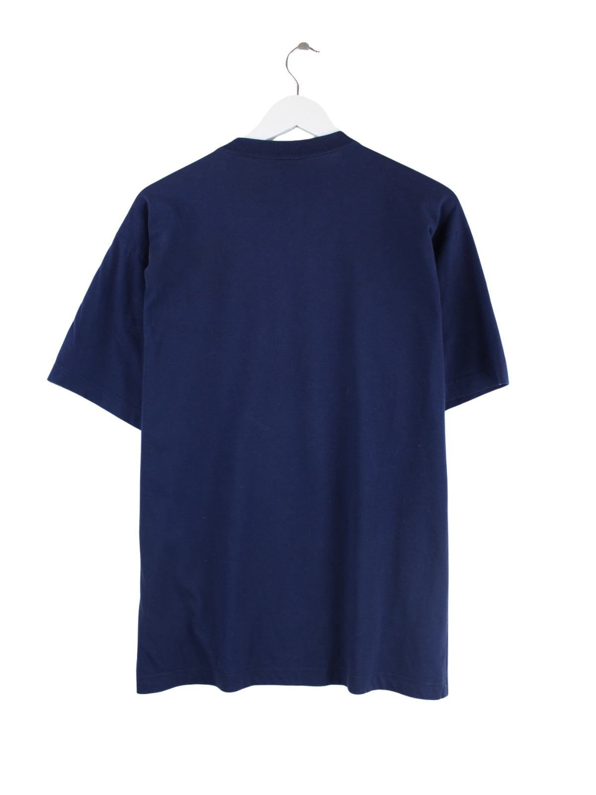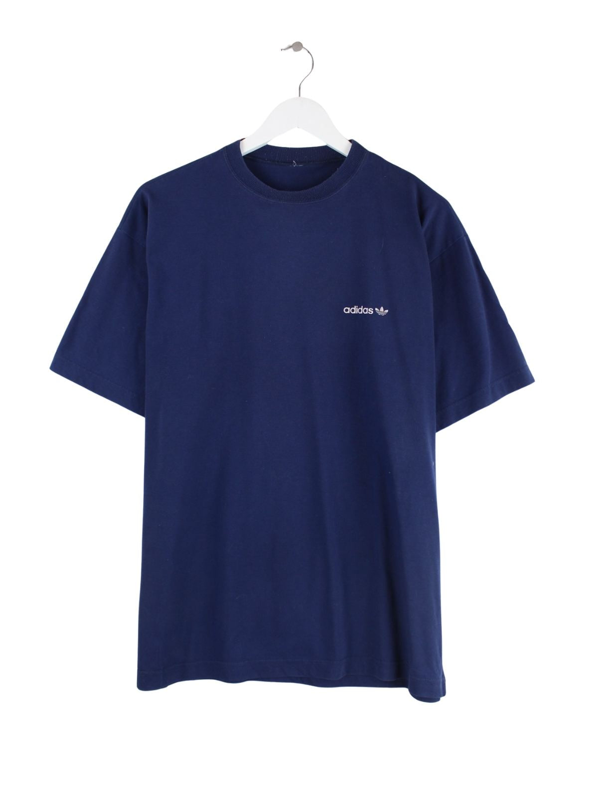Blaues T-Shirt der Brand Adidas in Größe L. Es ist aus Baumwolle gemacht und in sehr gutem Zustand vorrätig. Mit schönem Print.