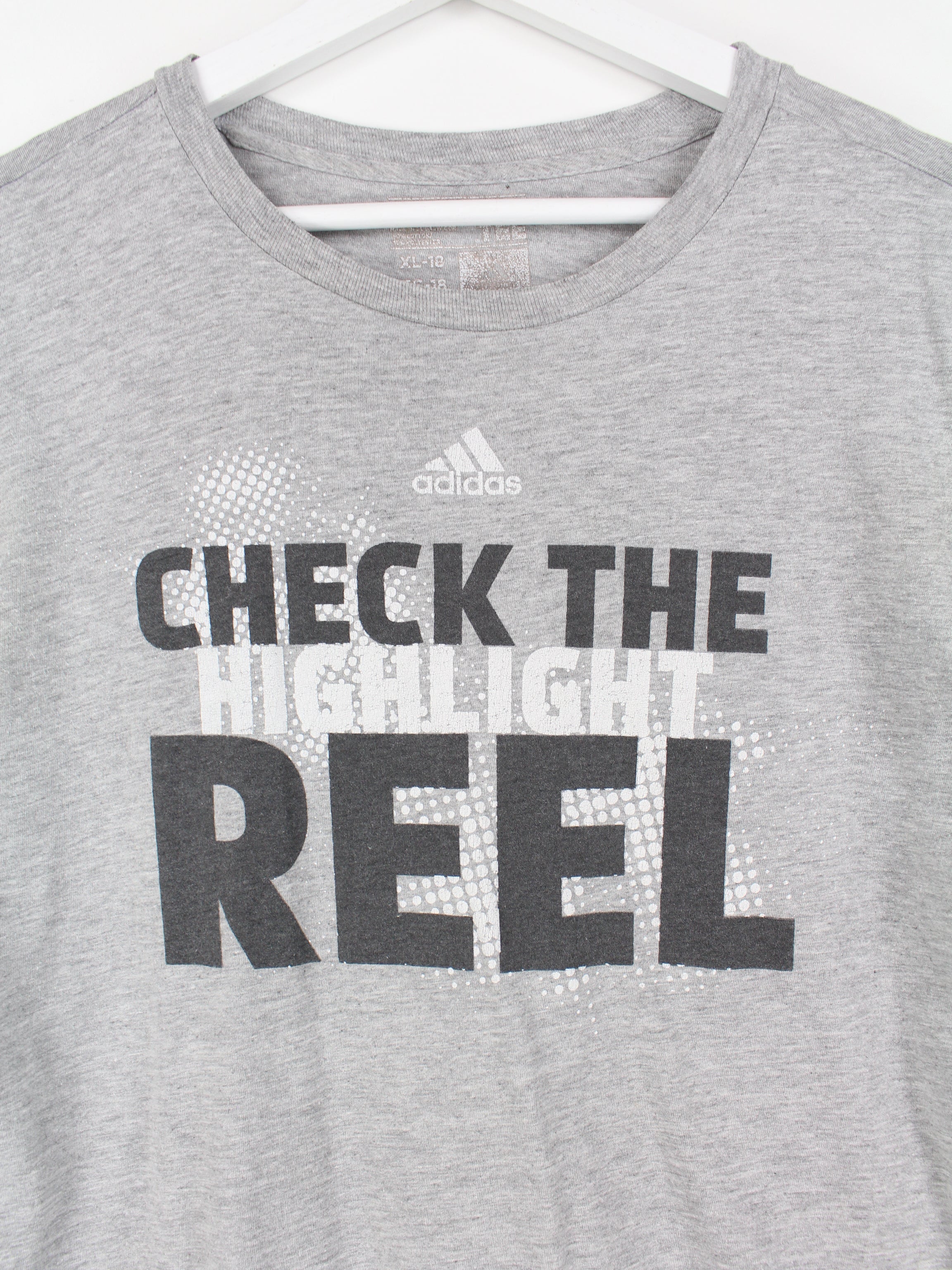 Gray Adidas T-shirt with large print.
