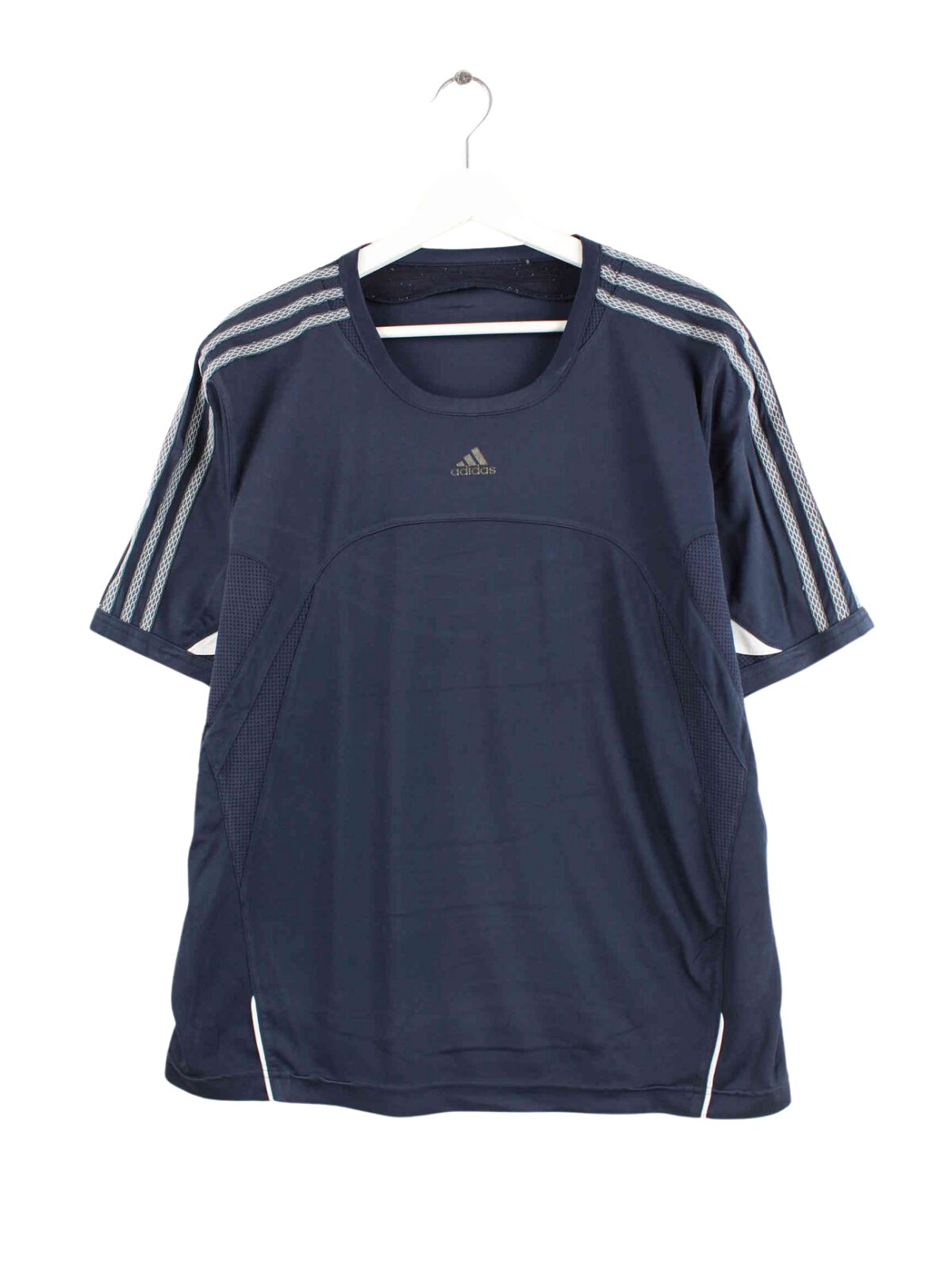 Black T-shirt from the Adidas brand in size M. It is made of synthetic material and is available from us in very good condition.