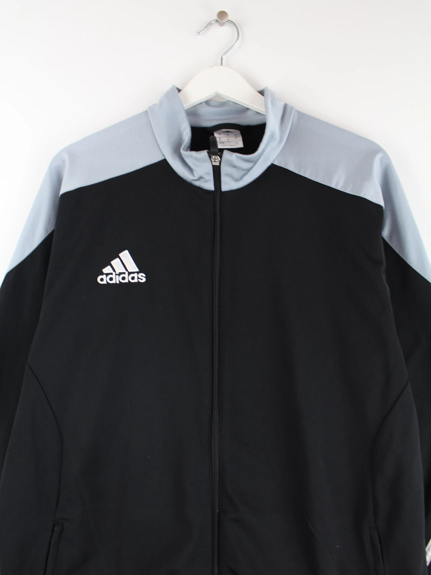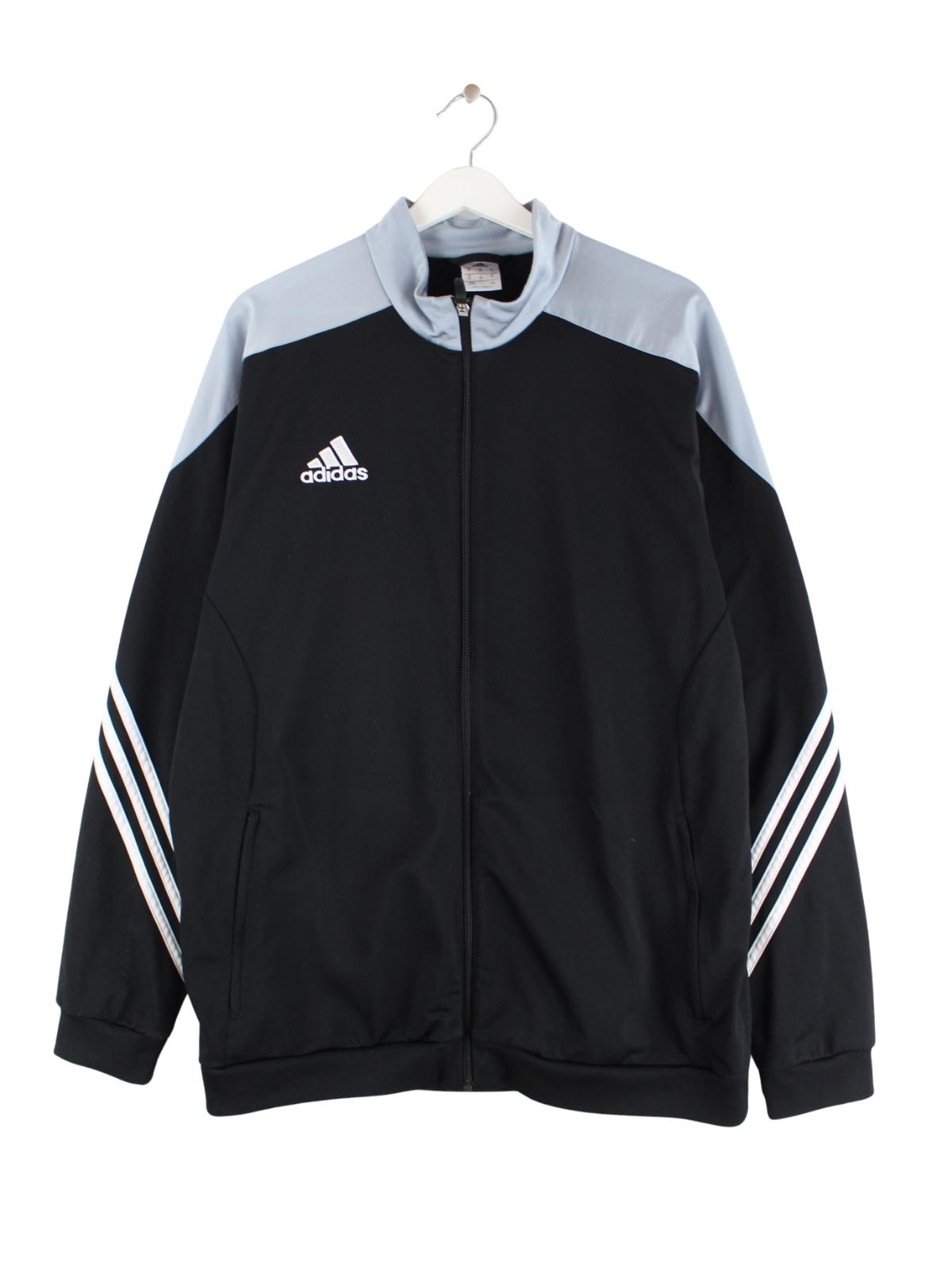 Trainingsjacke des Labels Adidas in Größe XL. Sie ist aus Synthetik gemacht und in Schwarz im Bestand.