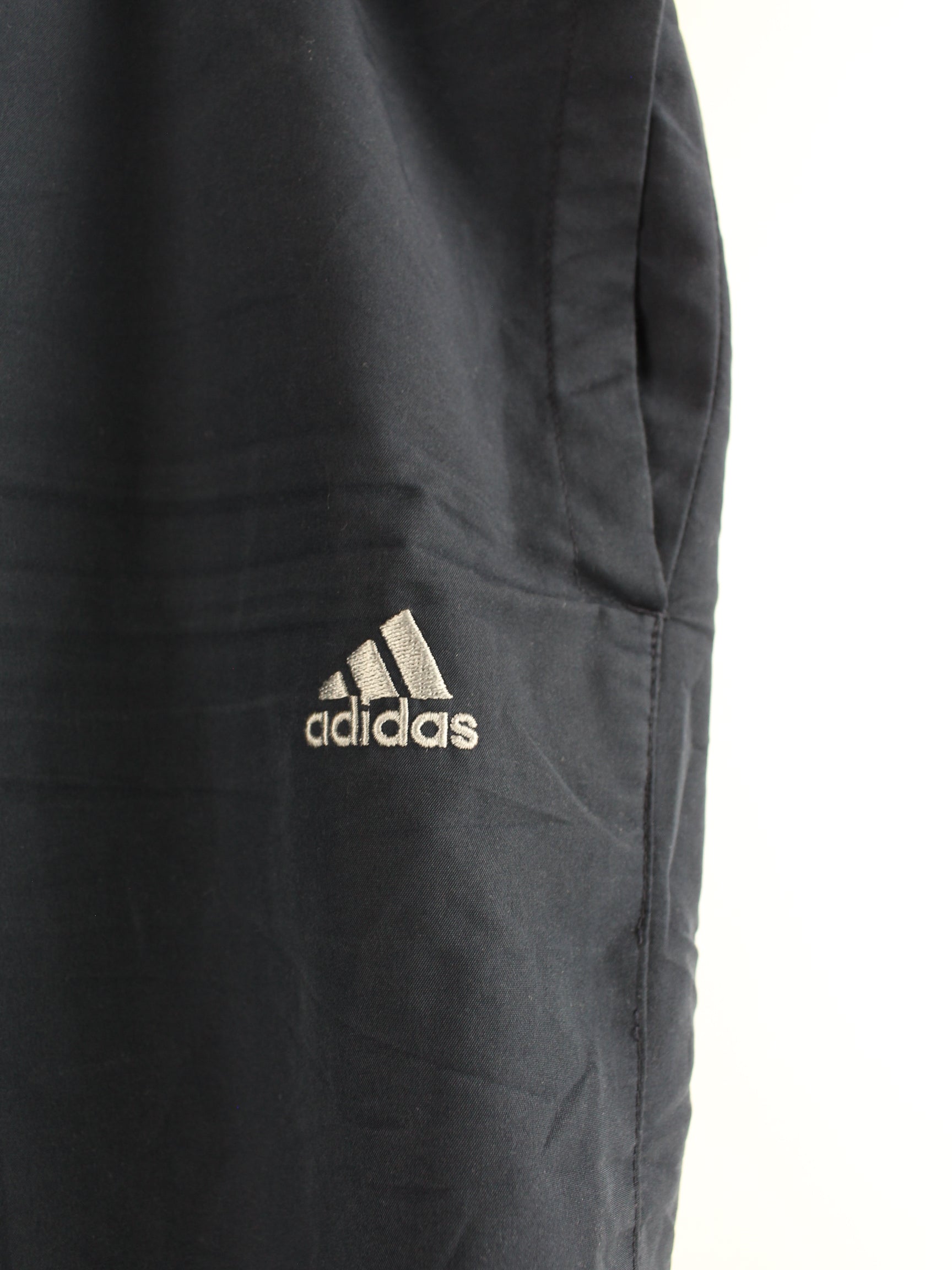 Black track pants from Adidas from the early 2000s in size XL. They are made from synthetic material and are in stock in very good condition.