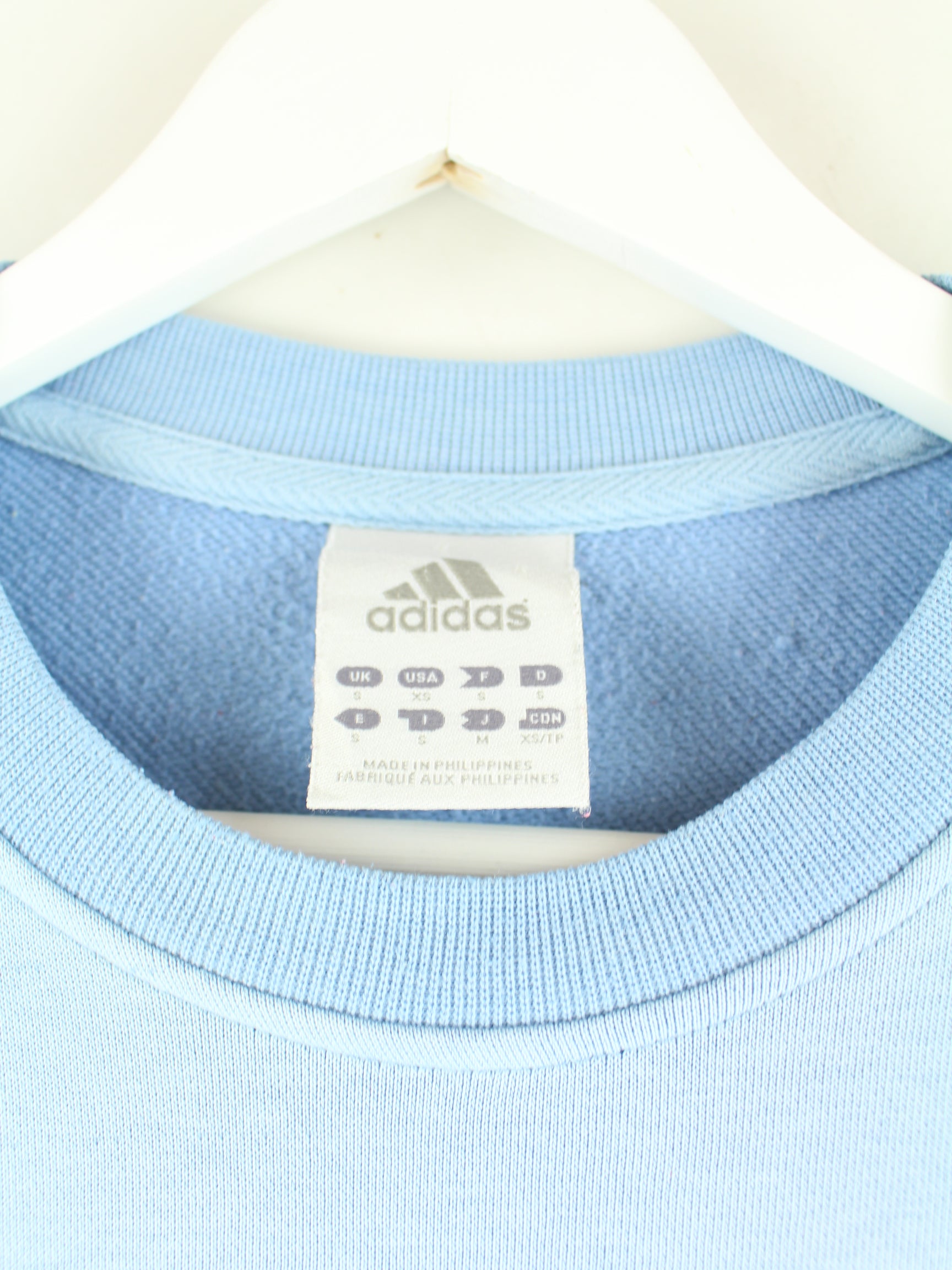 Blue sweater by the brand Adidas from the early 2000s in size S. It is made from a cotton blend and is in good condition.