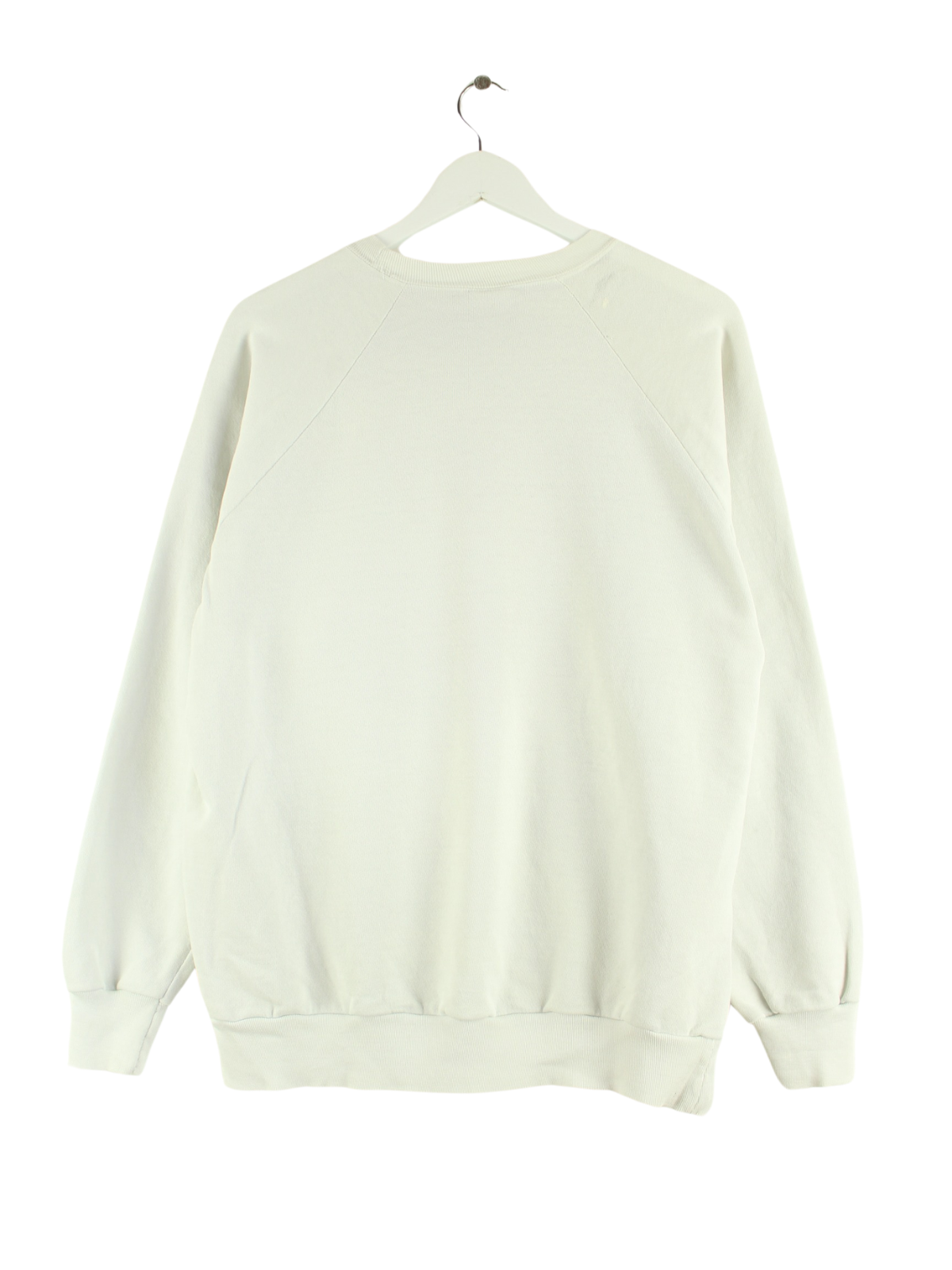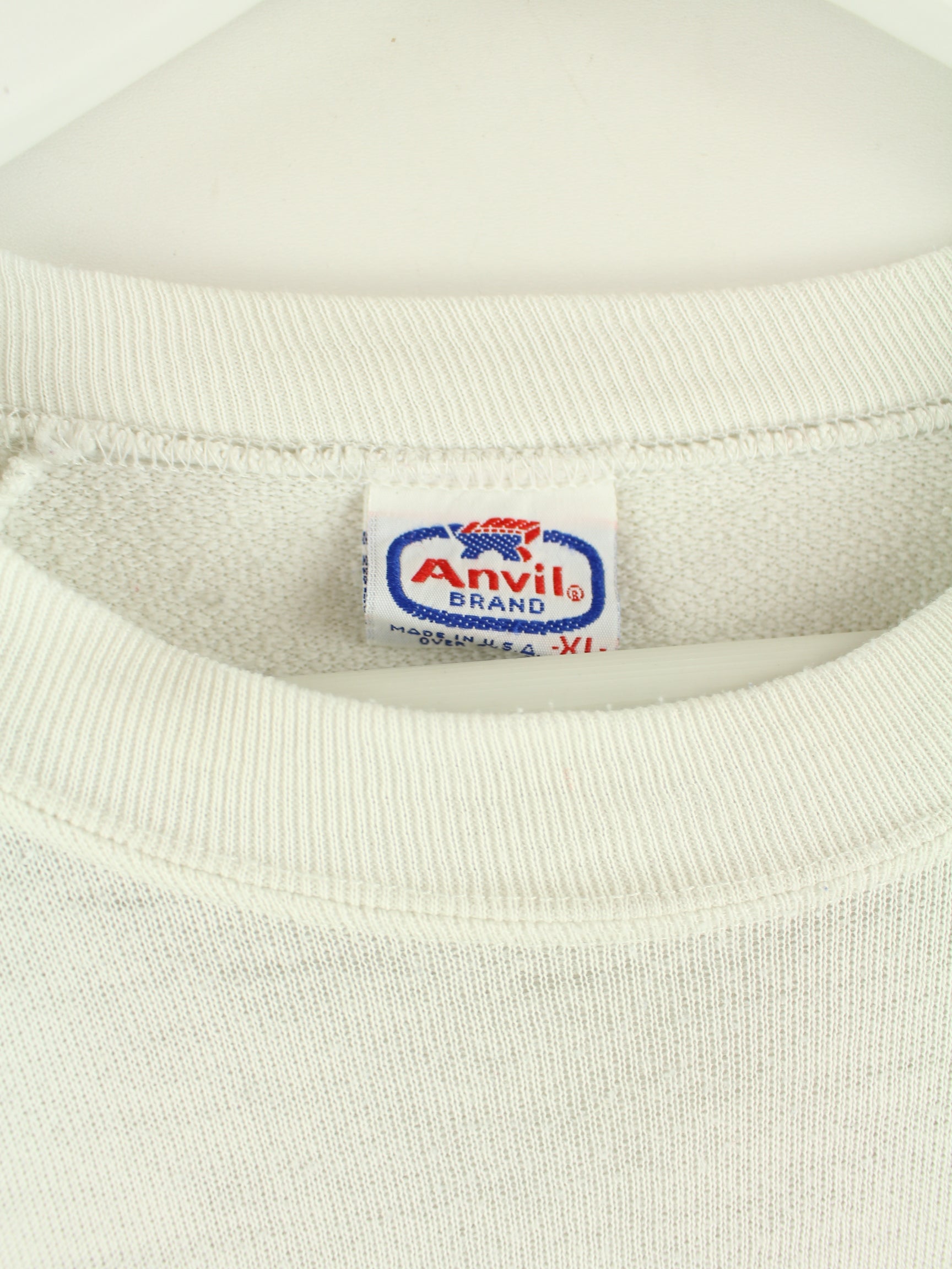 White sweater from the Anvil brand from the 80's in size XL. It is made from a cotton blend and is available from us in good condition. With a chic state print.
